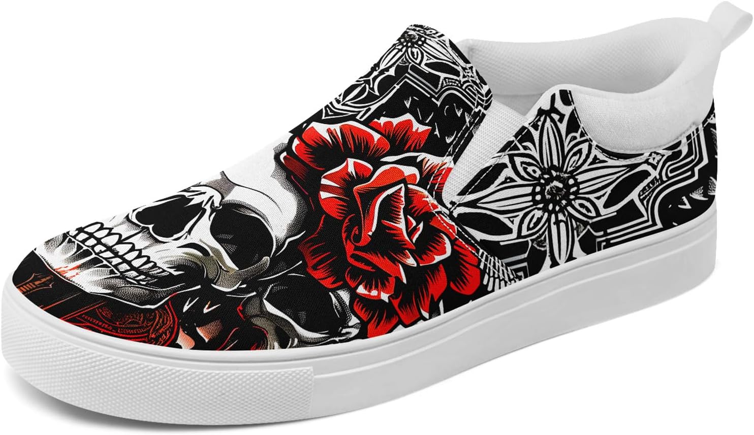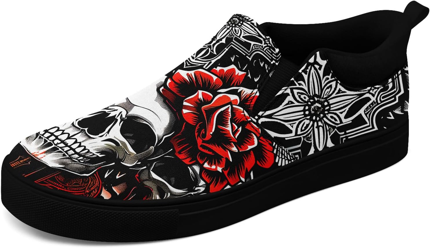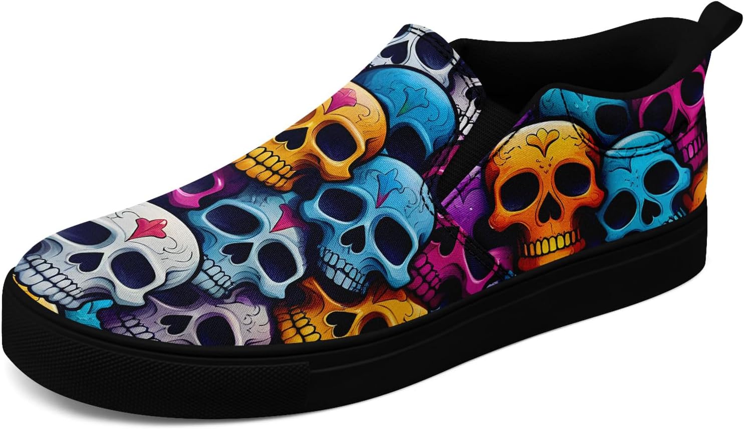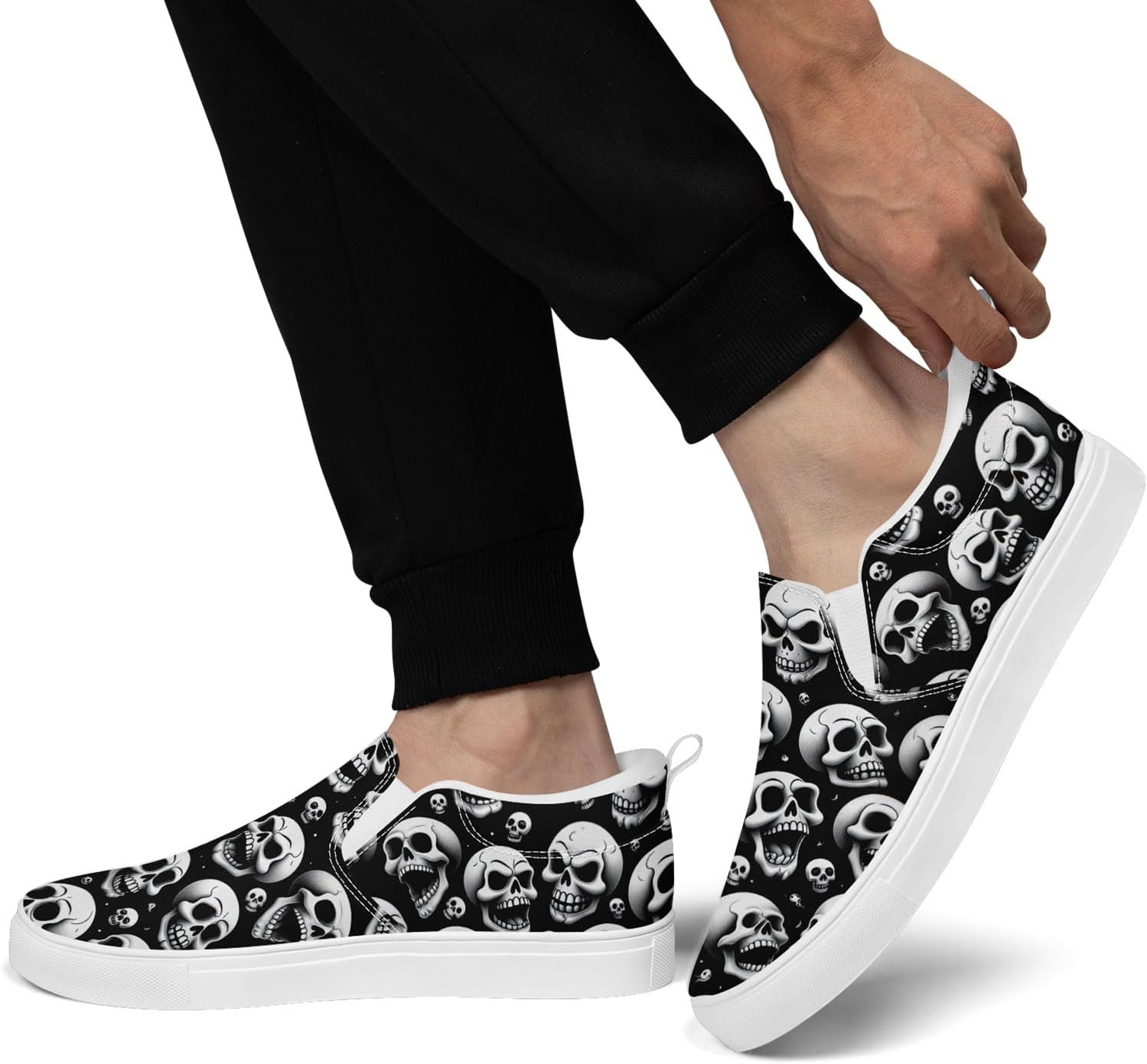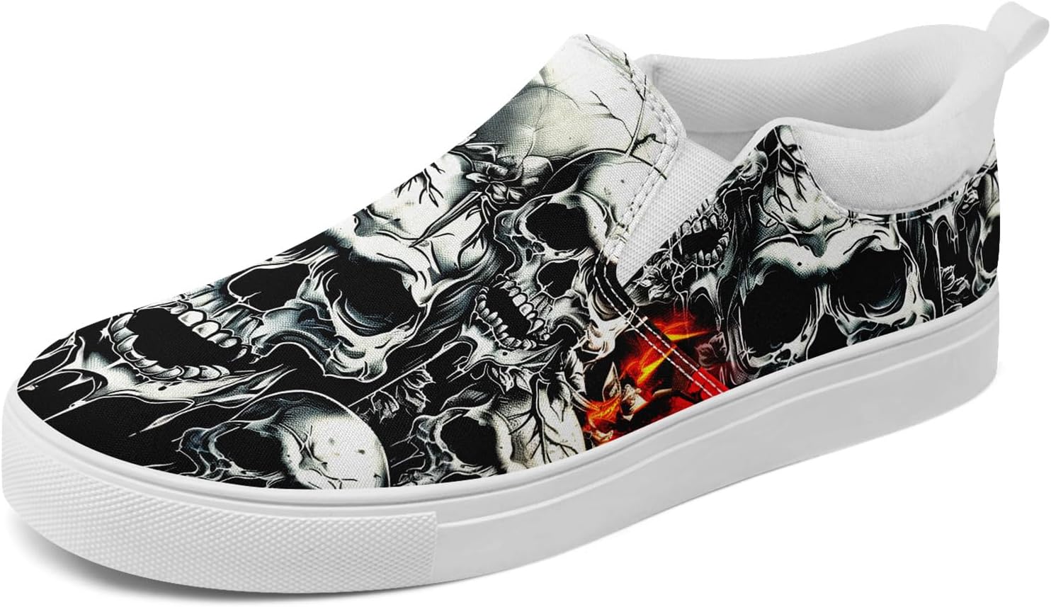 Men's Slip-On Canvas Shoes Gothic Skull Print Casual Lightweight Loafers Comfortable Walking Sneaker for Women