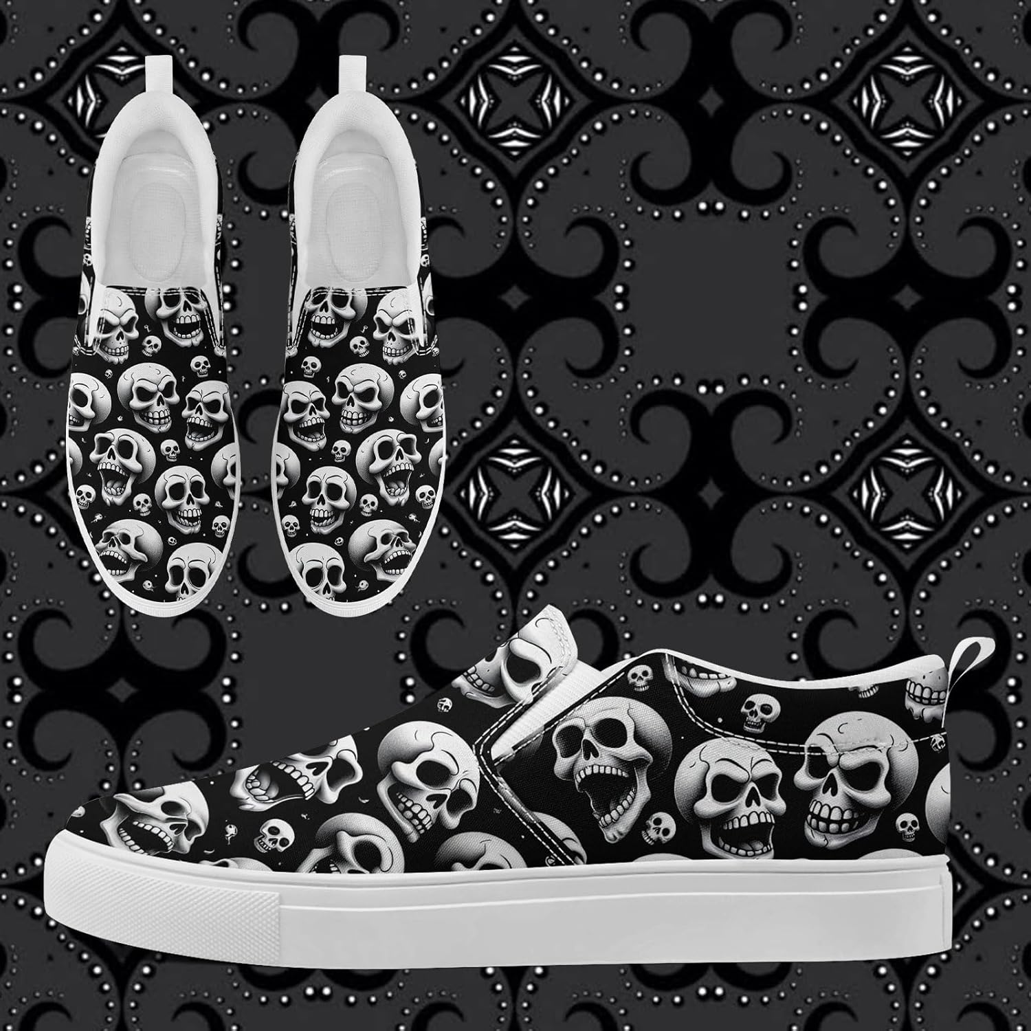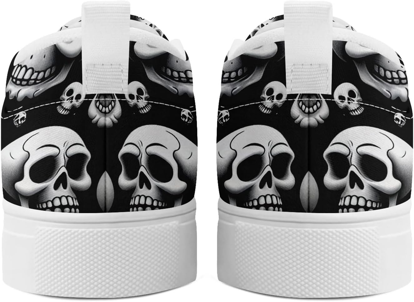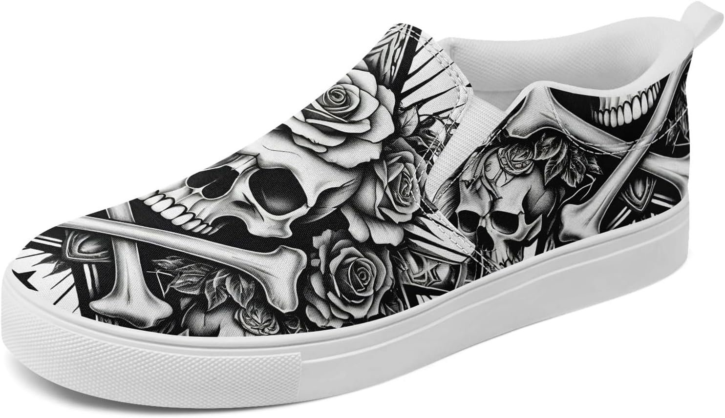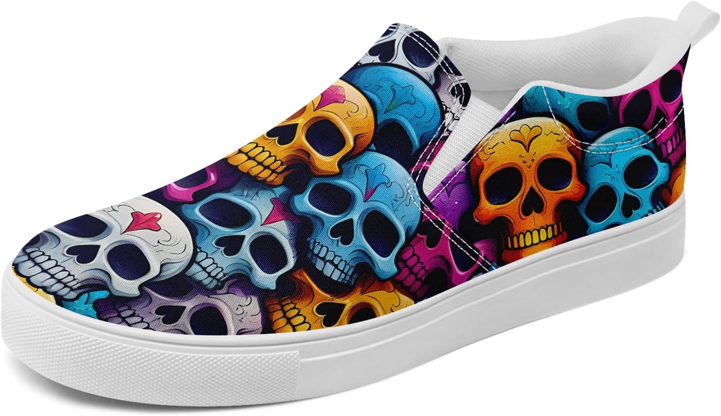 Men's Slip-On Canvas Shoes Gothic Skull Print Casual Lightweight Loafers Comfortable Walking Sneaker for Women