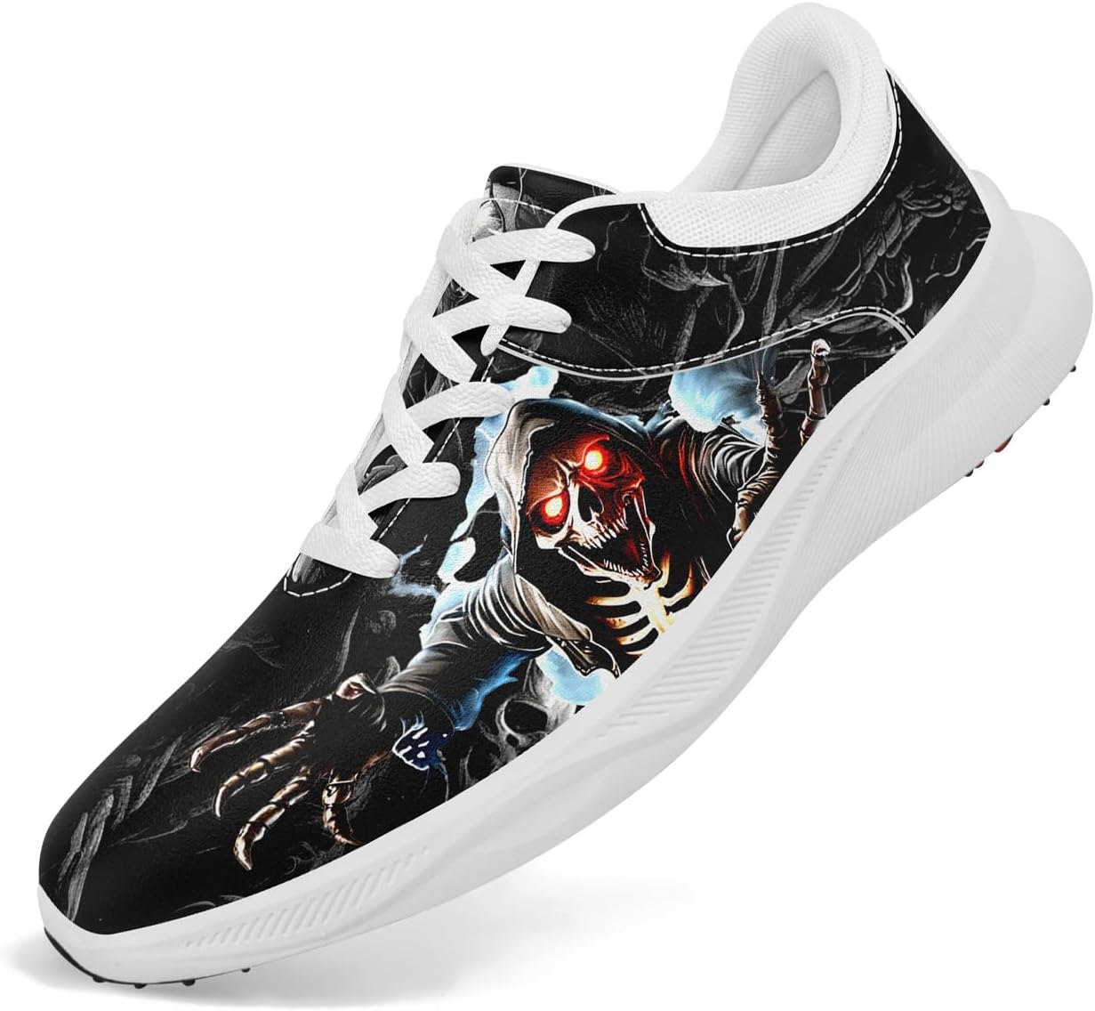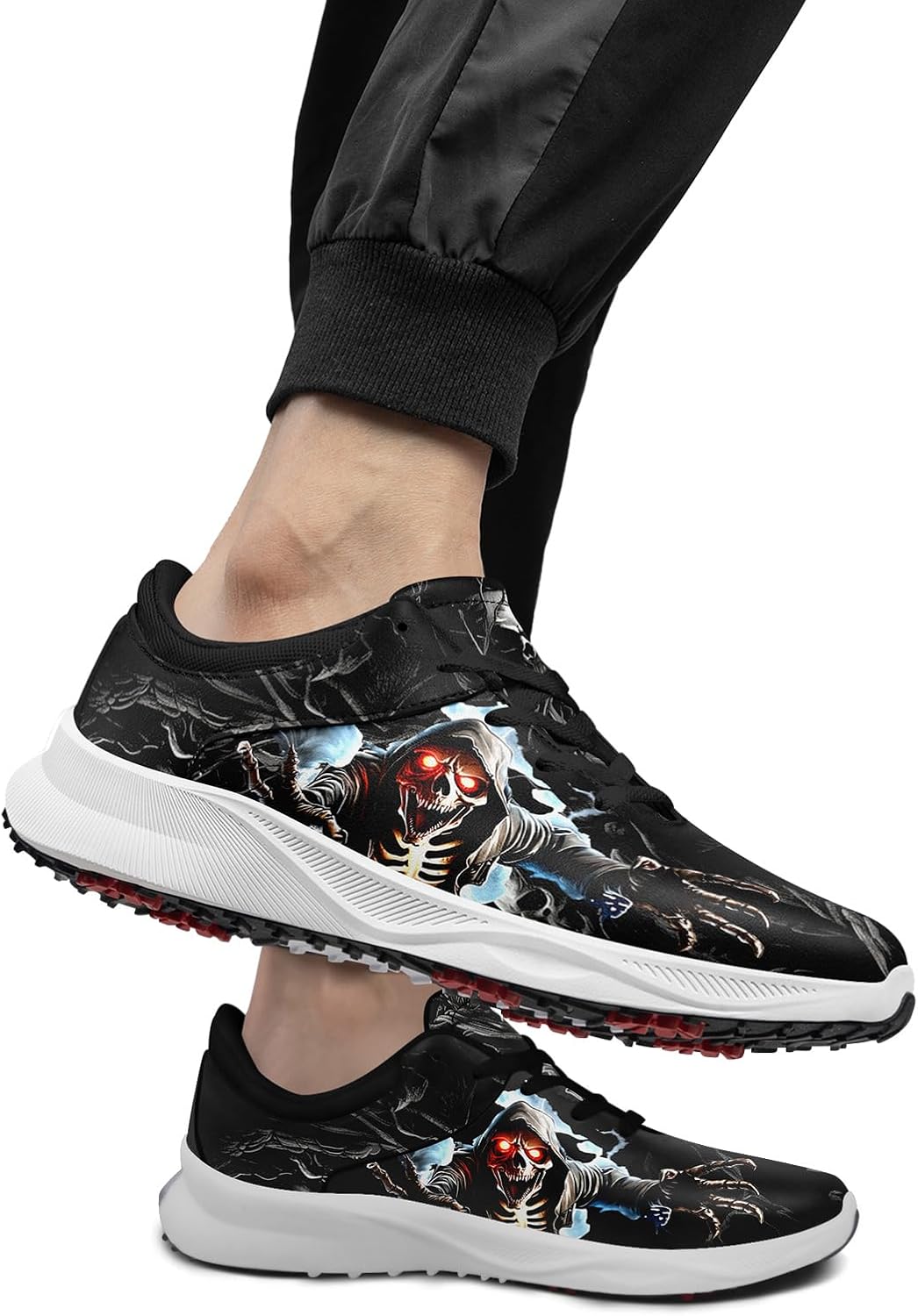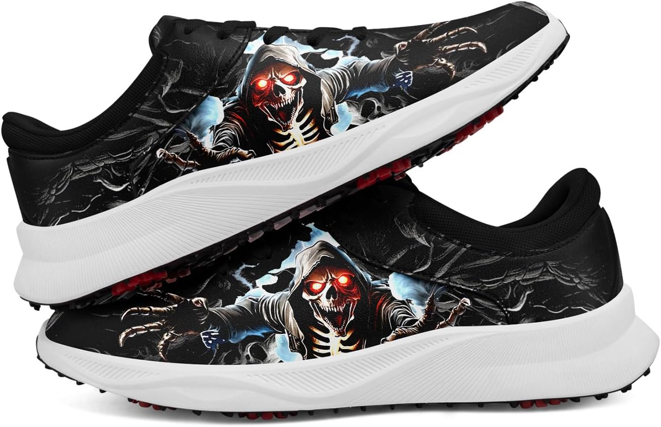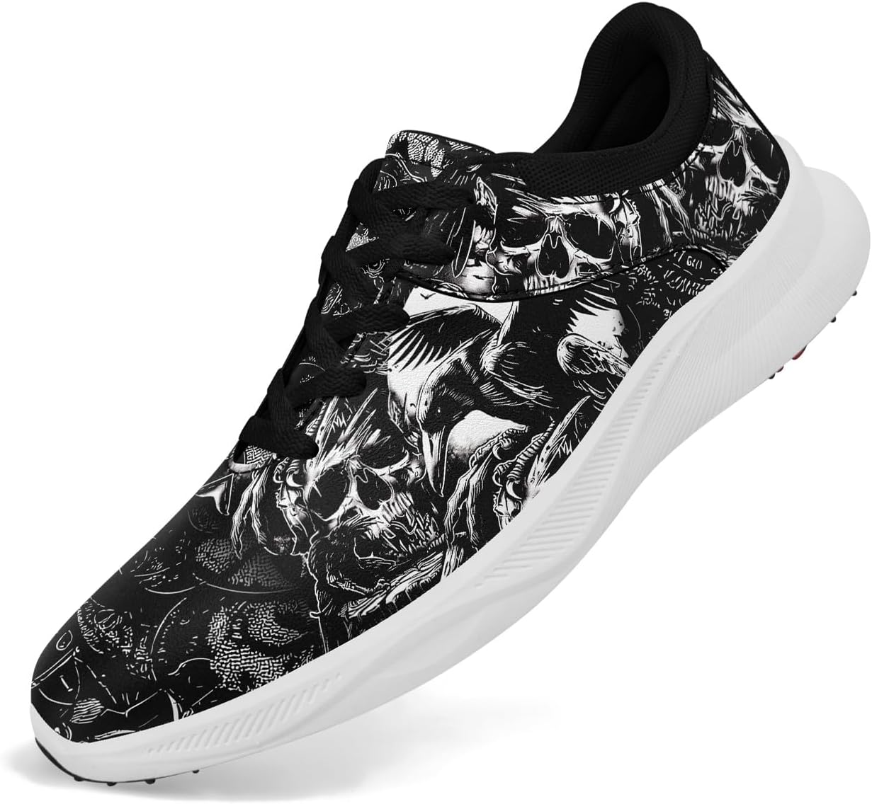 Mens Spikeless Skull Golf Shoes with Auto Vent Sole,Waterproof Slip-Resistant Gothic Punk Rock Style Fashion Golf Shoes