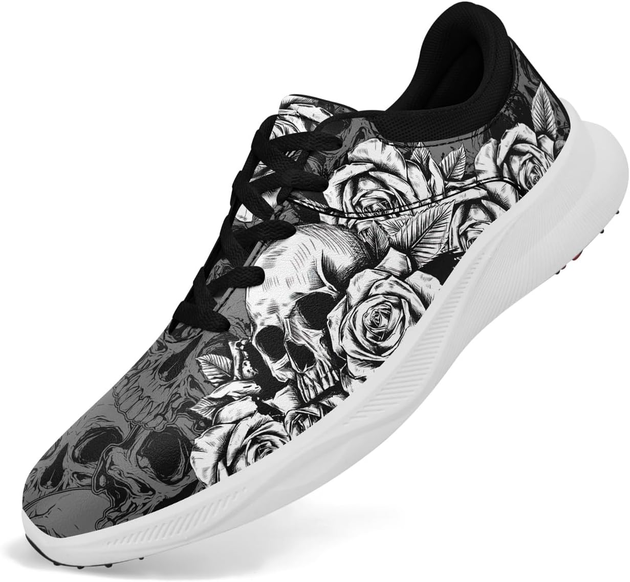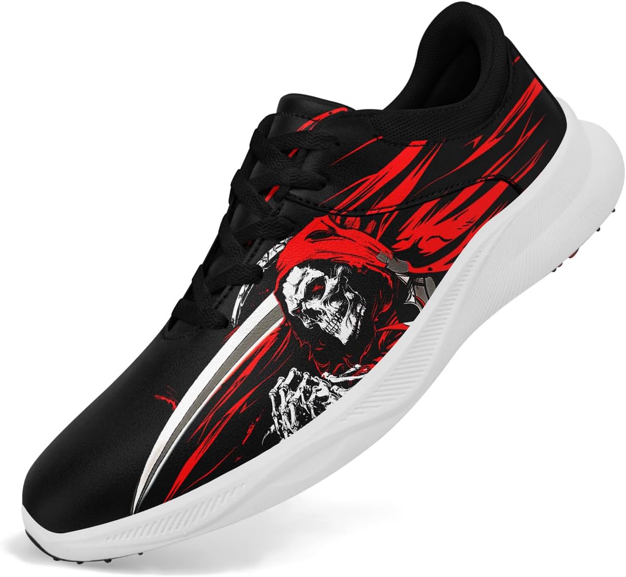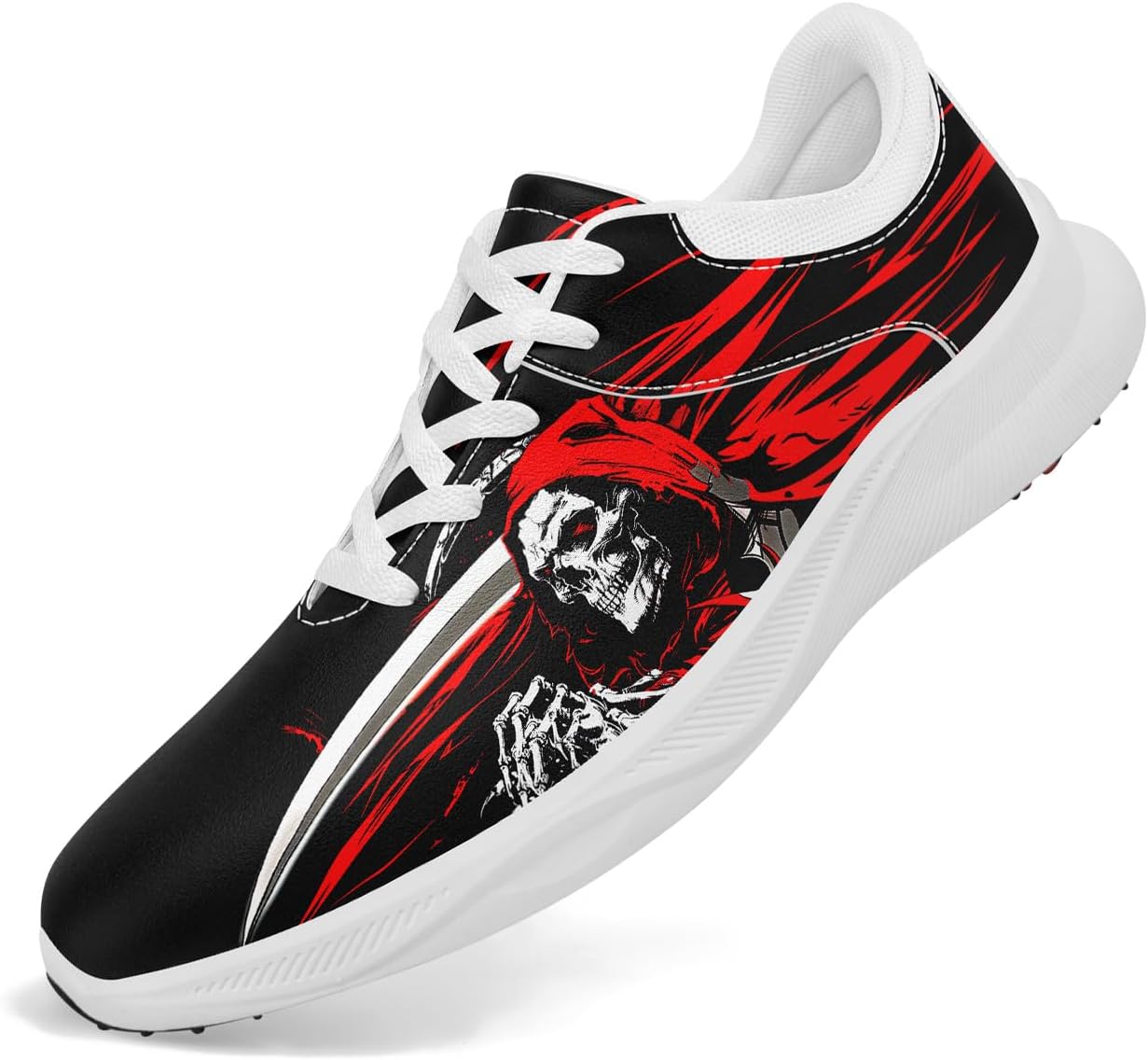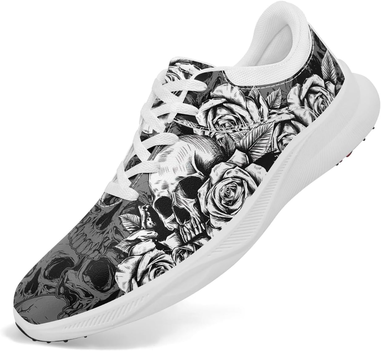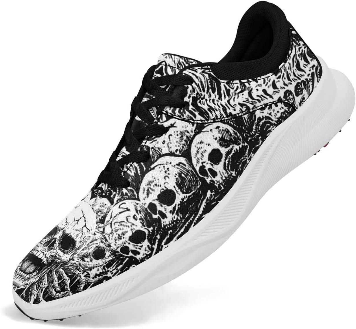 Mens Spikeless Skull Golf Shoes with Auto Vent Sole,Waterproof Slip-Resistant Gothic Punk Rock Style Fashion Golf Shoes