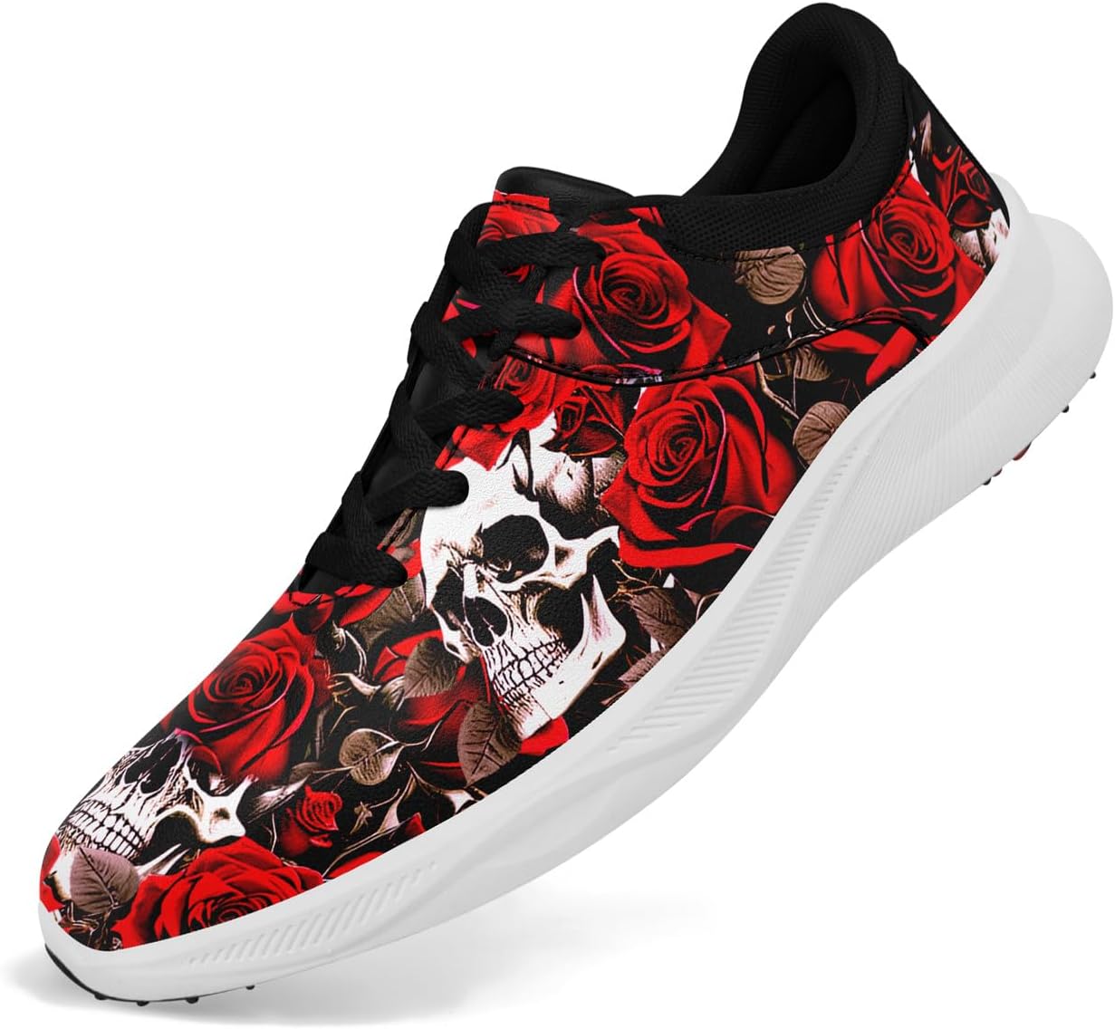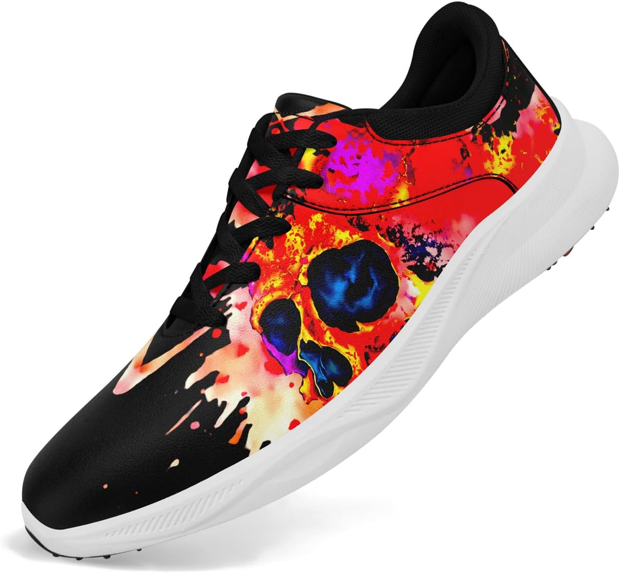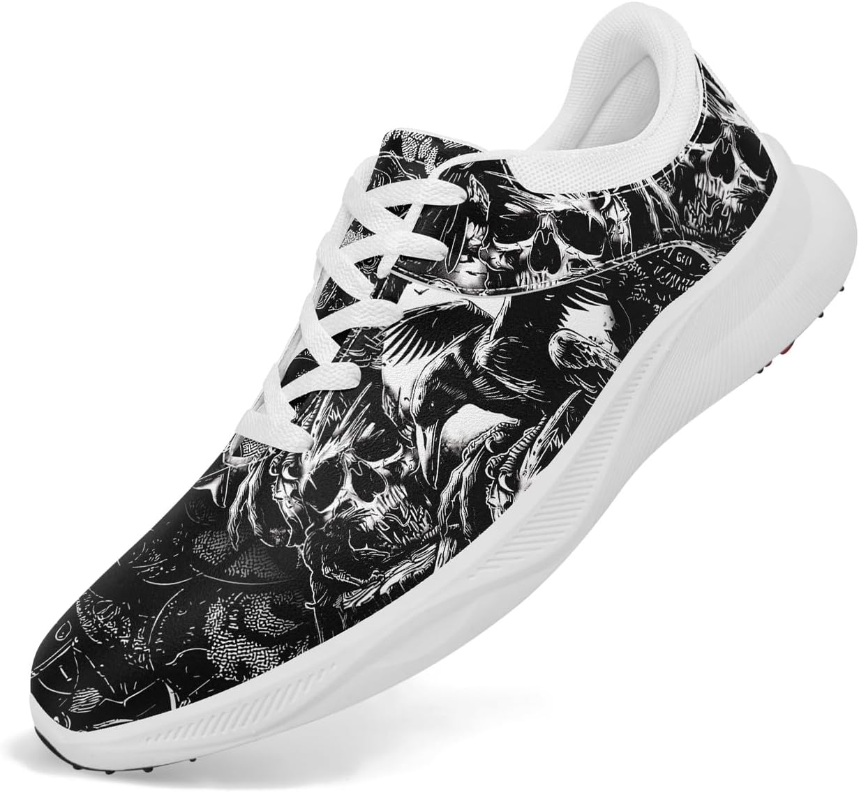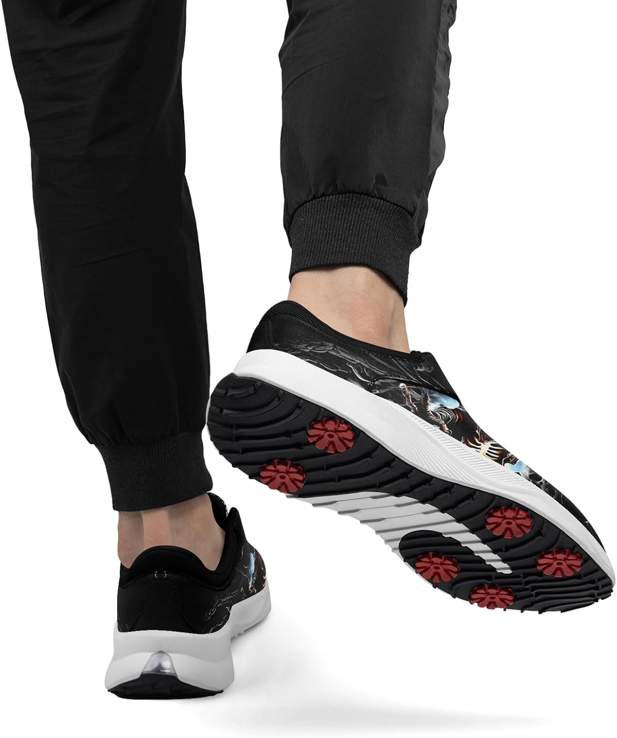Mens Spikeless Skull Golf Shoes with Auto Vent Sole,Waterproof Slip-Resistant Gothic Punk Rock Style Fashion Golf Shoes