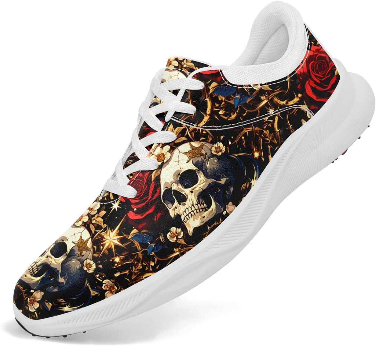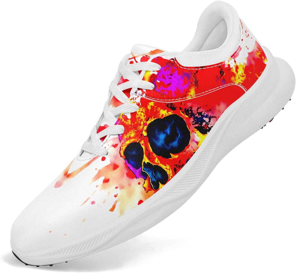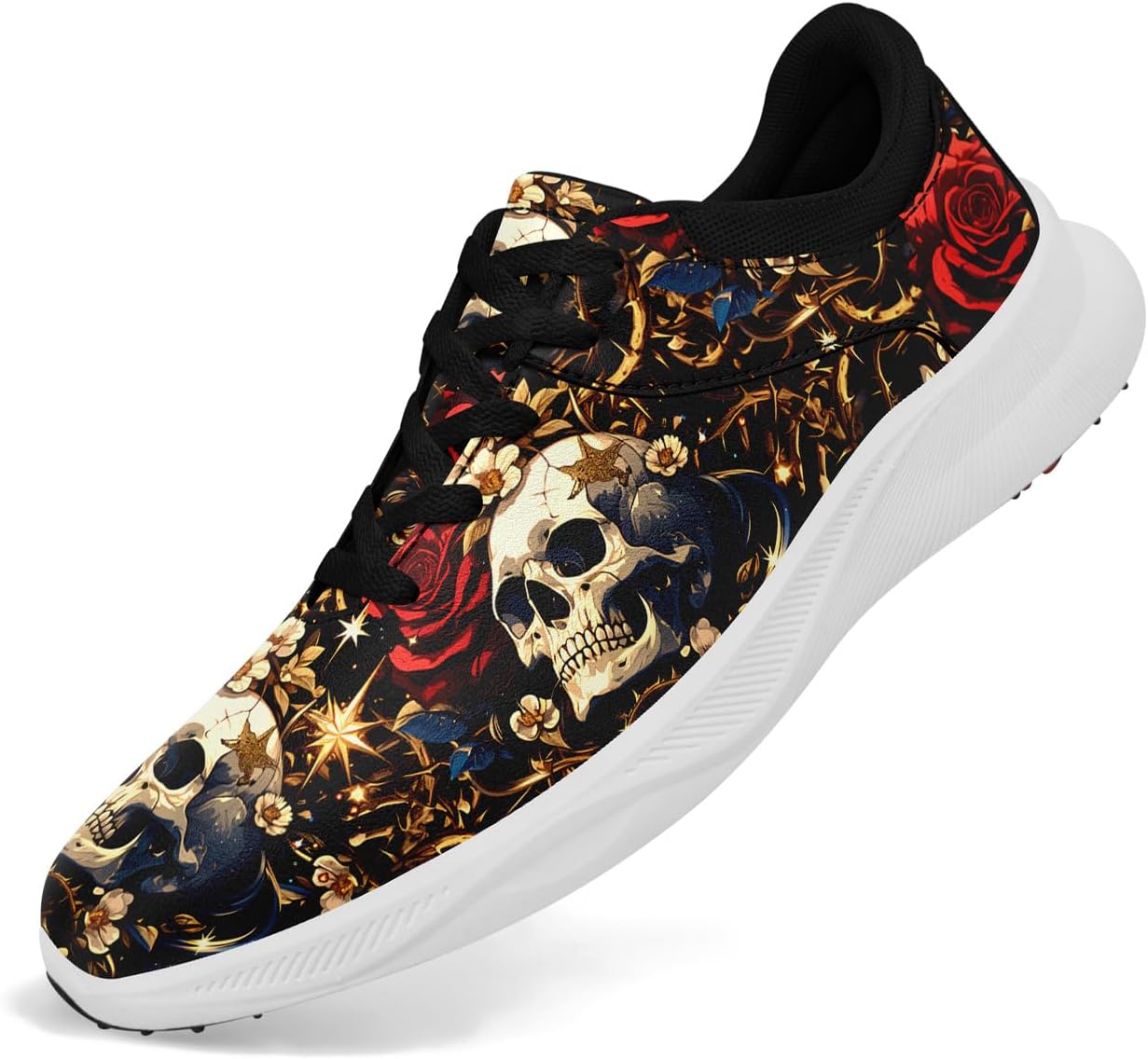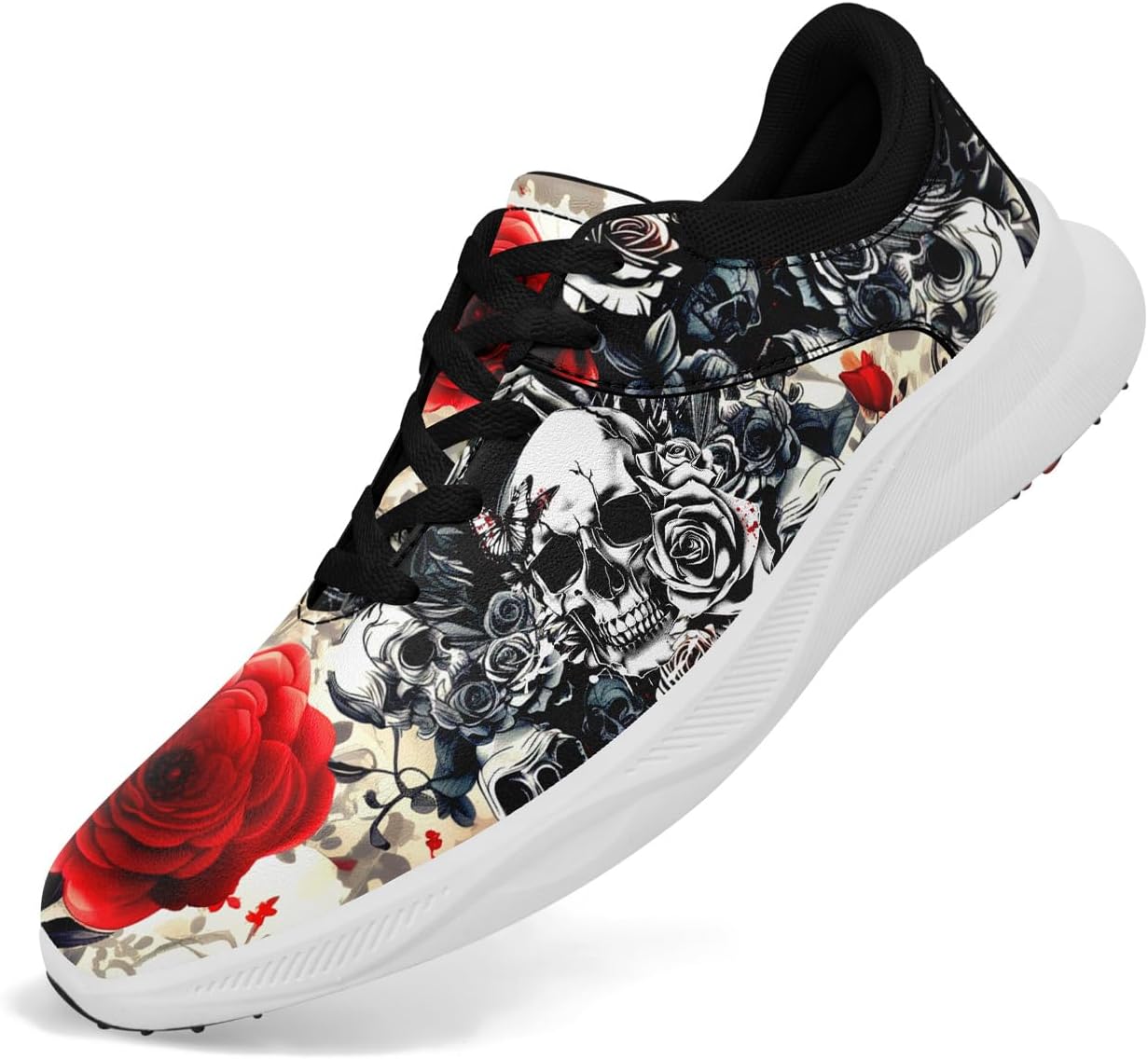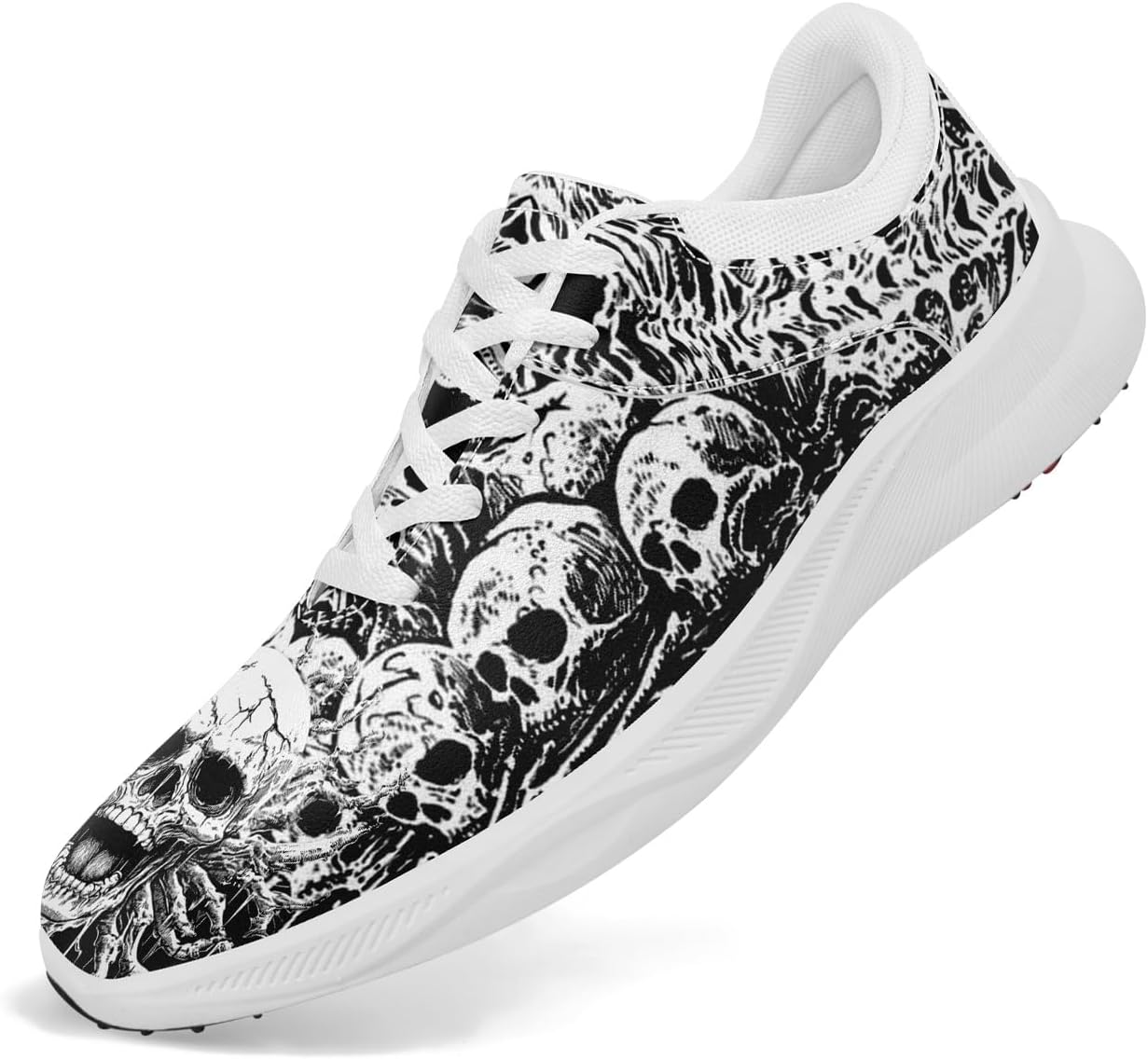 Mens Spikeless Skull Golf Shoes with Auto Vent Sole,Waterproof Slip-Resistant Gothic Punk Rock Style Fashion Golf Shoes