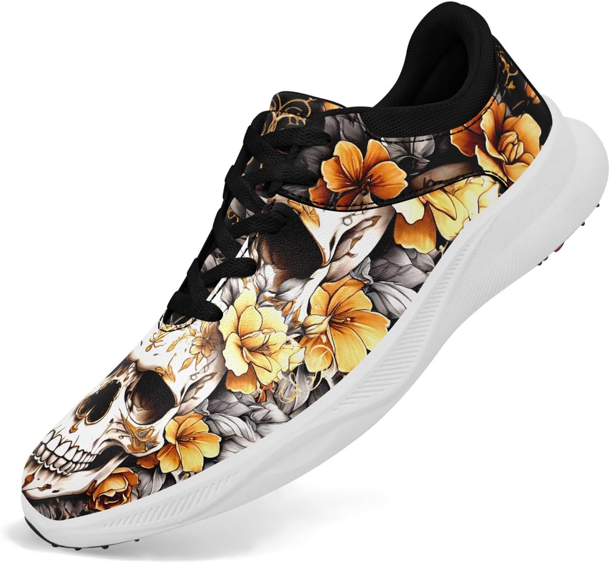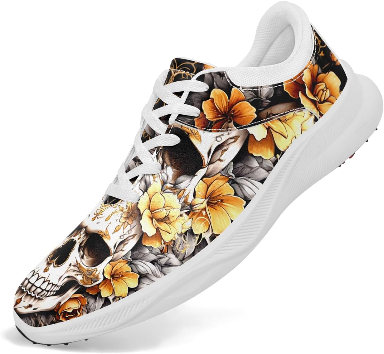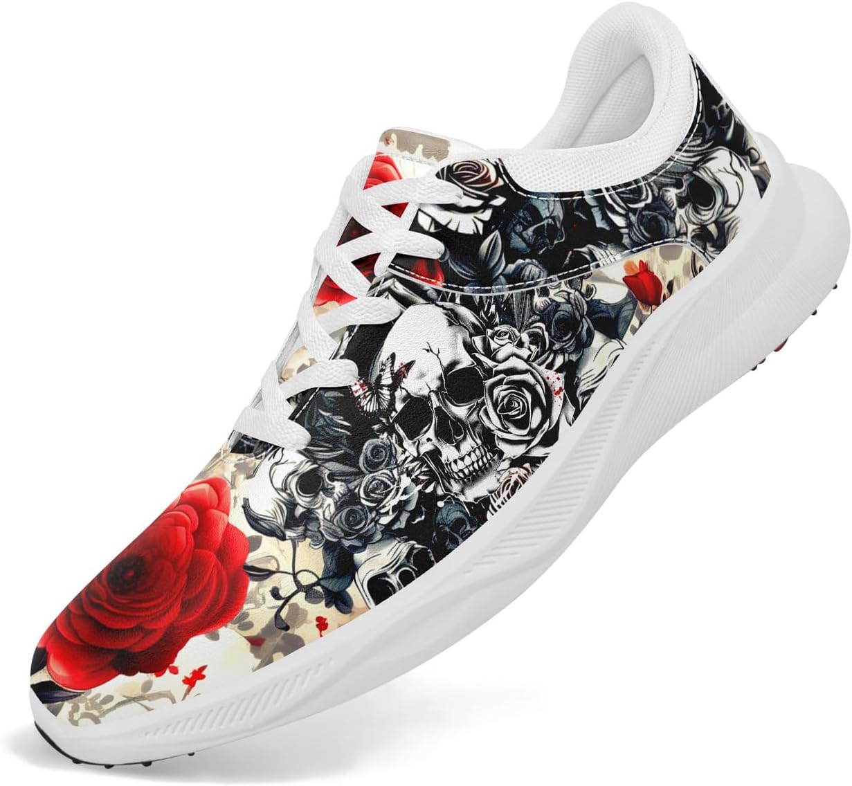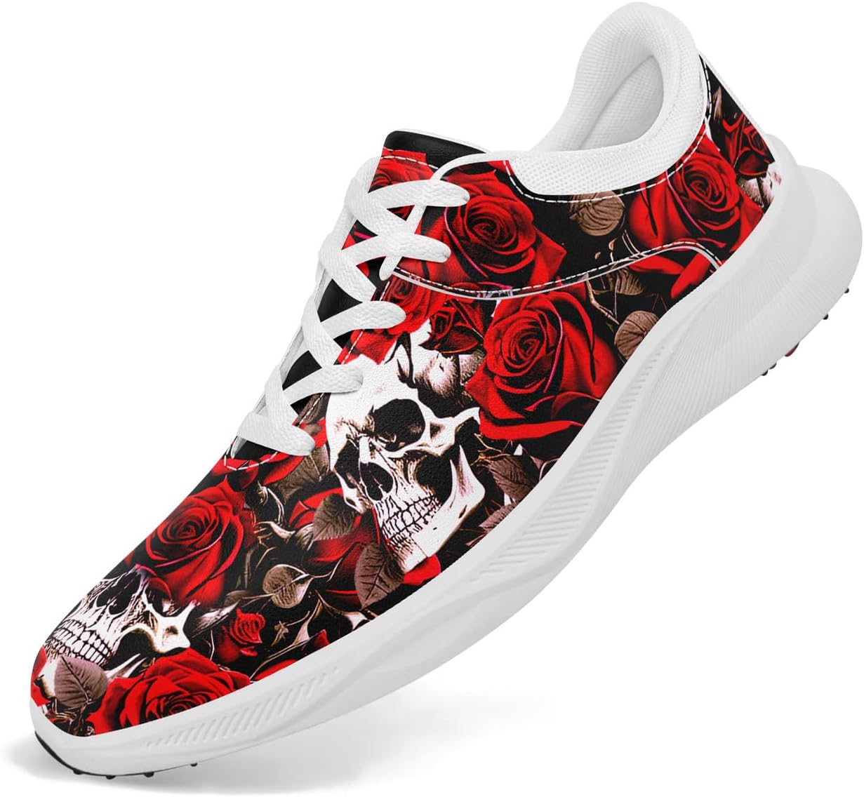 Mens Spikeless Skull Golf Shoes with Auto Vent Sole,Waterproof Slip-Resistant Gothic Punk Rock Style Fashion Golf Shoes