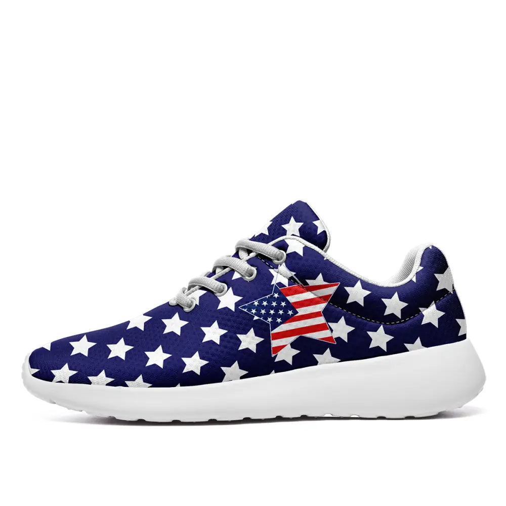 Patriotic Custom USA Star Pattern Sneakers | American Flag Themed Lightweight Walking Shoes for Men, Women, Kids | NL-067-23023001