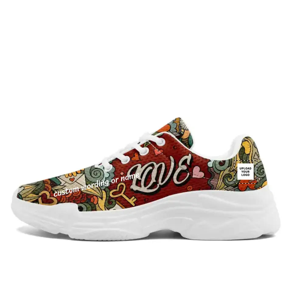 Our Custom Chunky Shoe is the epitome of chic and romanticism. Our Valentine's Day chunky sneakers are perfect for couples who want to show the world how special their relationship is. Put your love story into shoes by adding photographs and names to them. Whether it's a formal event or a more relaxed get-together, these personalized sneakers are perfect for the fashion-forward couple. Our exclusive Chunky Shoe is the perfect way to show the world how much you care for that special someone while also elevating your shoe game.