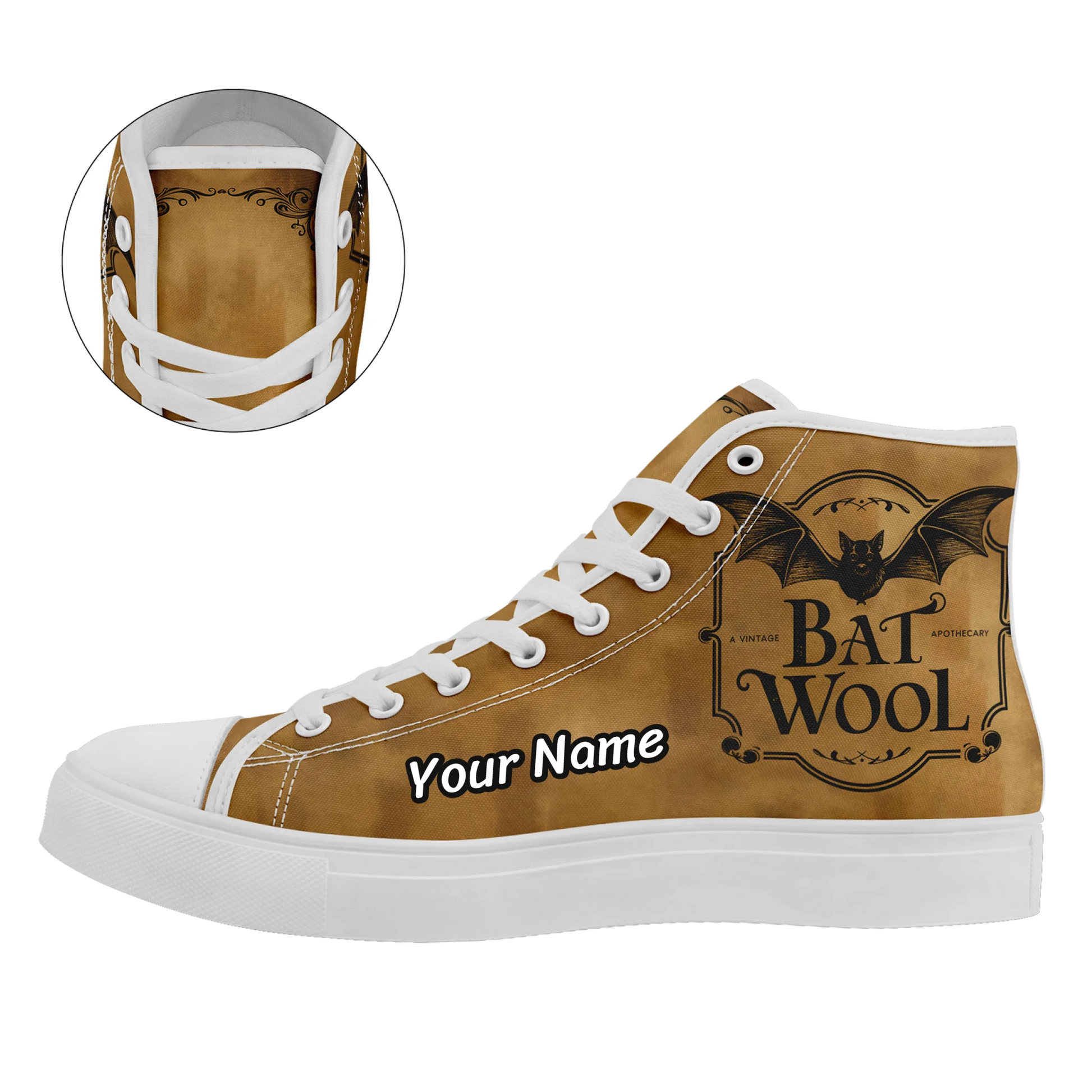 Crafted from durable canvas and designed with a classic lace-up high top style, they provide both comfort and long-lasting wear. Personalize them with your own Halloween-inspired artwork or keep the hauntingly cool skull-and-ghost design to make your footwear truly unique.