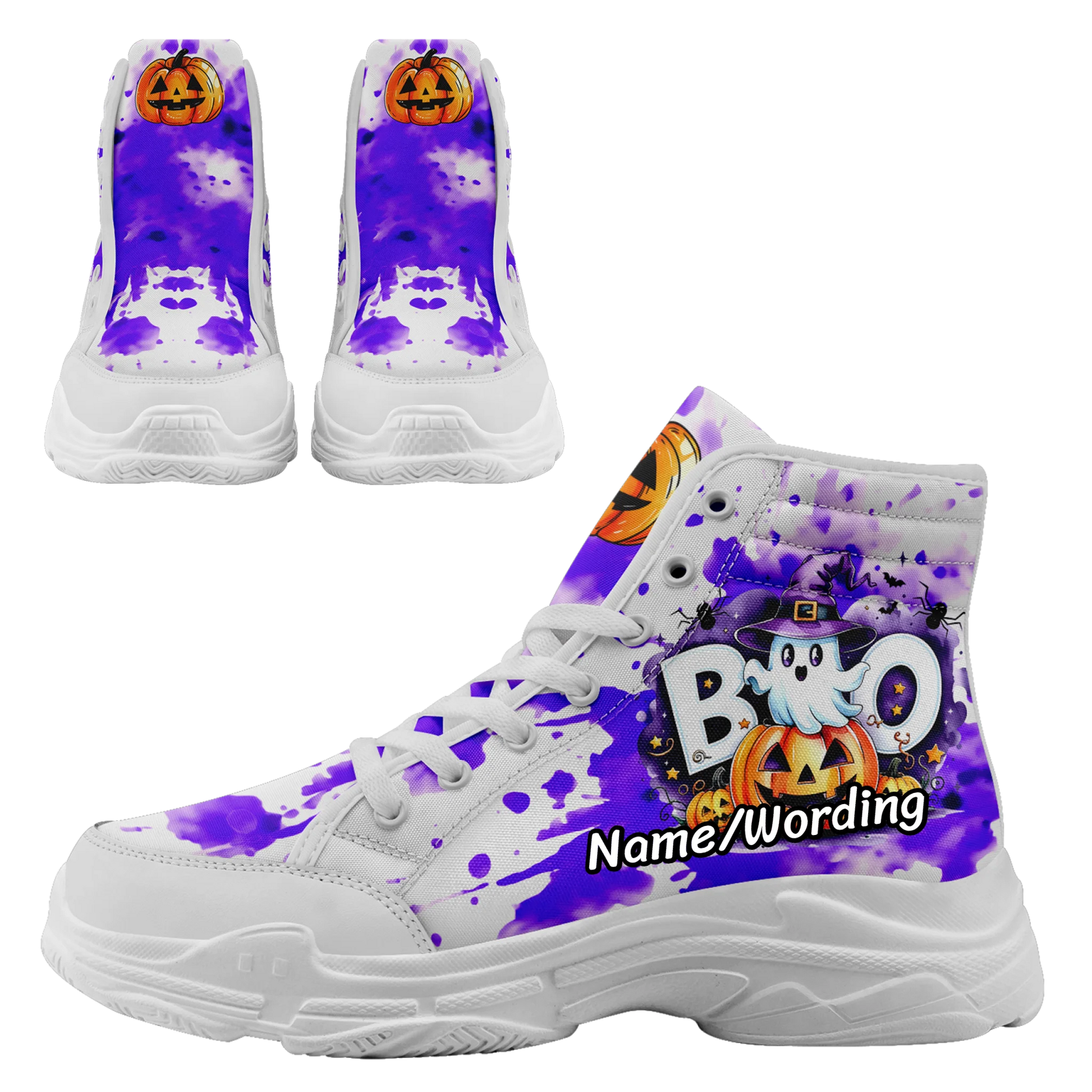 Personalized Halloween Design Sneakers, Custom Pumpkin, Bat, Witch Print High Top Shoes
