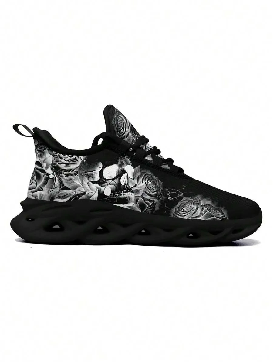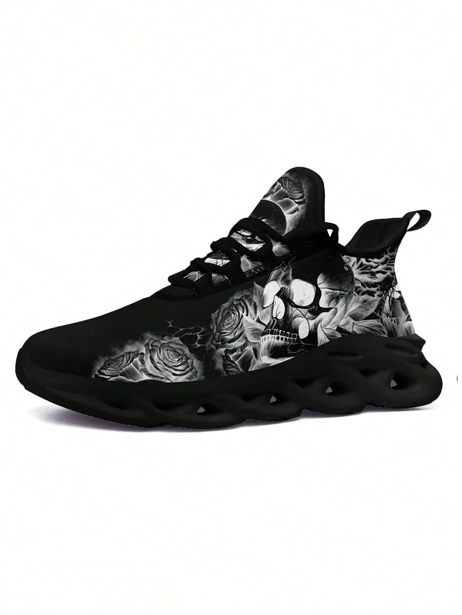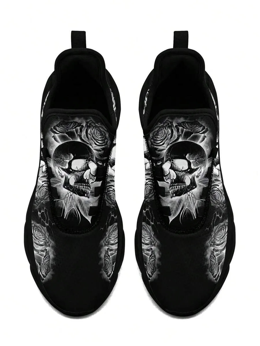 Men's Gothic Rose Skull Pattern Running Shoes | Print-On-Demand Custom Sneakers with Your Name & Logo