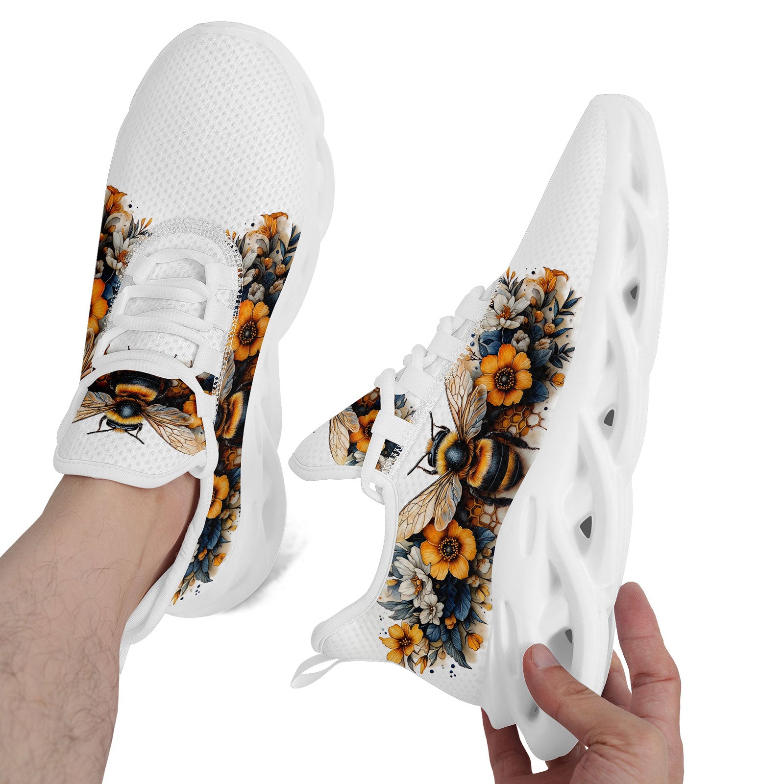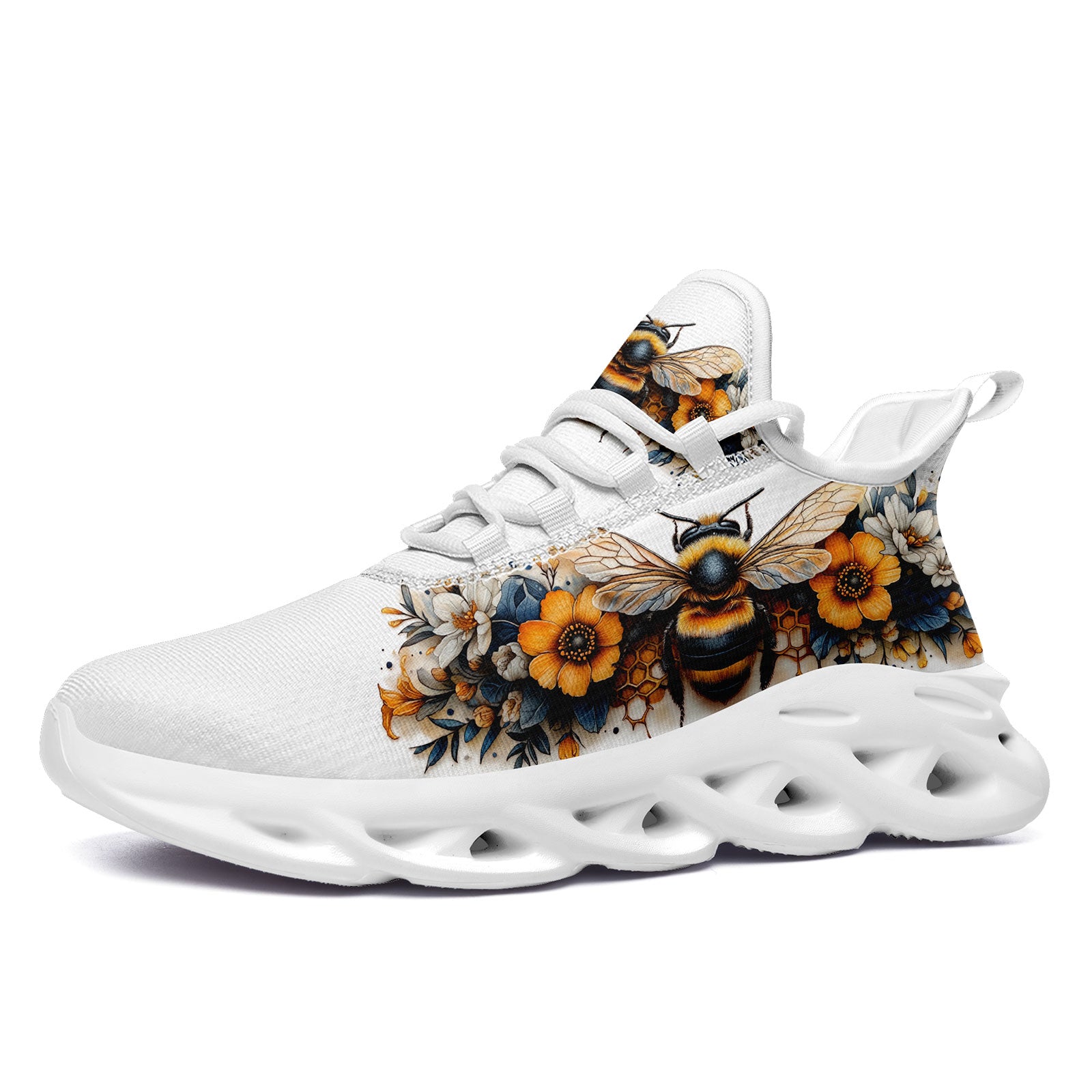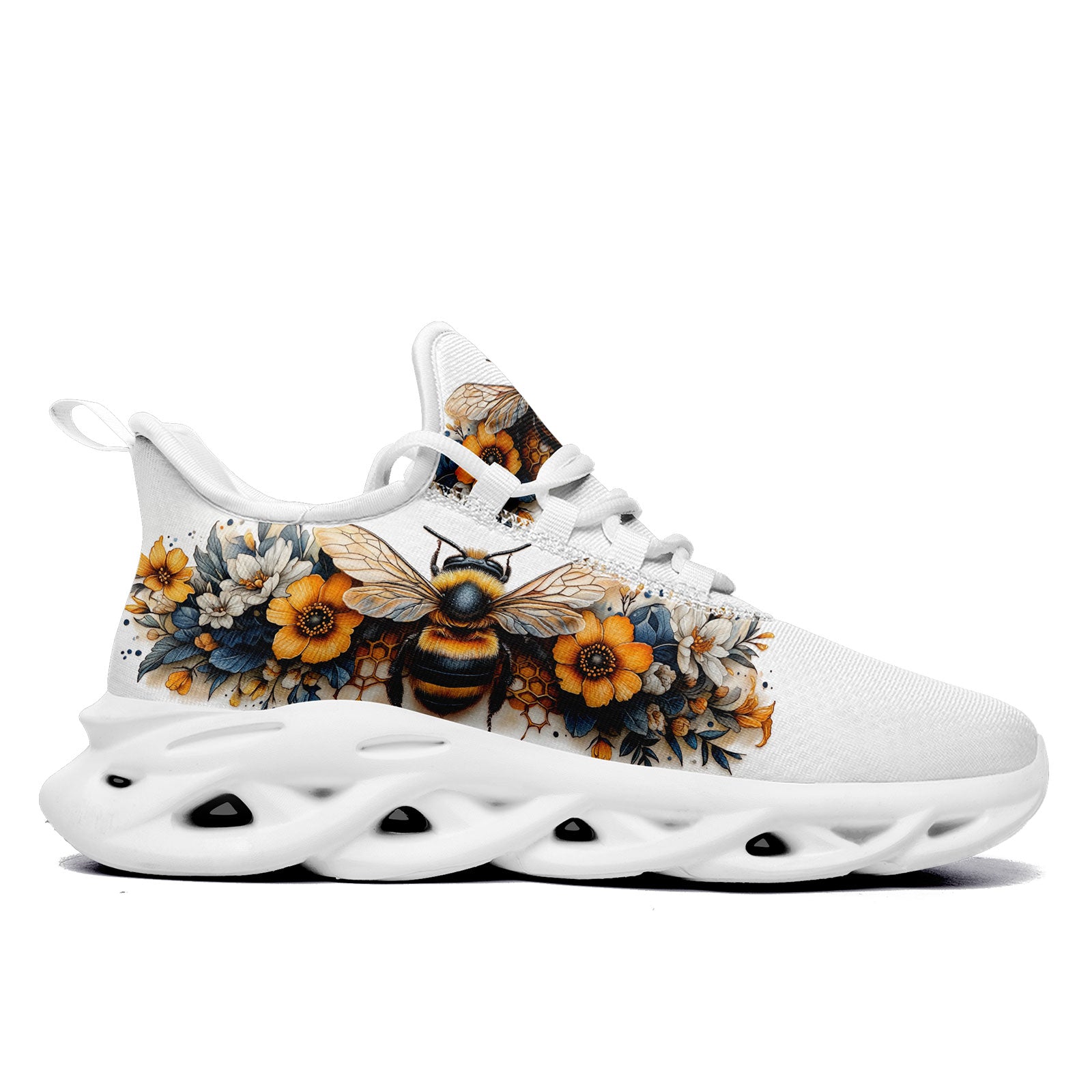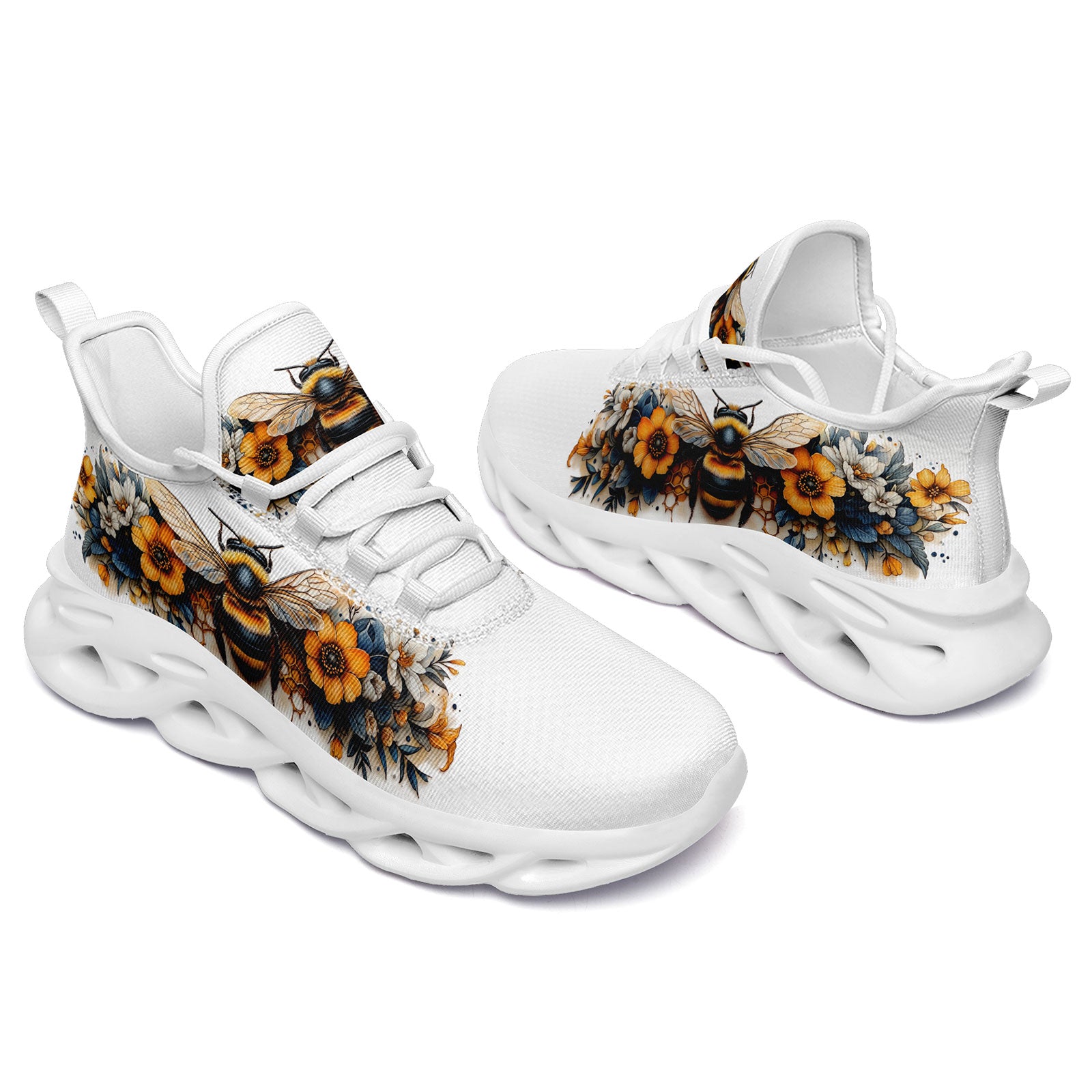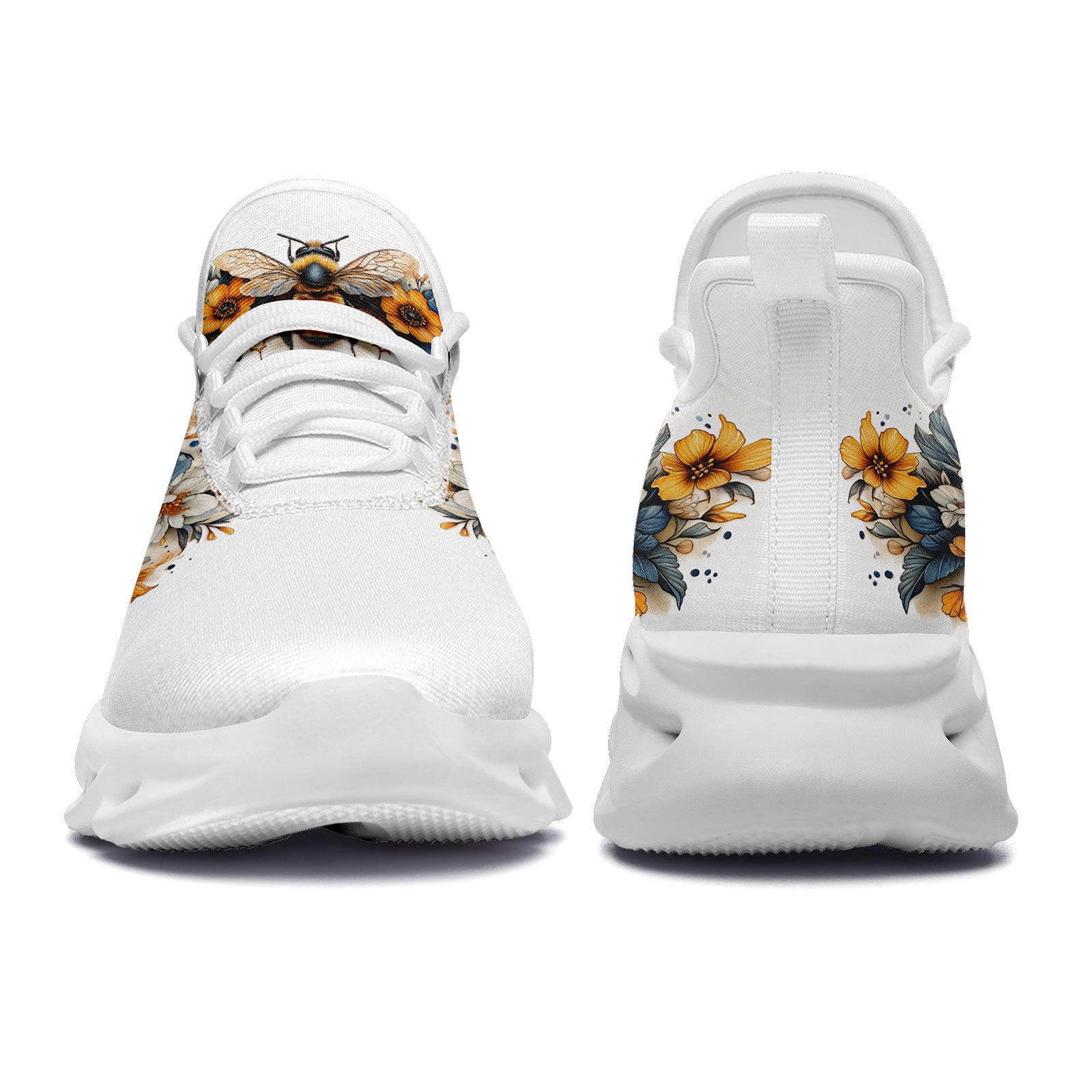 Floral Bee Sneakers | Honeybee & Sunflower Print Shoes | FN003-25027044-4