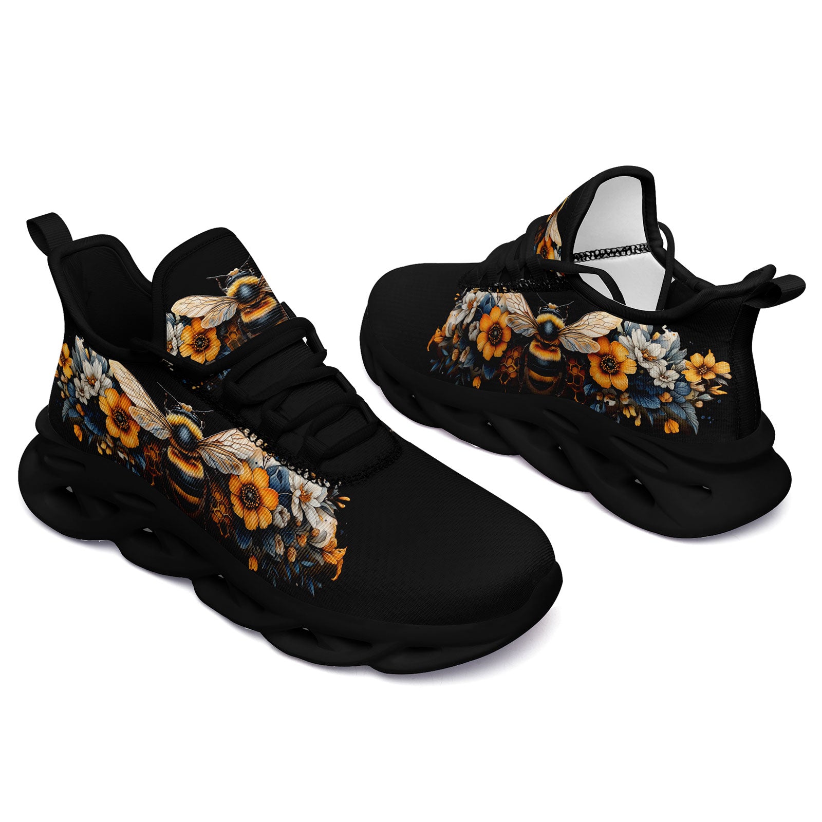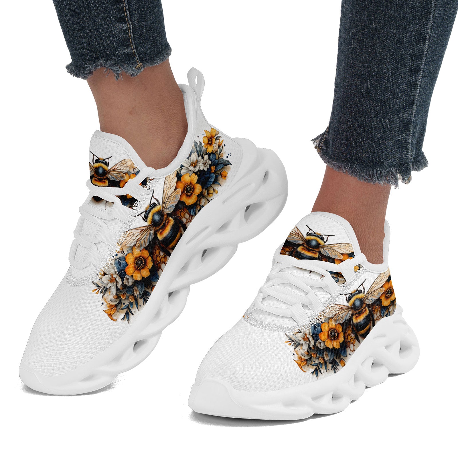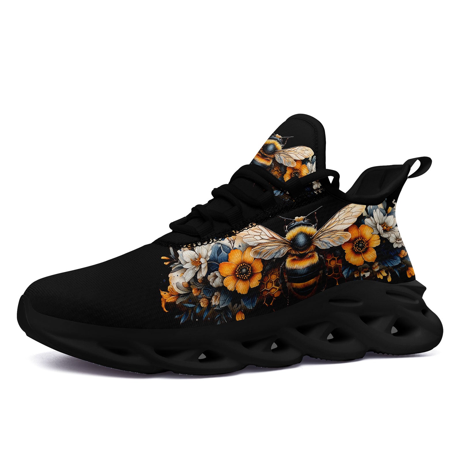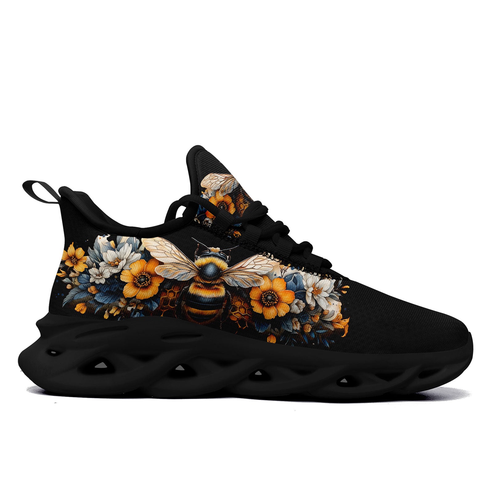 Floral Bee Sneakers | Honeybee & Sunflower Print Shoes | FN003-25027044-4