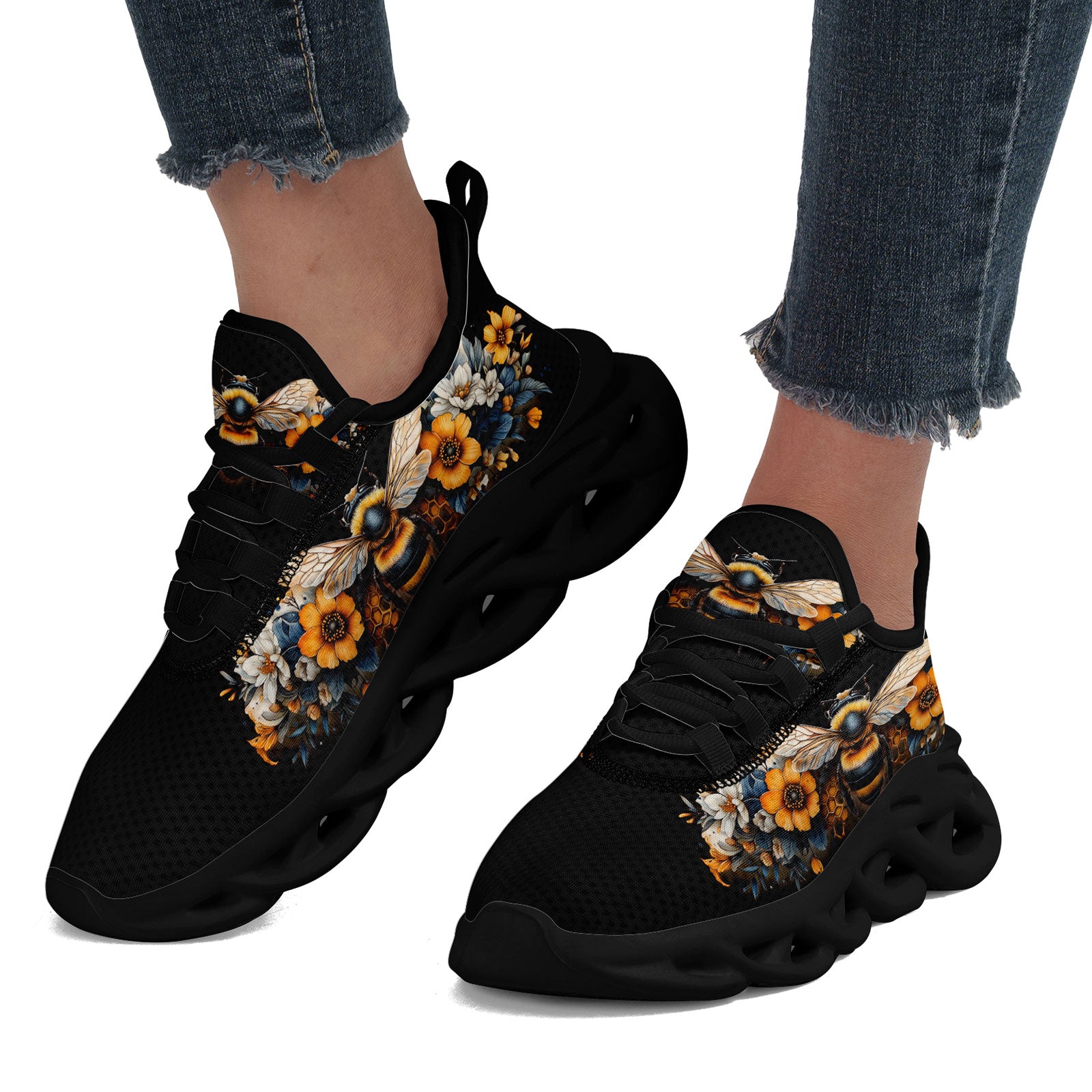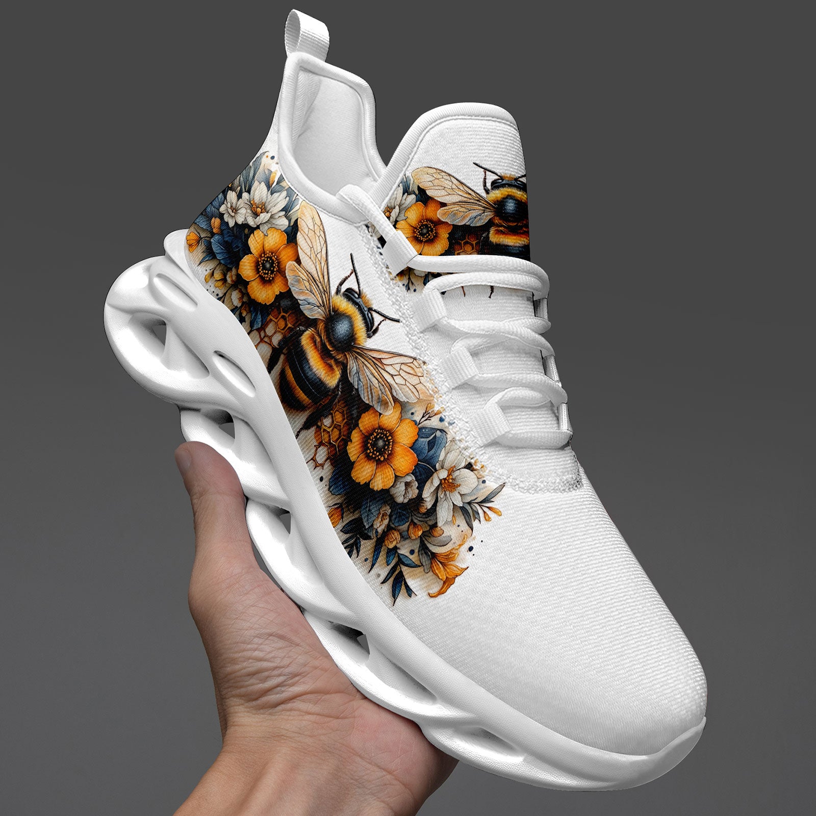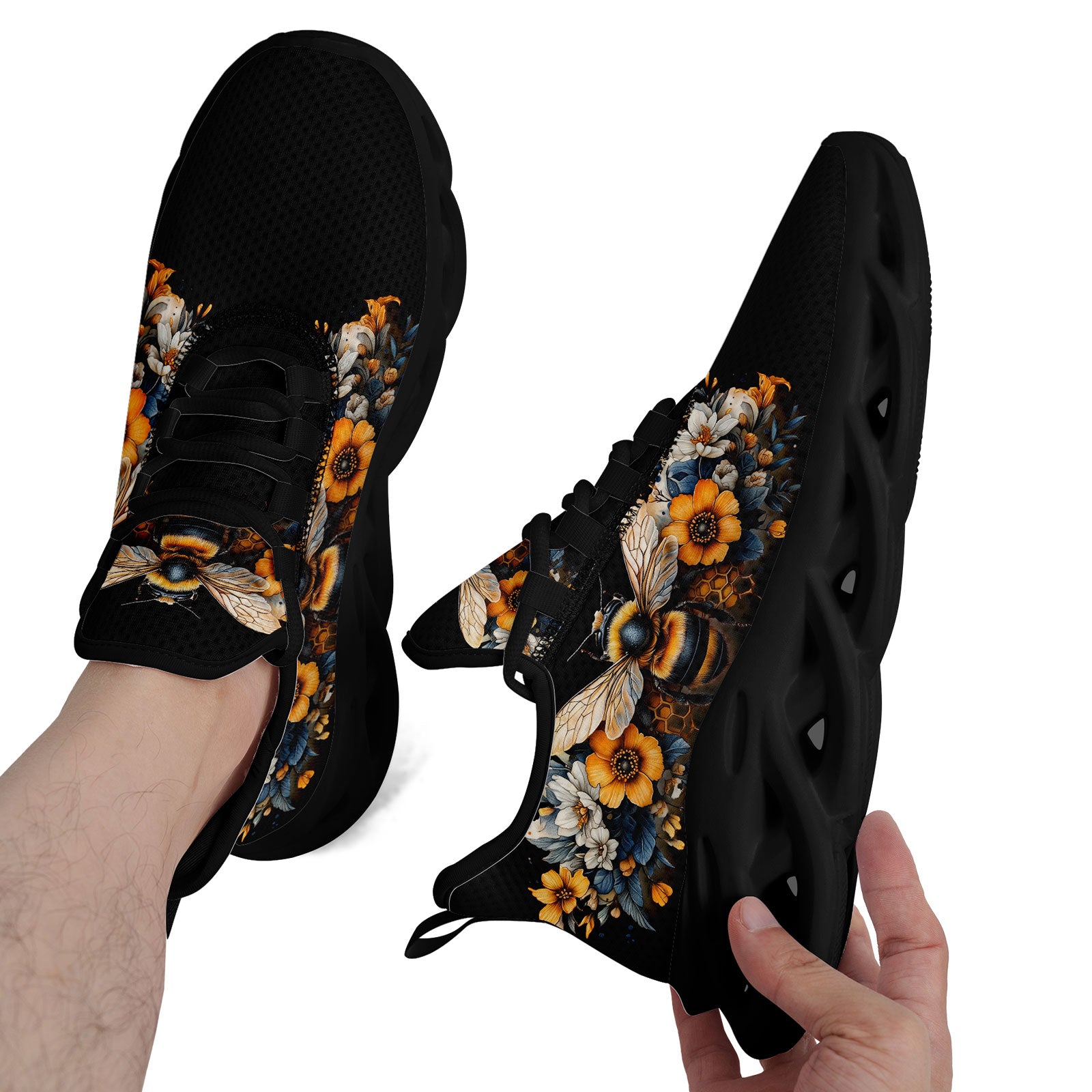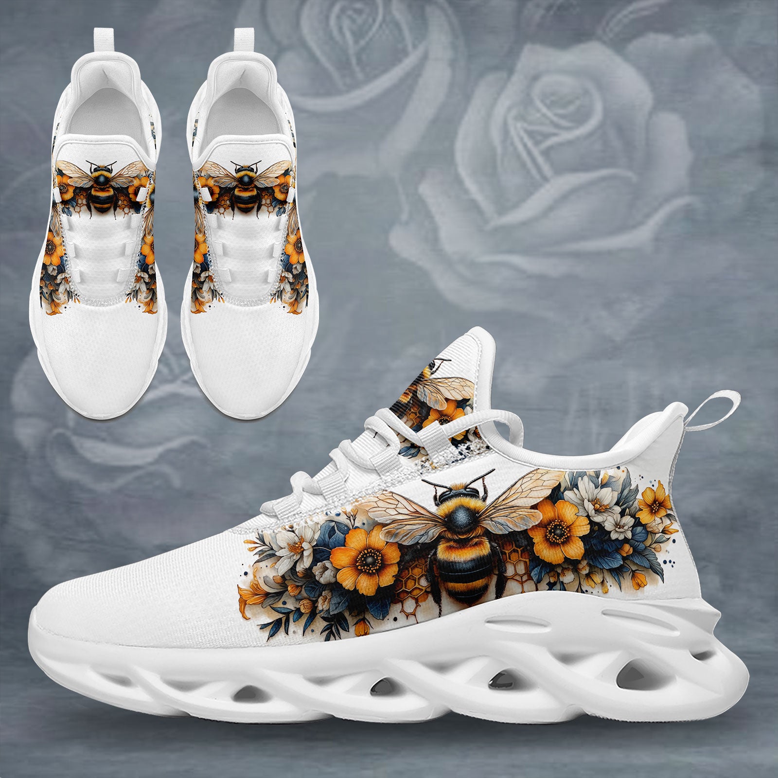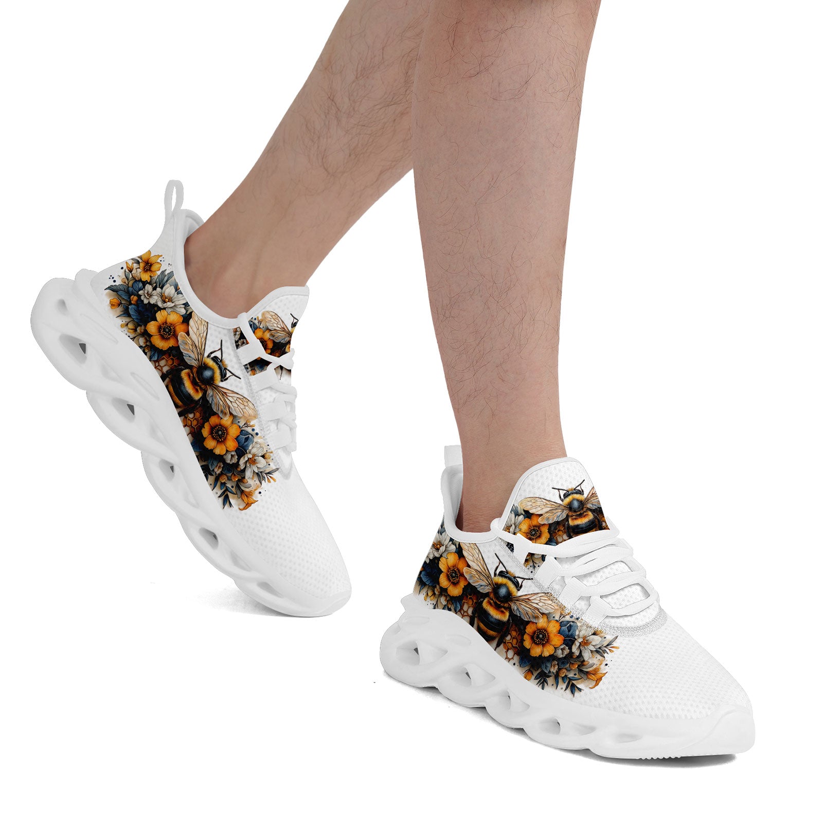 Floral Bee Sneakers | Honeybee & Sunflower Print Shoes | FN003-25027044-4