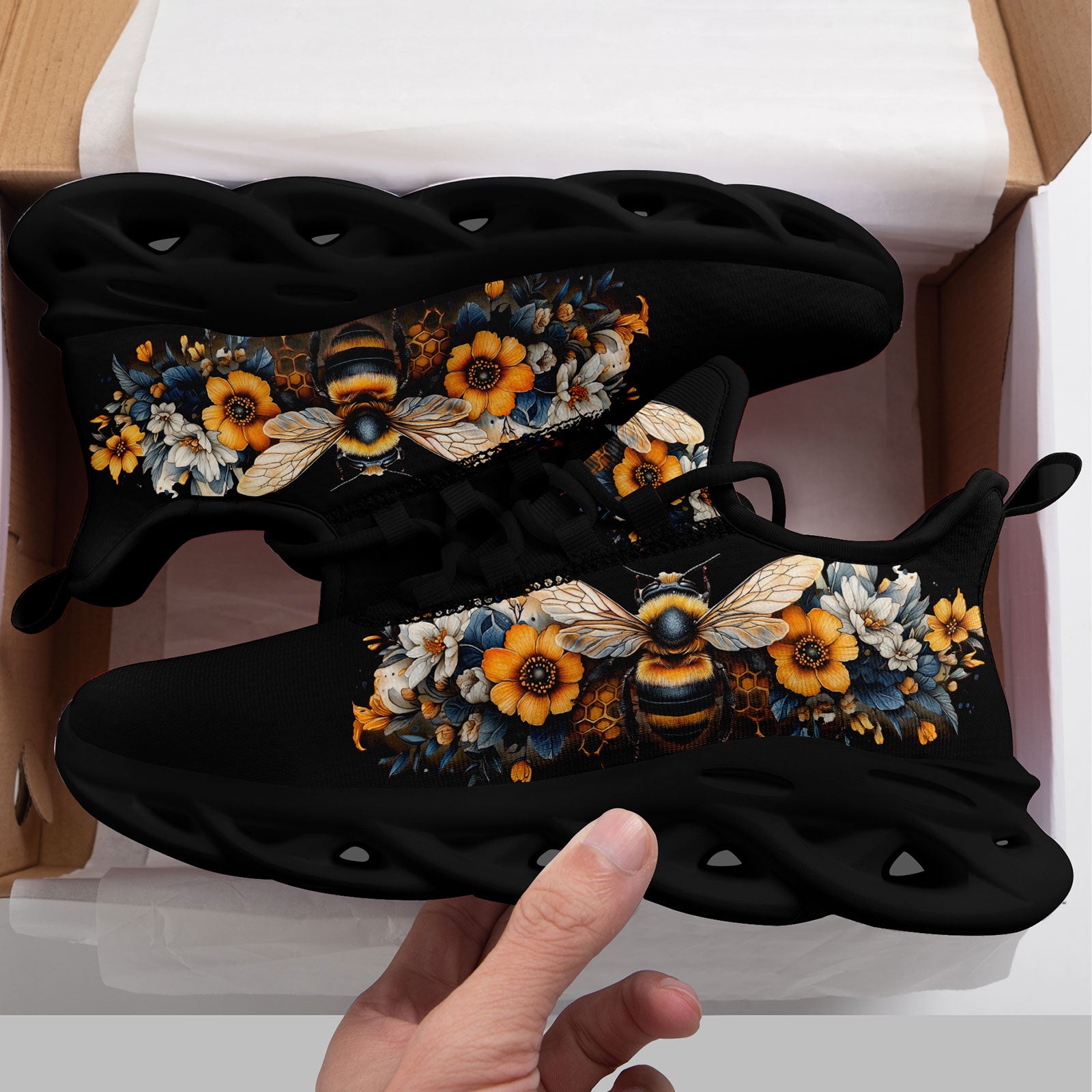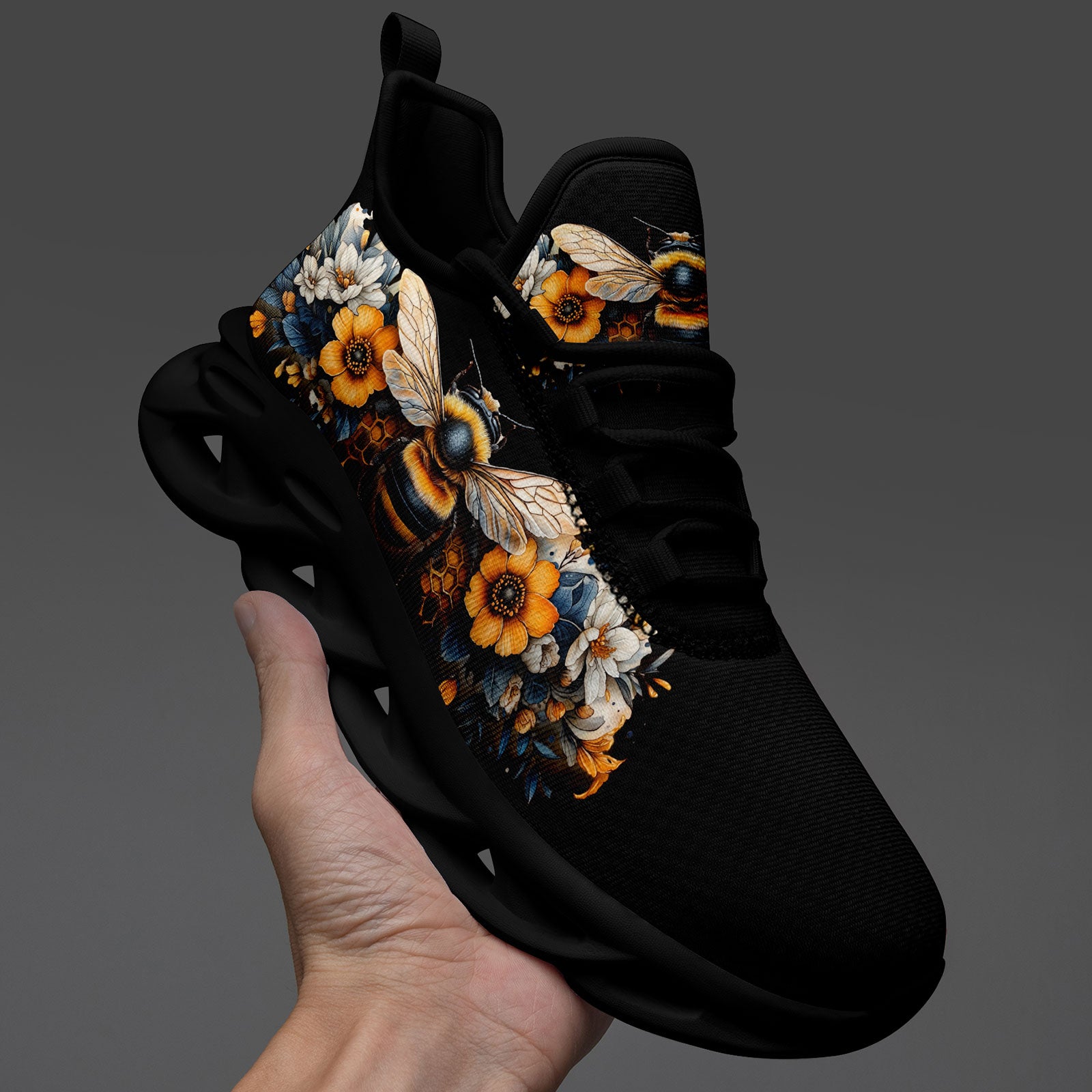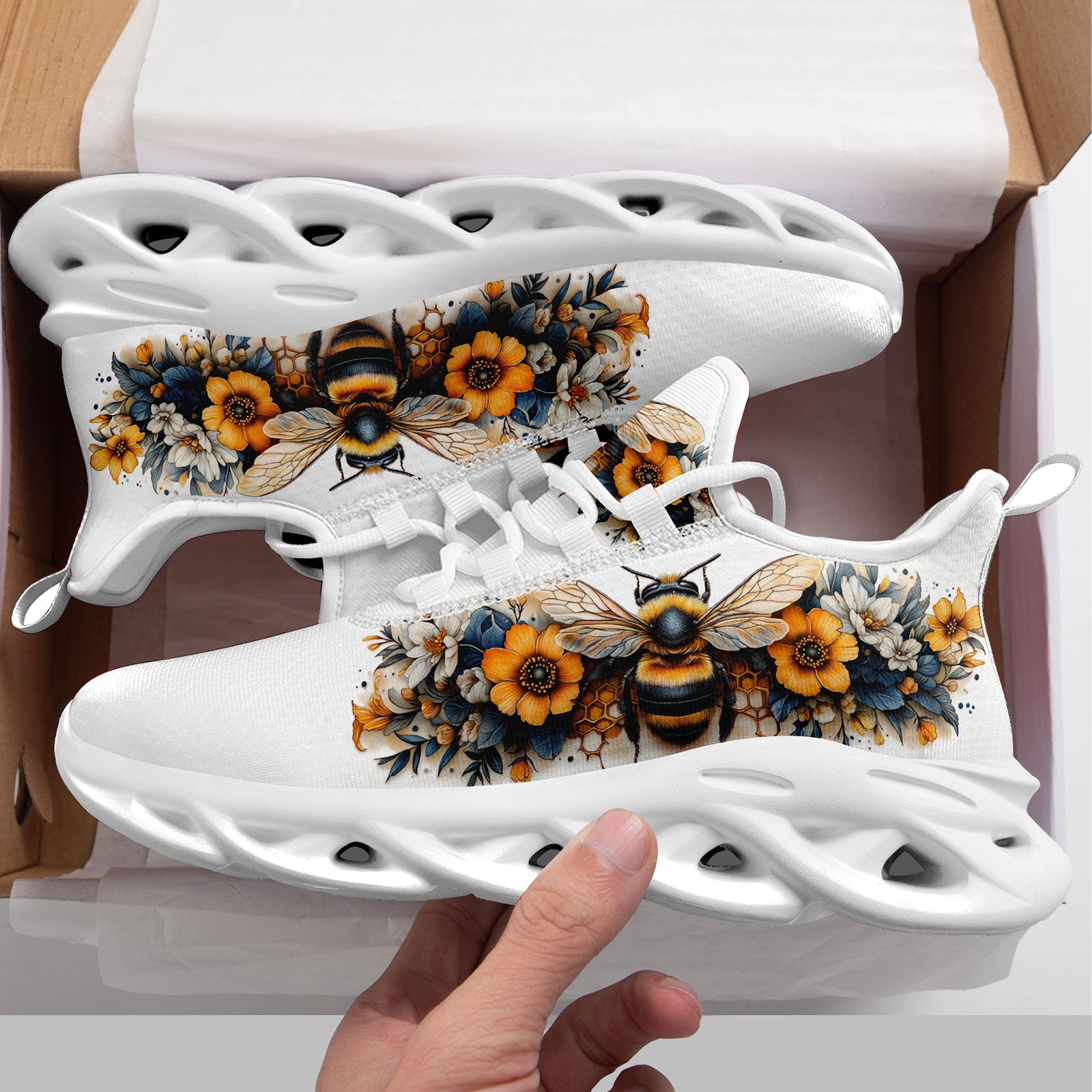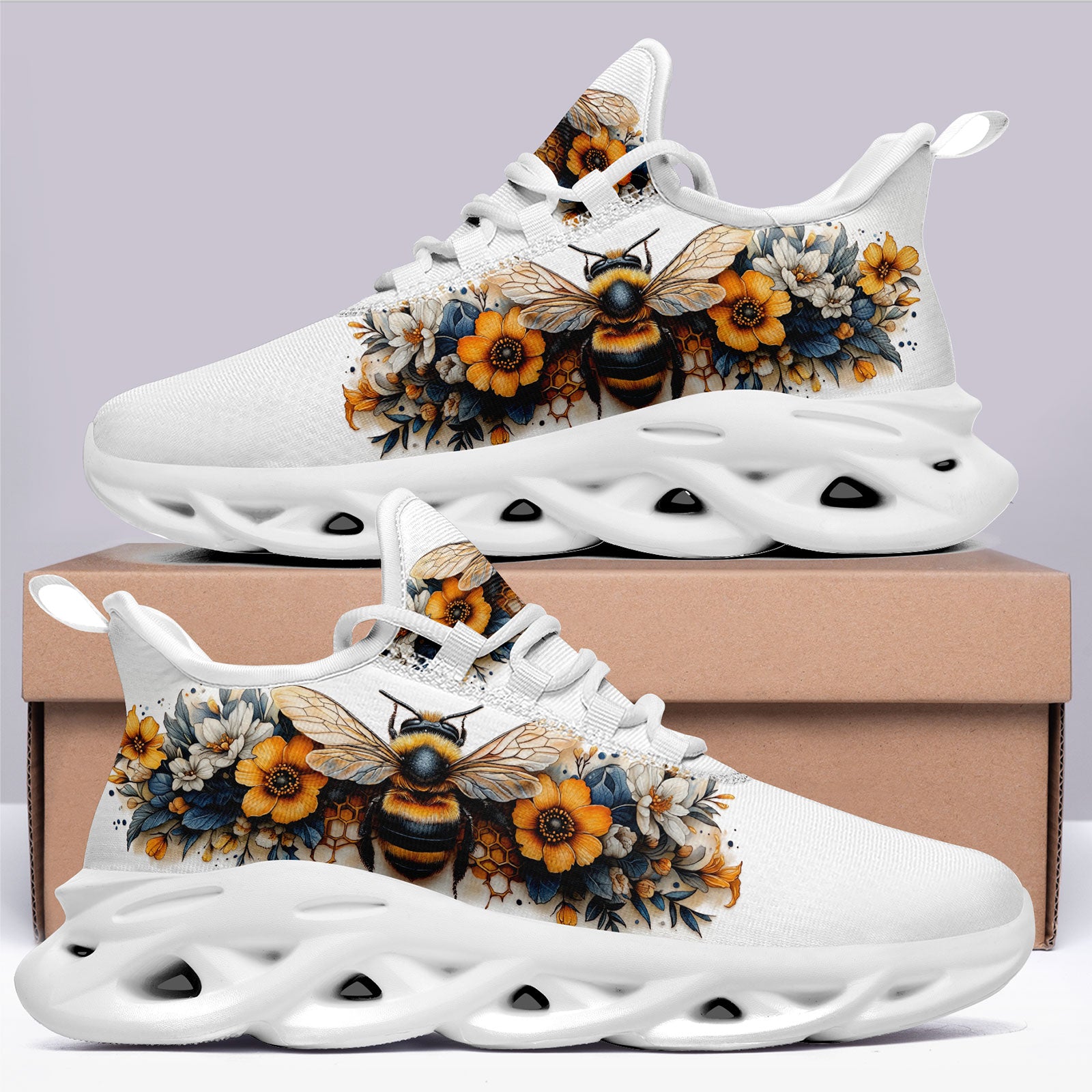 Floral Bee Sneakers | Honeybee & Sunflower Print Shoes | FN003-25027044-4