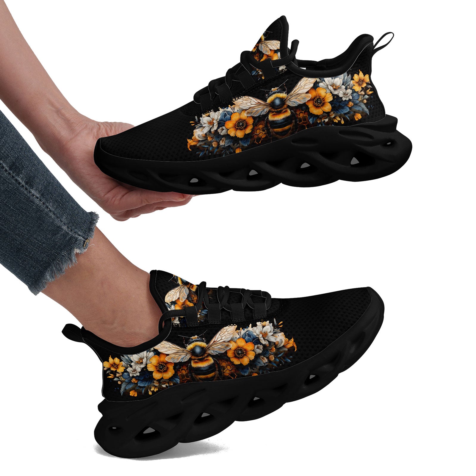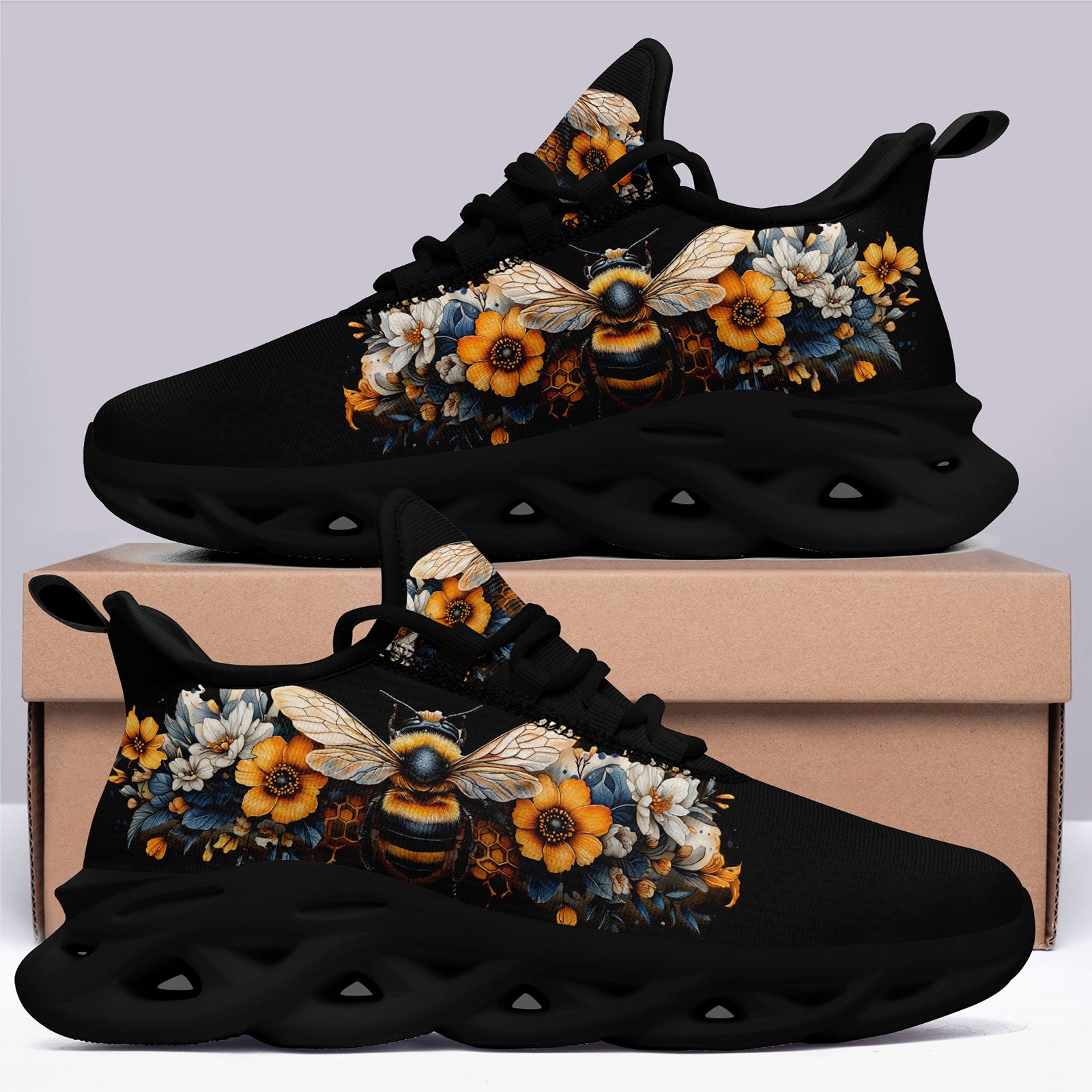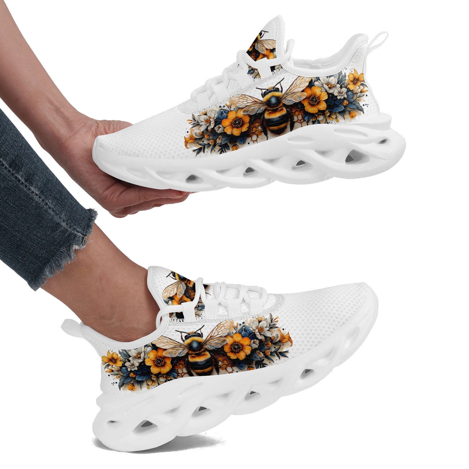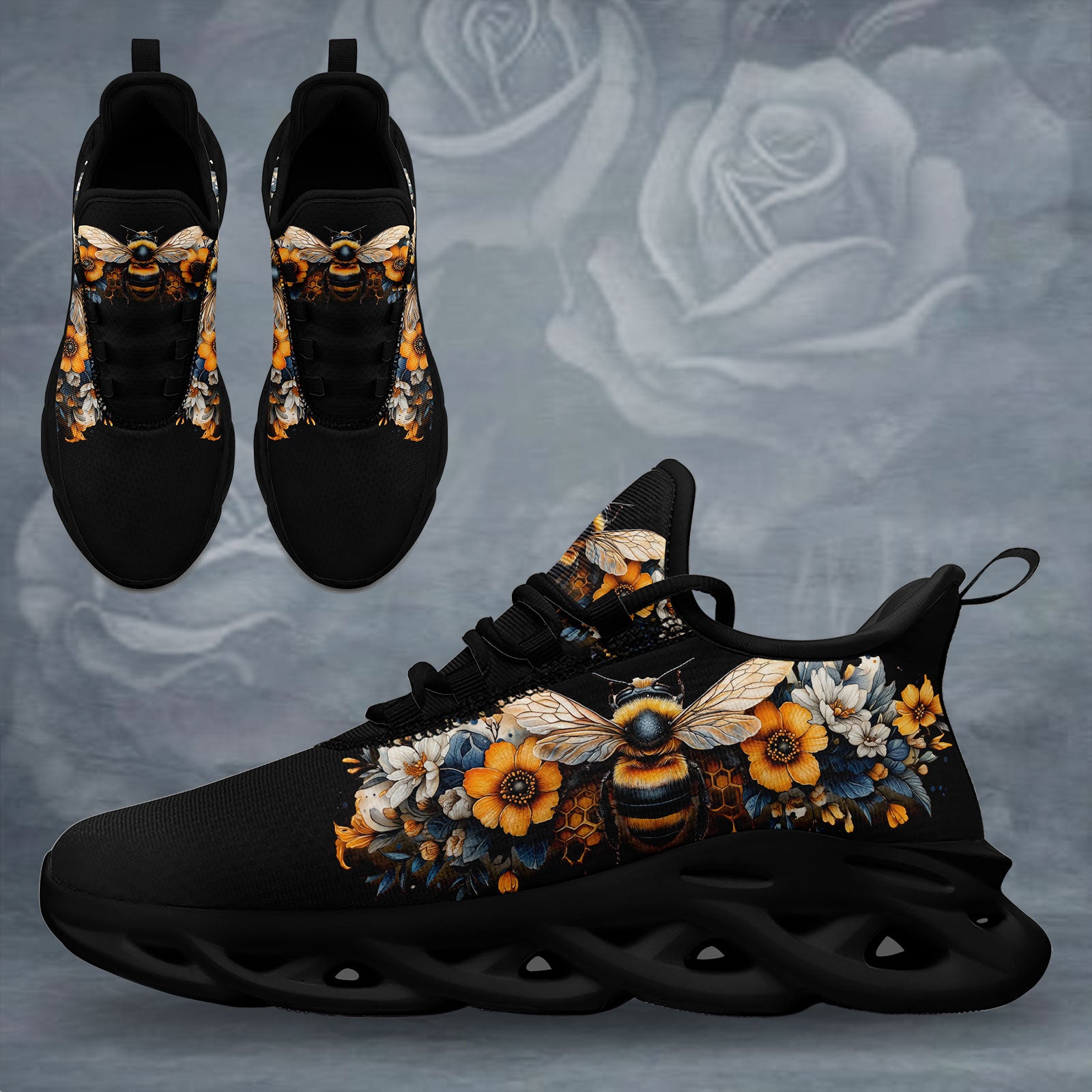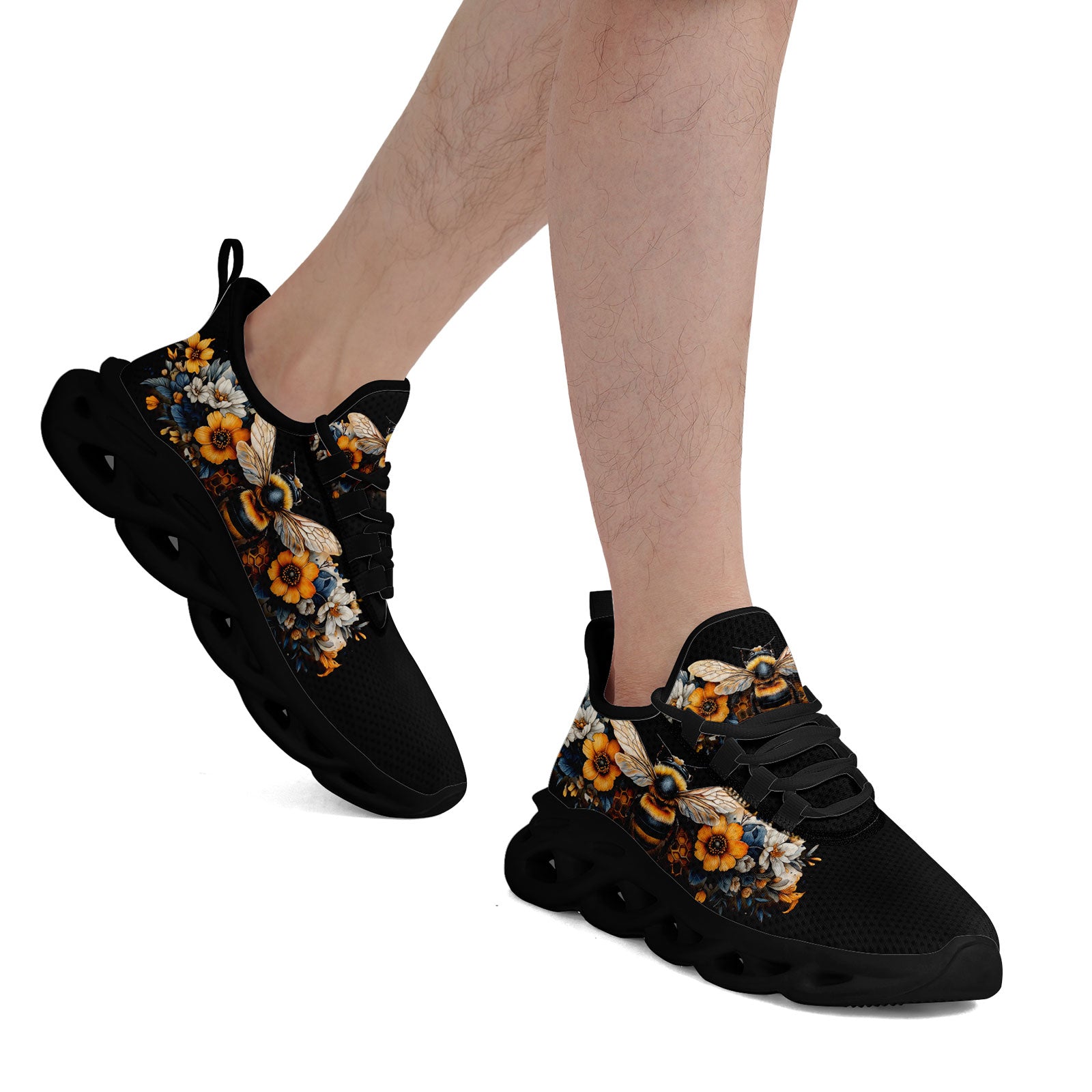 Floral Bee Sneakers | Honeybee & Sunflower Print Shoes | FN003-25027044-4