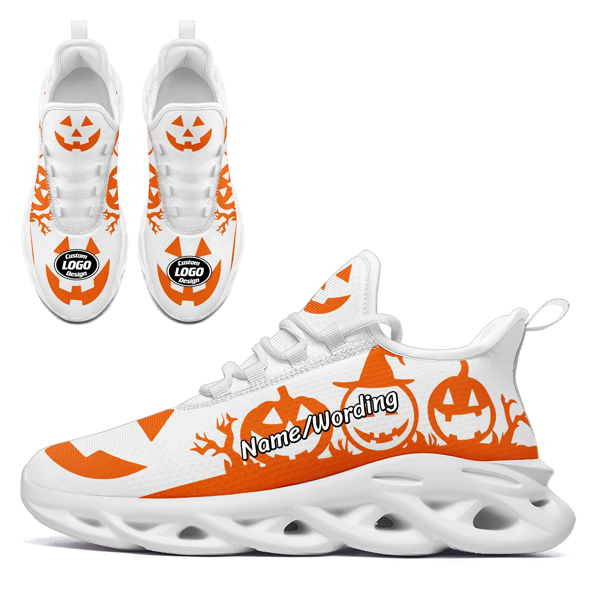 Celebrate the spooky season in style with our Personalized Pumpkin Print Sneakers!