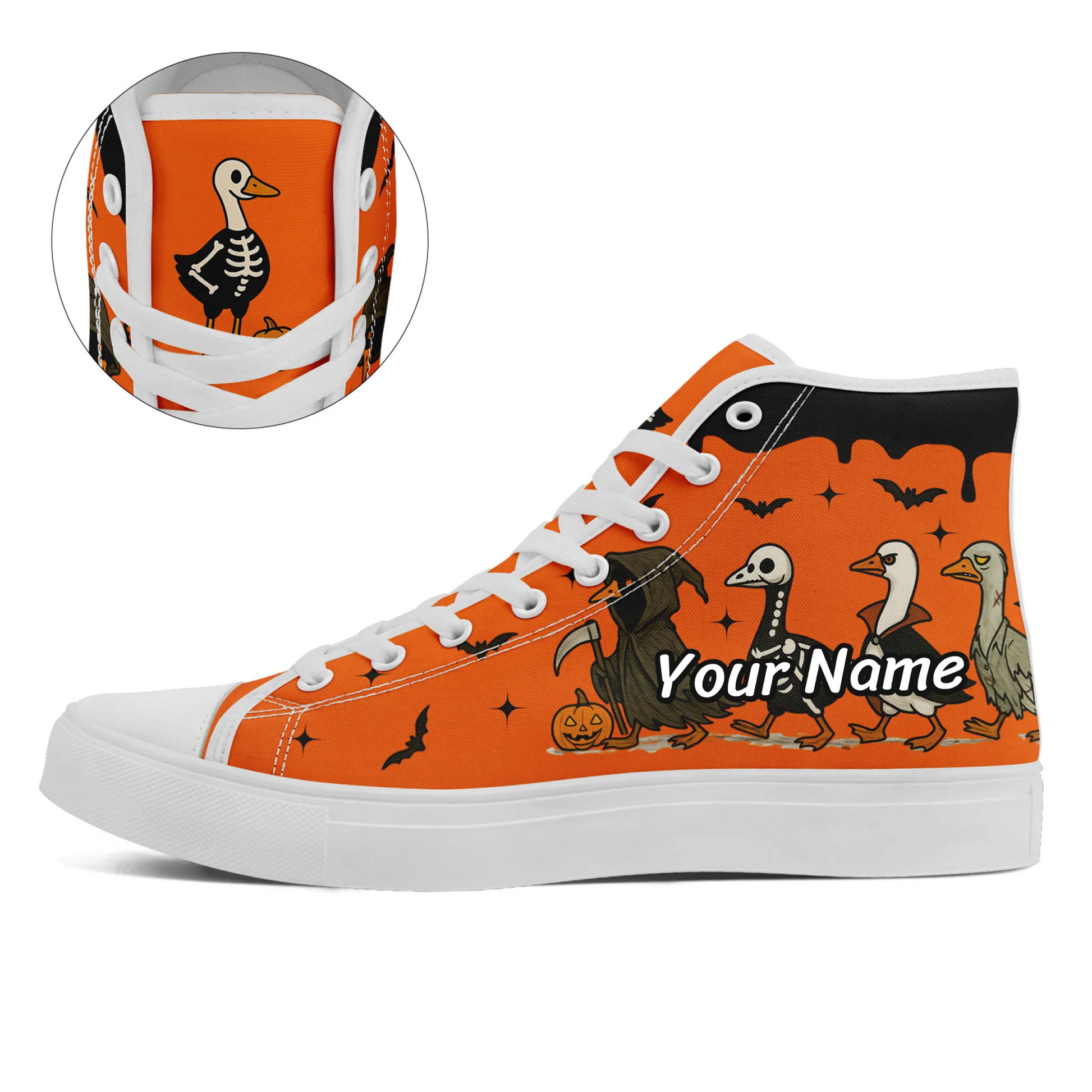 Toponepod Spooky Sneakers | Personalized Name logo | Custom Halloween Bat Pumpkin Print High Top Canvas Shoes
