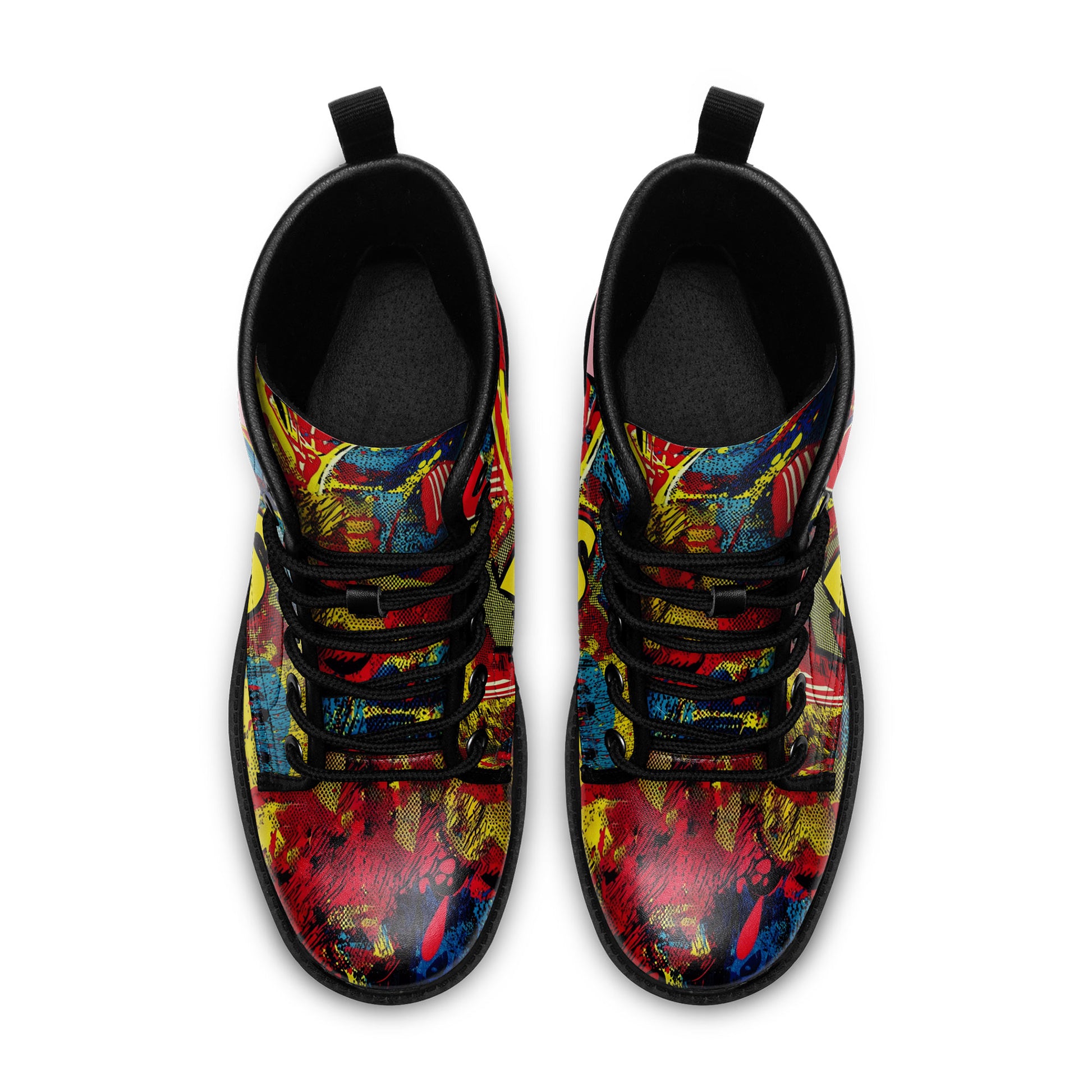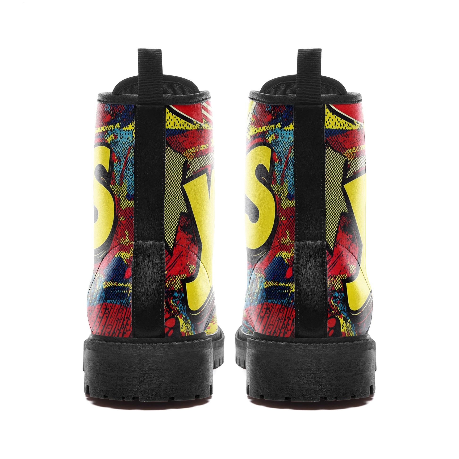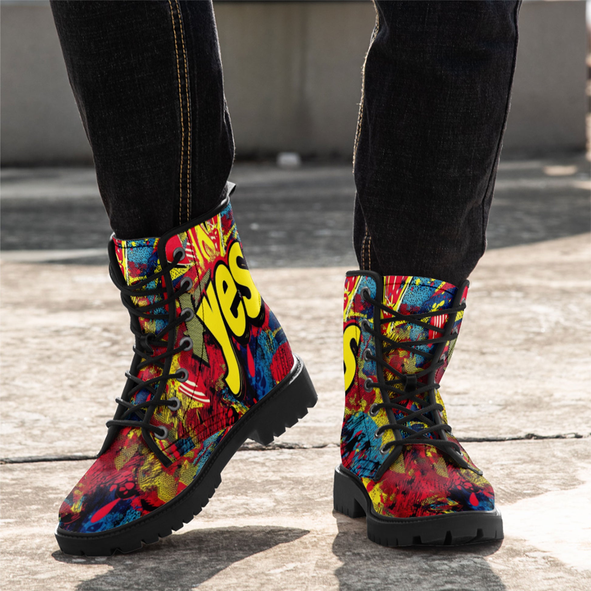 Pop Art Comic Book Style YES Graphic Combat Boots - Colorful Retro Shoes 058-6-25009075-5