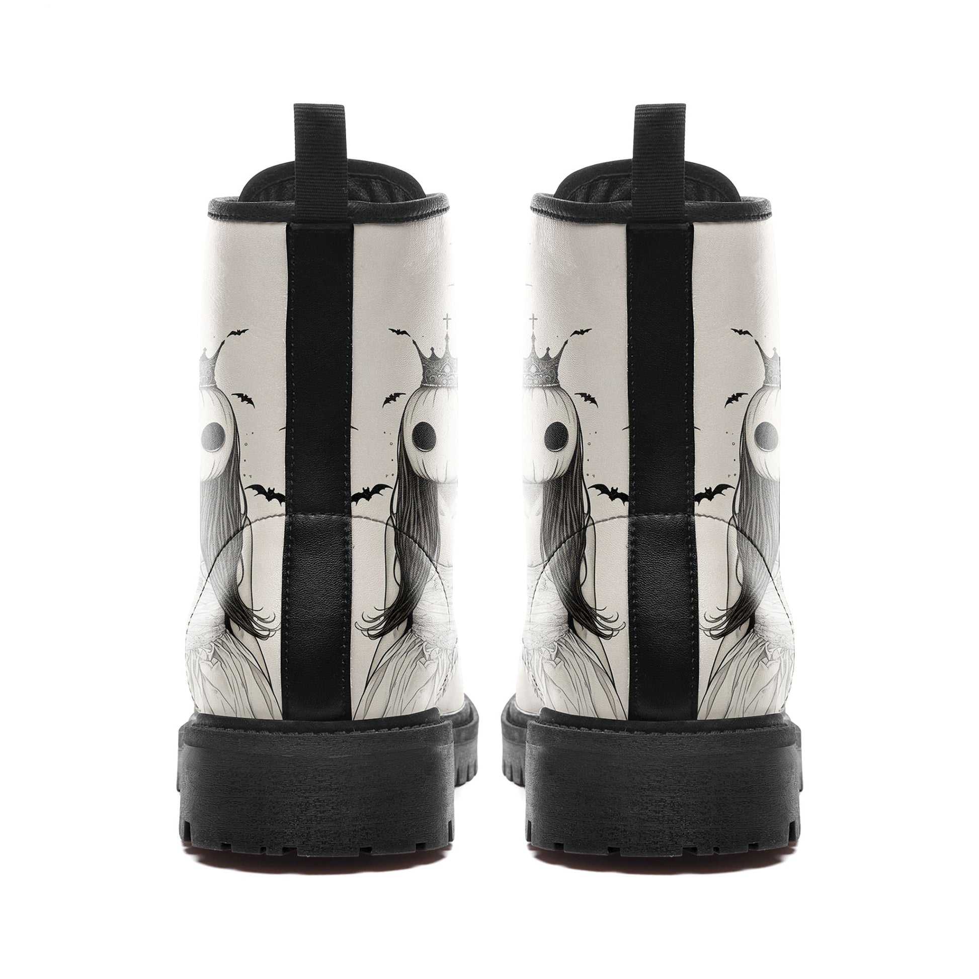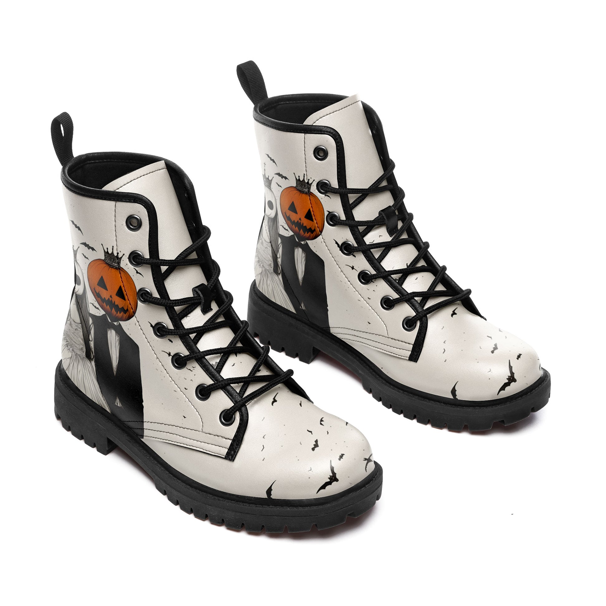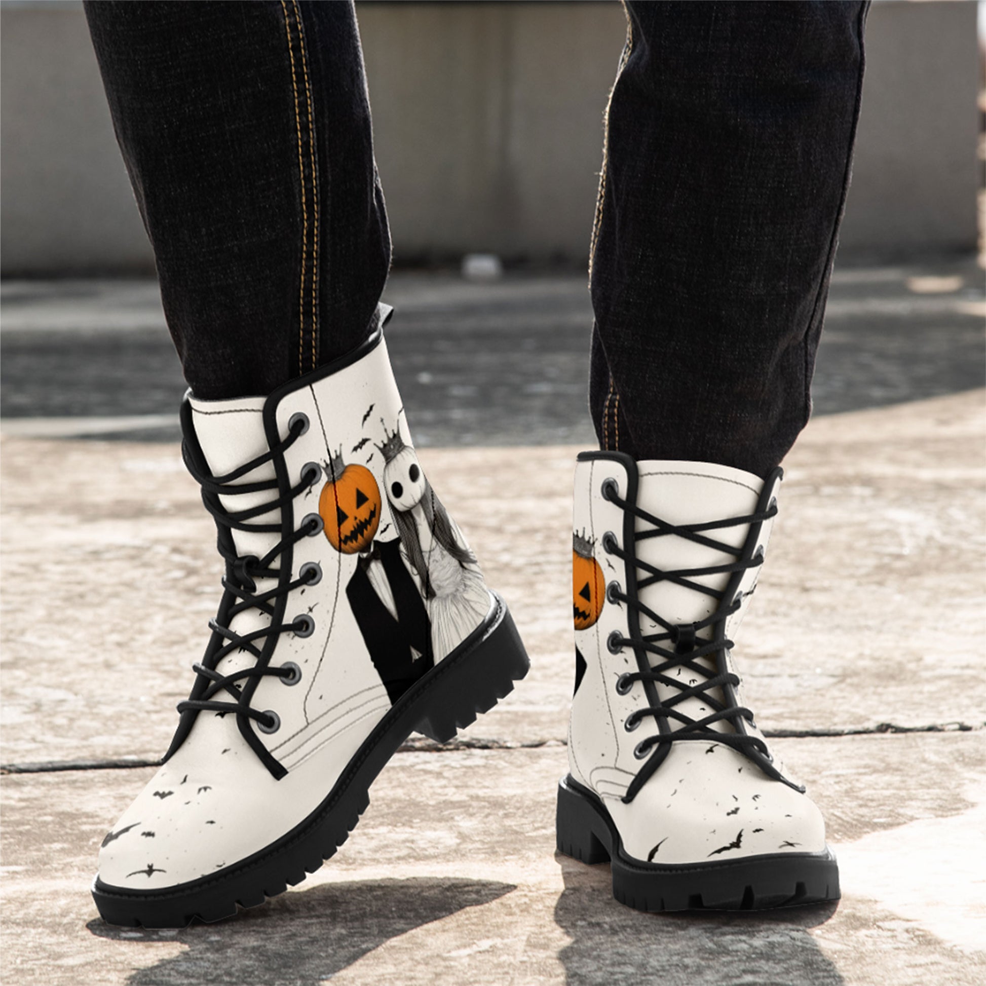 Pumpkin King & Ghost Bride Combat Boots - White Halloween Wedding Shoes 058-6-25009051-2