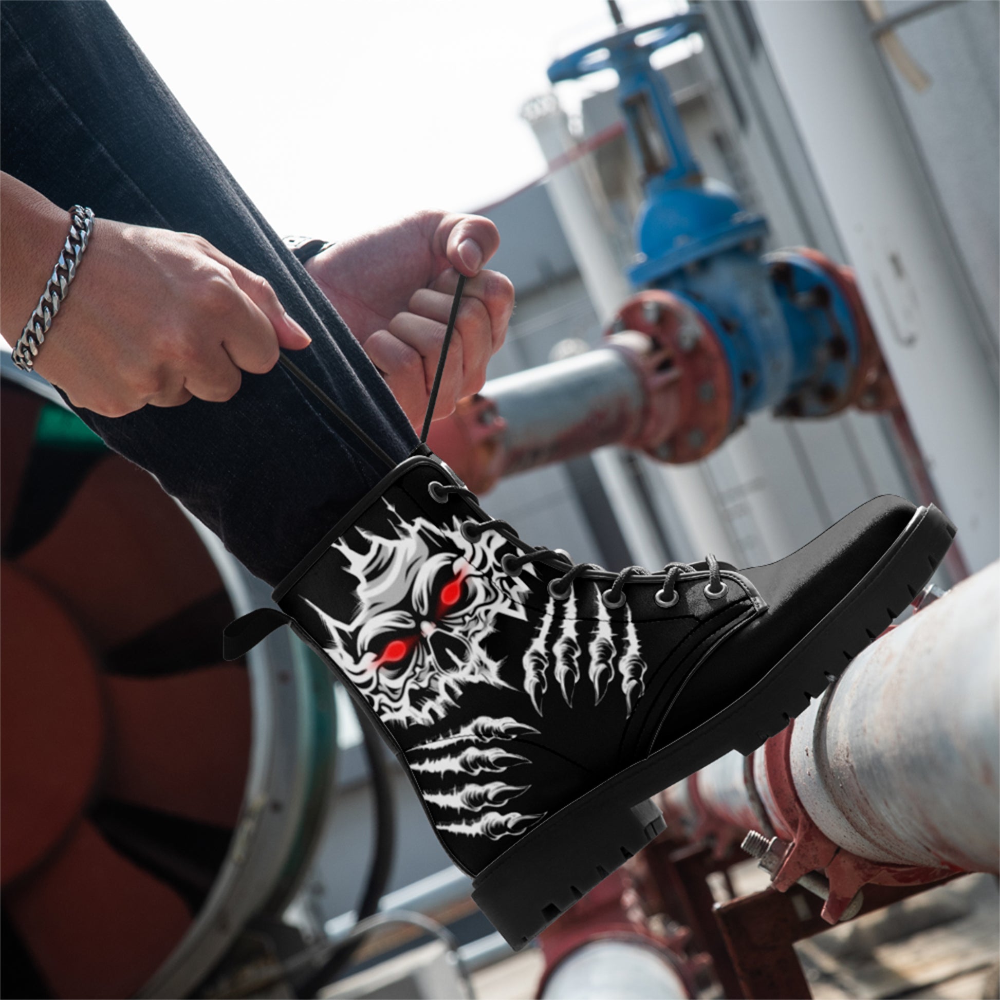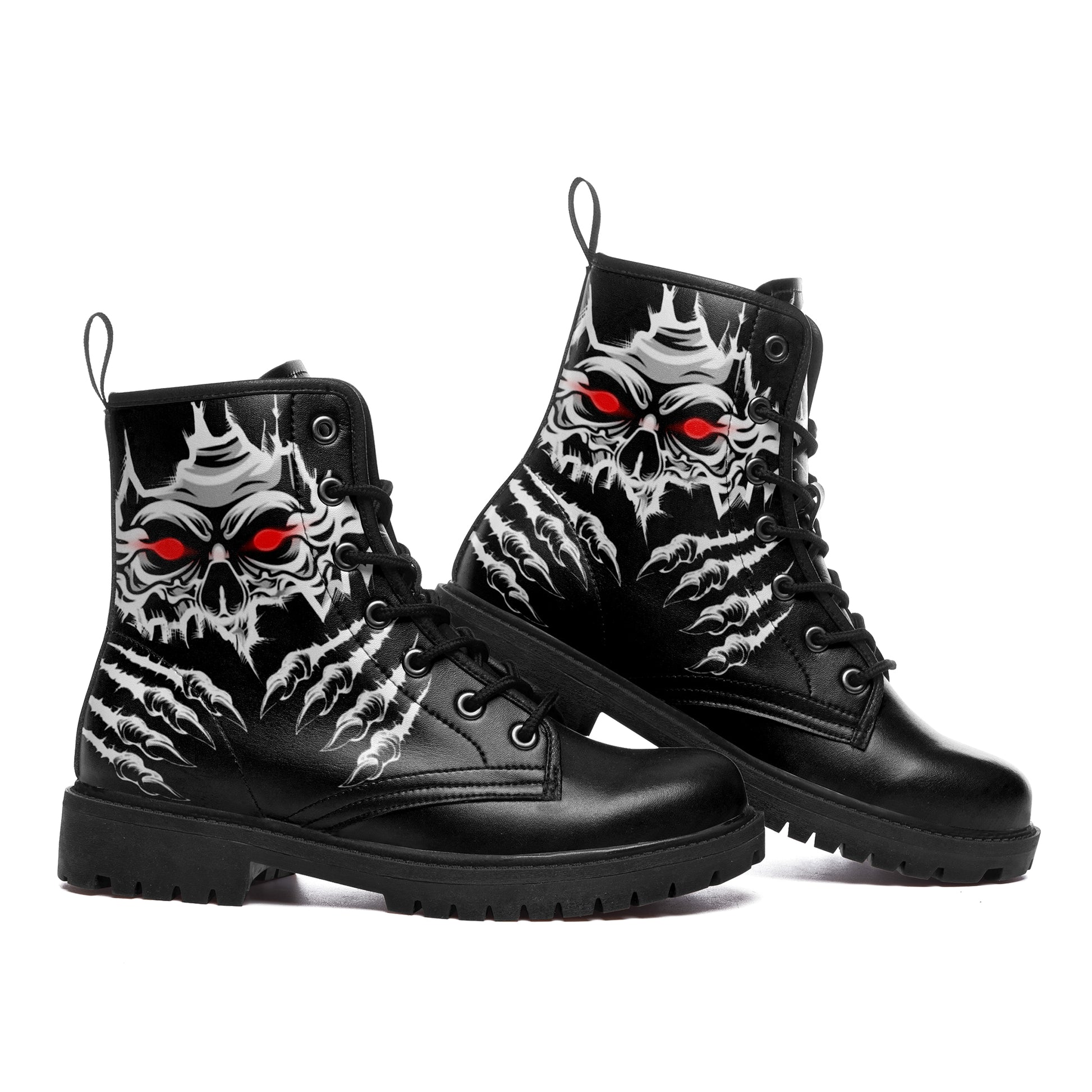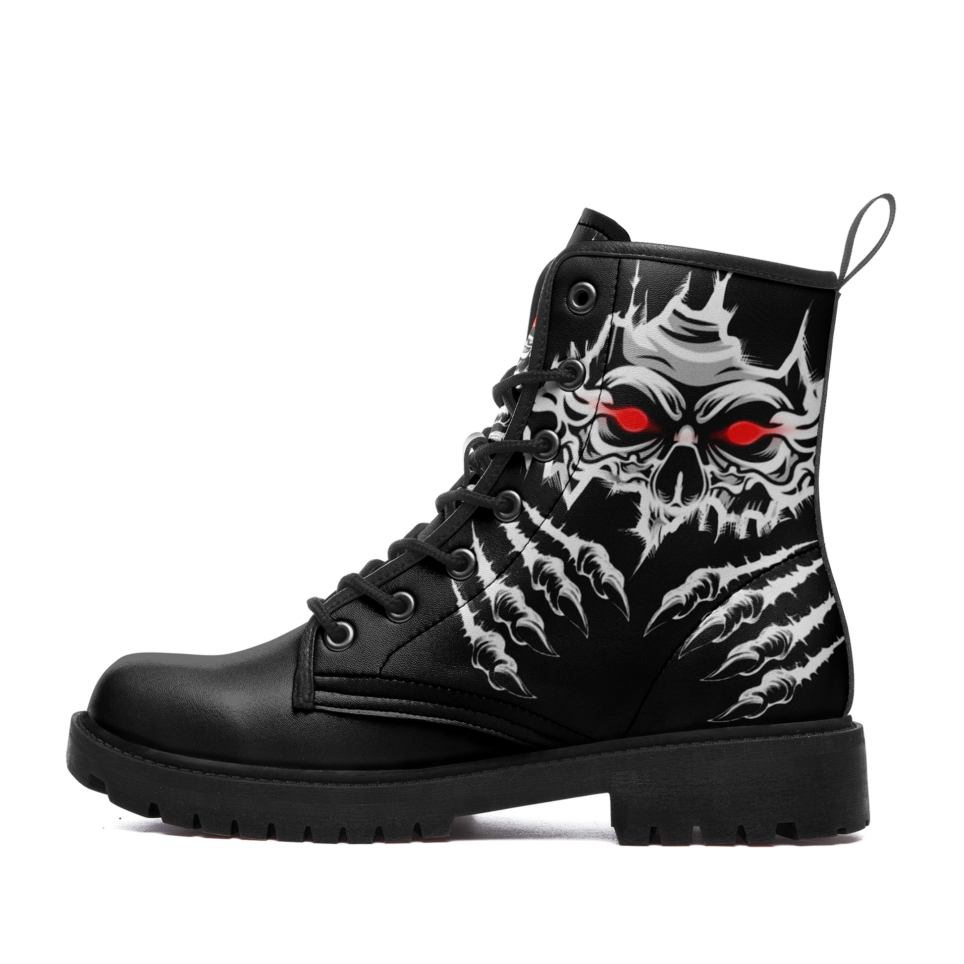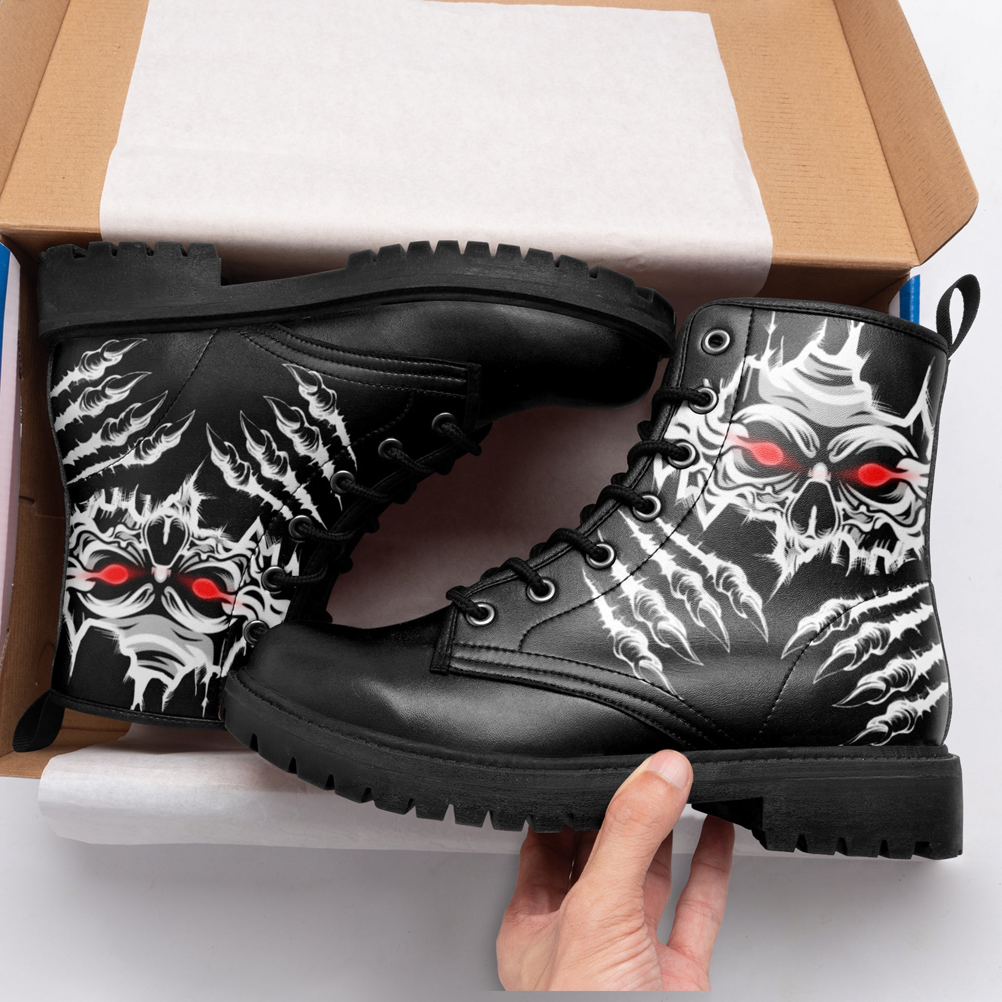 Red Eyed Werewolf & Skeletal Claws Combat Boots - Ripped Metal Style BOOTS-24027001