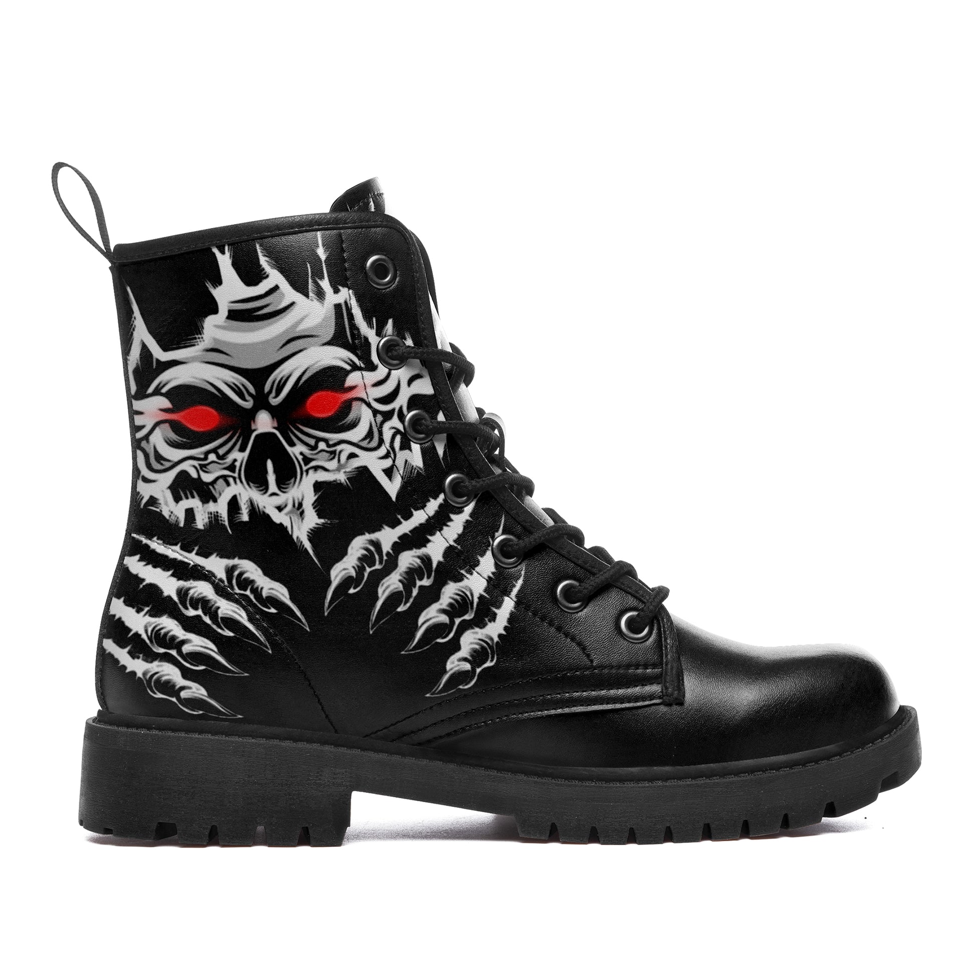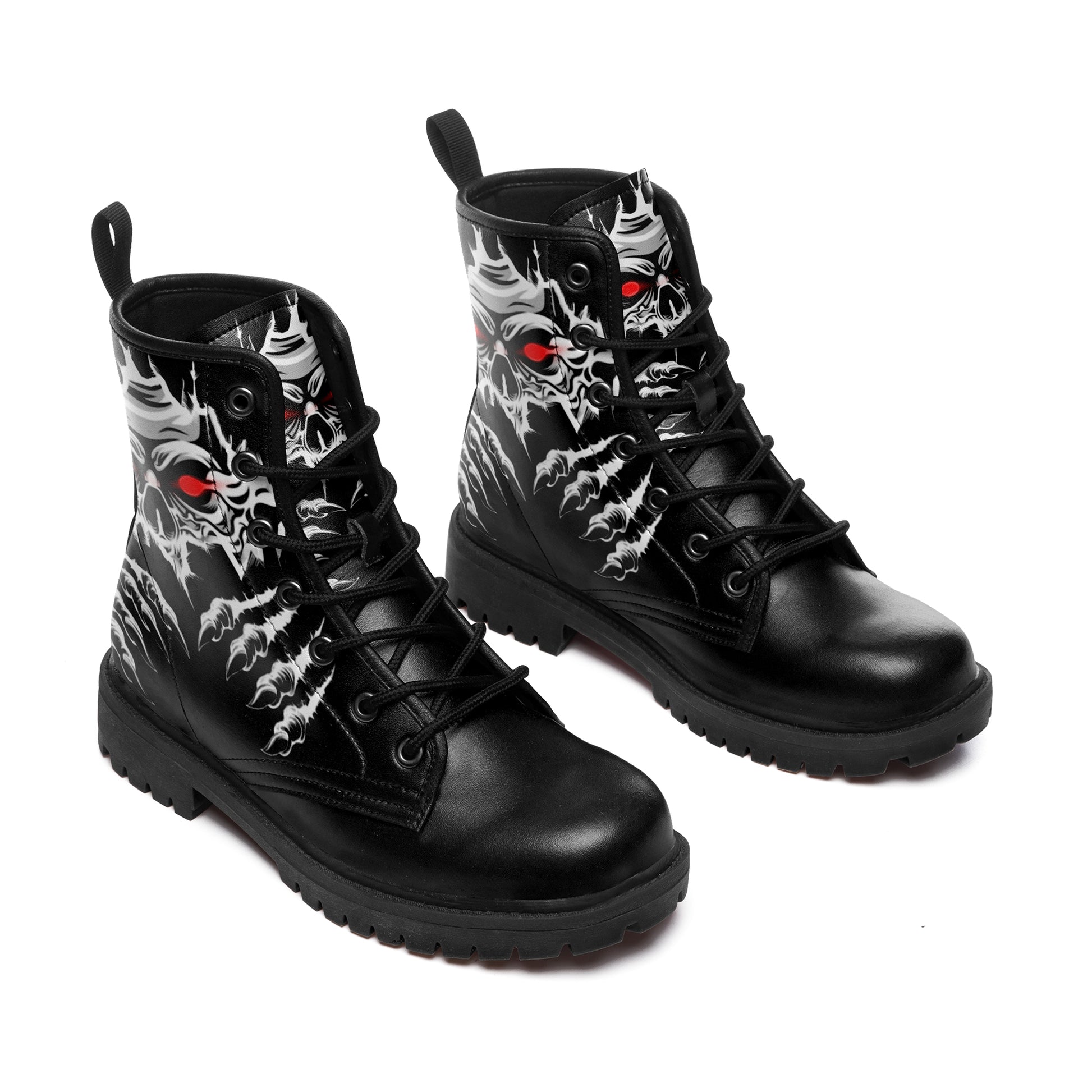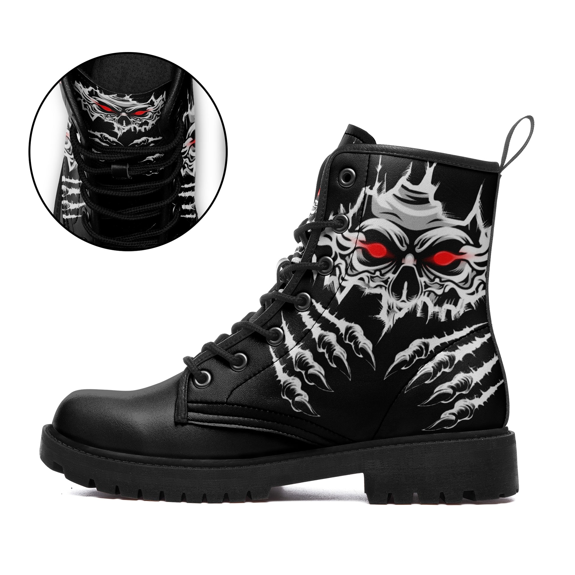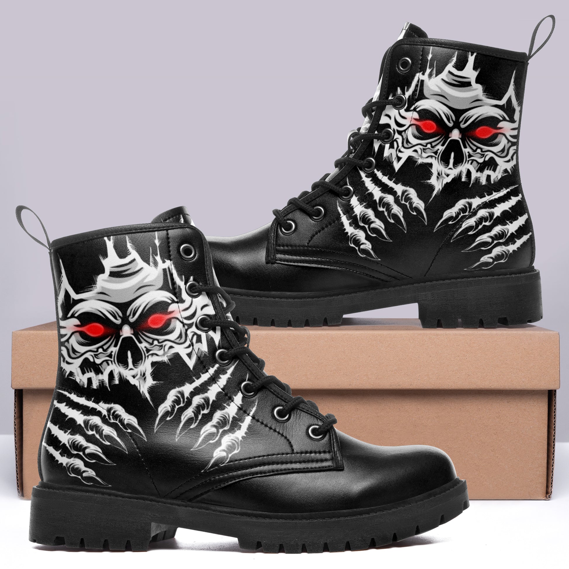 Red Eyed Werewolf & Skeletal Claws Combat Boots - Ripped Metal Style BOOTS-24027001