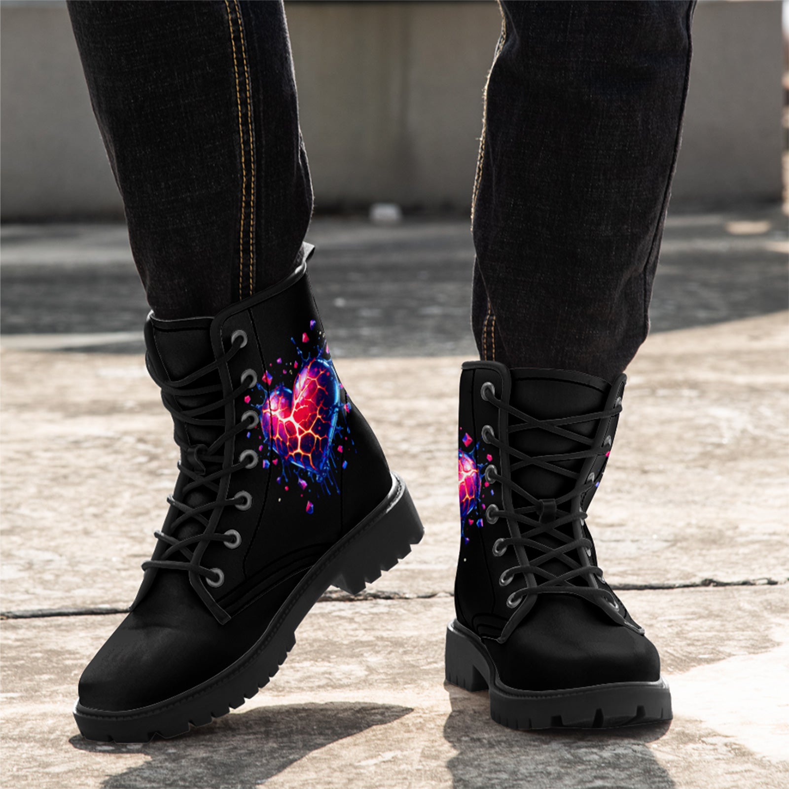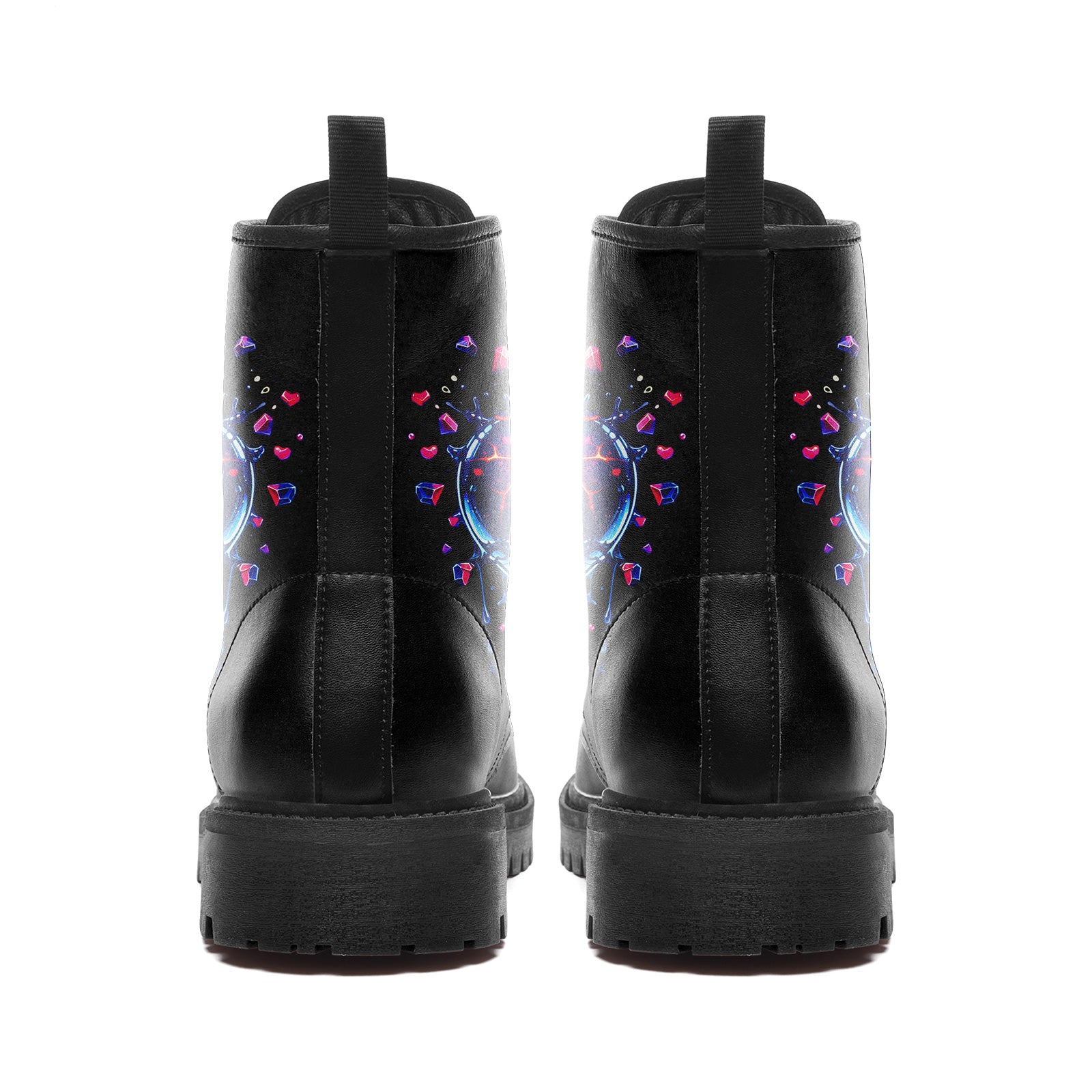 Shattered Crystal Heart Combat Boots - Abstract Exploding Love Shoes BOOTS-24023007-8