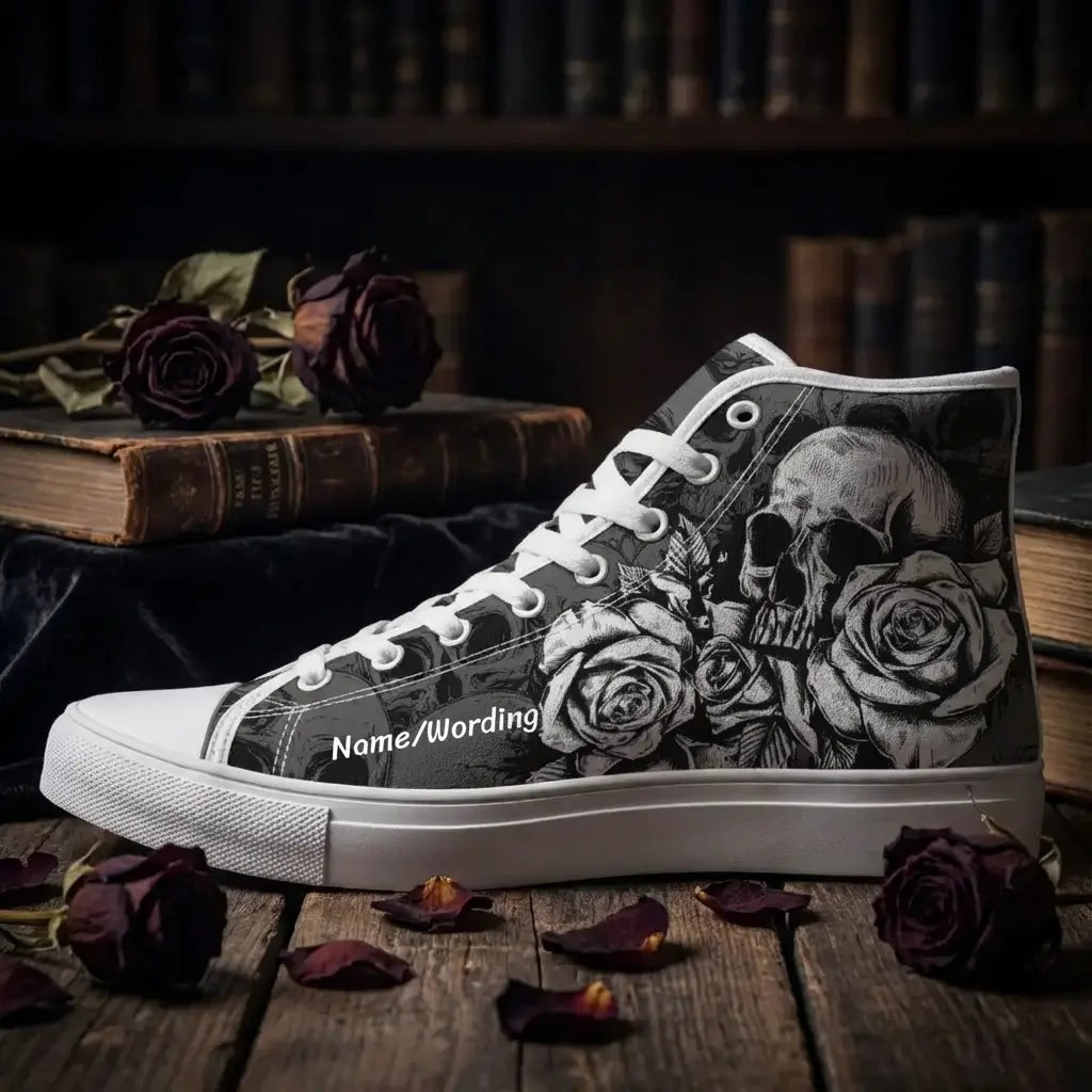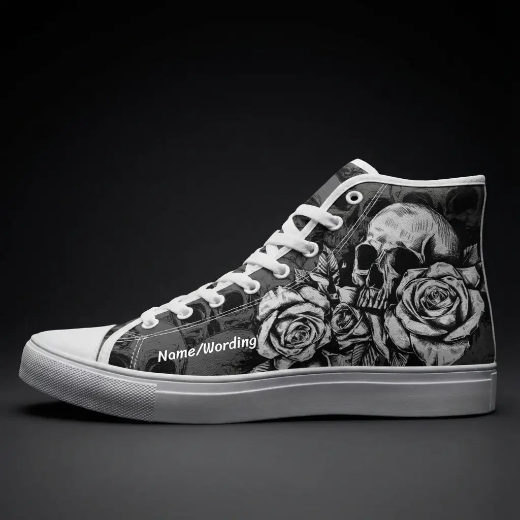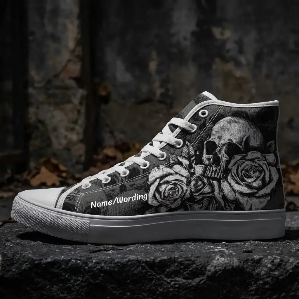 Unleash your bold style with Personalized Skull Sneakers, the ultimate footwear for fans of edgy, gothic fashion. These custom canvas high-top shoes showcase intricate skeleton designs that exude attitude and creativity. Perfect for men and women alike, they add a striking touch to casual outfits or themed occasions. Built for comfort and durability, these high-tops feature breathable canvas material and a sturdy rubber sole, making them perfect for everyday wear. Whether you're making a fashion statement or searching for a unique gift, these customizable sneakers are sure to impress. Key Features: Custom Skull Design: Add a personal touch with unique skeleton-themed artwork. Durable Canvas: High-quality material for lasting wear and bold style. Unisex Fit: Designed for both men and women in a range of sizes. Versatile Wear: Perfect for casual outings, events, or gothic-inspired ensembles. Comfortable Build: Lightweight with a supportive sole for all-day wear. Step into a world of bold fashion with these personalized skull sneakers—perfect for showcasing individuality with every step!