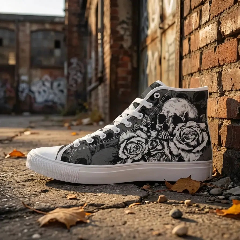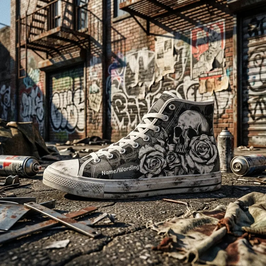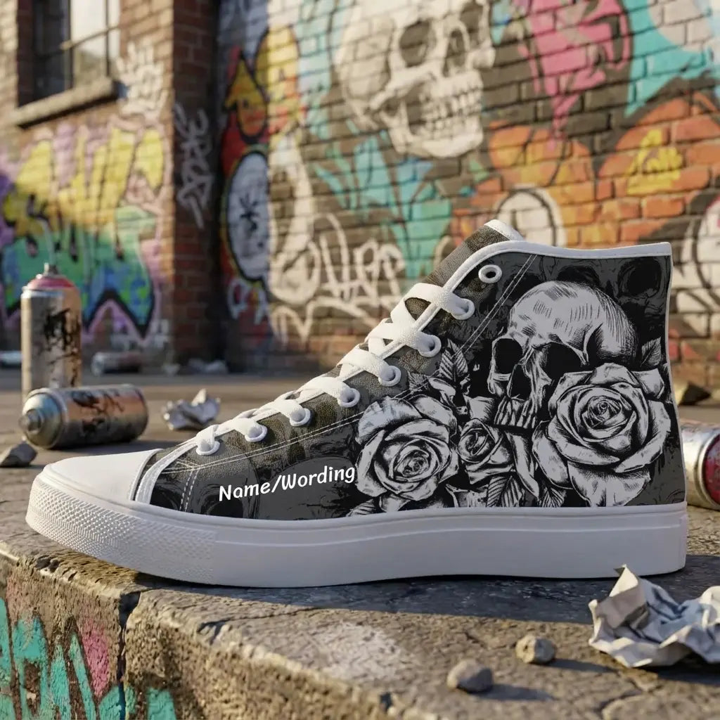 Unleash your bold style with Personalized Skull Sneakers, the ultimate footwear for fans of edgy, gothic fashion. These custom canvas high-top shoes showcase intricate skeleton designs that exude attitude and creativity. Perfect for men and women alike, they add a striking touch to casual outfits or themed occasions. Built for comfort and durability, these high-tops feature breathable canvas material and a sturdy rubber sole, making them perfect for everyday wear. Whether you're making a fashion statement or searching for a unique gift, these customizable sneakers are sure to impress. Key Features: Custom Skull Design: Add a personal touch with unique skeleton-themed artwork. Durable Canvas: High-quality material for lasting wear and bold style. Unisex Fit: Designed for both men and women in a range of sizes. Versatile Wear: Perfect for casual outings, events, or gothic-inspired ensembles. Comfortable Build: Lightweight with a supportive sole for all-day wear. Step into a world of bold fashion with these personalized skull sneakers—perfect for showcasing individuality with every step!