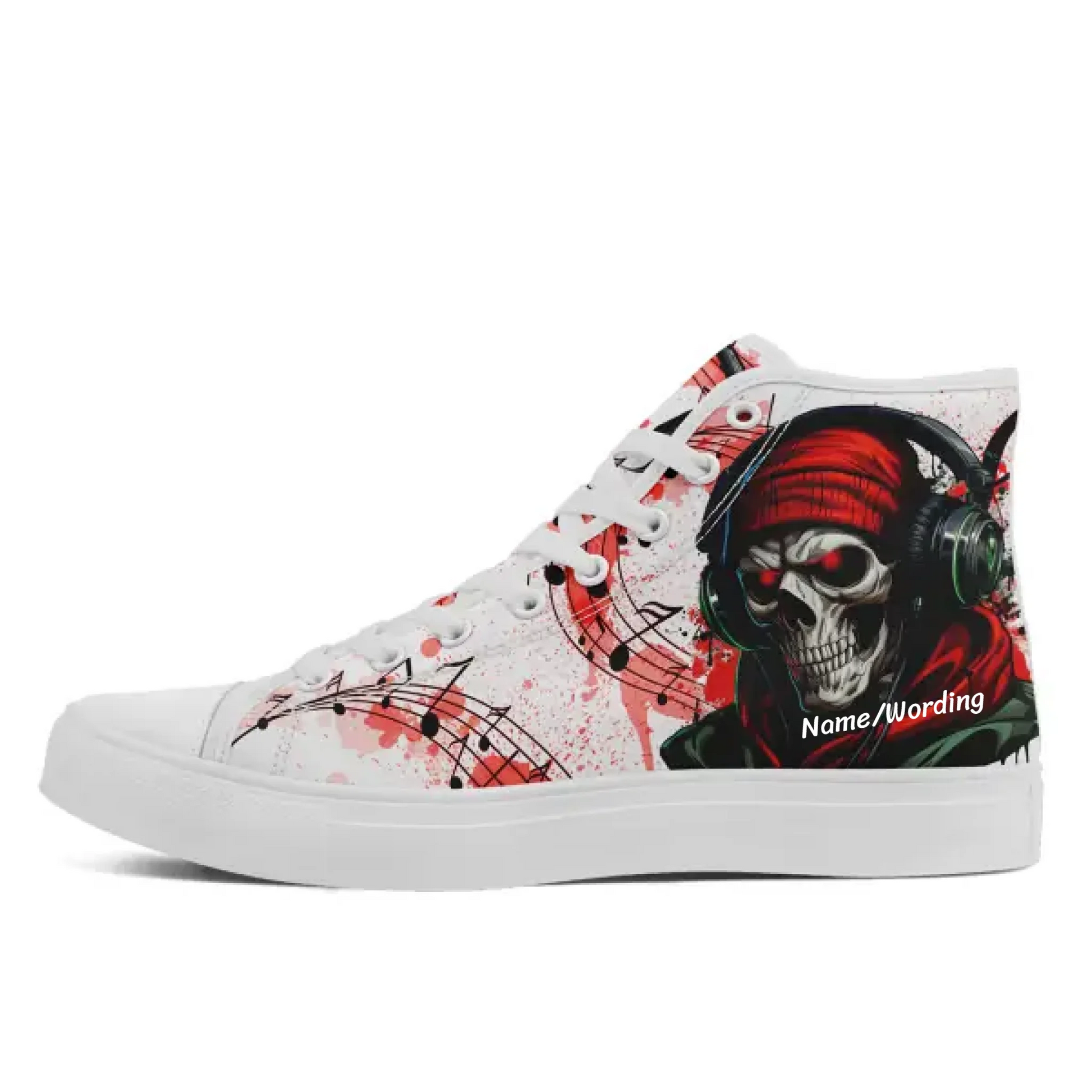 Unleash your bold style with Personalized Skull Sneakers, the ultimate footwear for fans of edgy, gothic fashion. These custom canvas high-top shoes showcase intricate skeleton designs that exude attitude and creativity. Perfect for men and women alike, they add a striking touch to casual outfits or themed occasions. Built for comfort and durability, these high-tops feature breathable canvas material and a sturdy rubber sole, making them perfect for everyday wear. Whether you're making a fashion statement or searching for a unique gift, these customizable sneakers are sure to impress. Key Features: Custom Skull Design: Add a personal touch with unique skeleton-themed artwork. Durable Canvas: High-quality material for lasting wear and bold style. Unisex Fit: Designed for both men and women in a range of sizes. Versatile Wear: Perfect for casual outings, events, or gothic-inspired ensembles. Comfortable Build: Lightweight with a supportive sole for all-day wear. Step into a world of bold fashion with these personalized skull sneakers—perfect for showcasing individuality with every step!