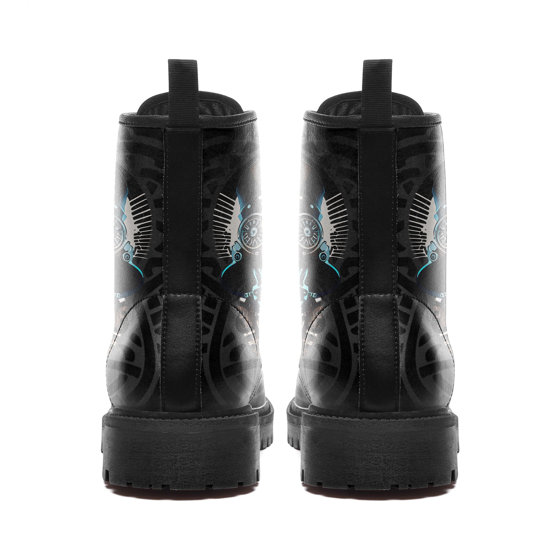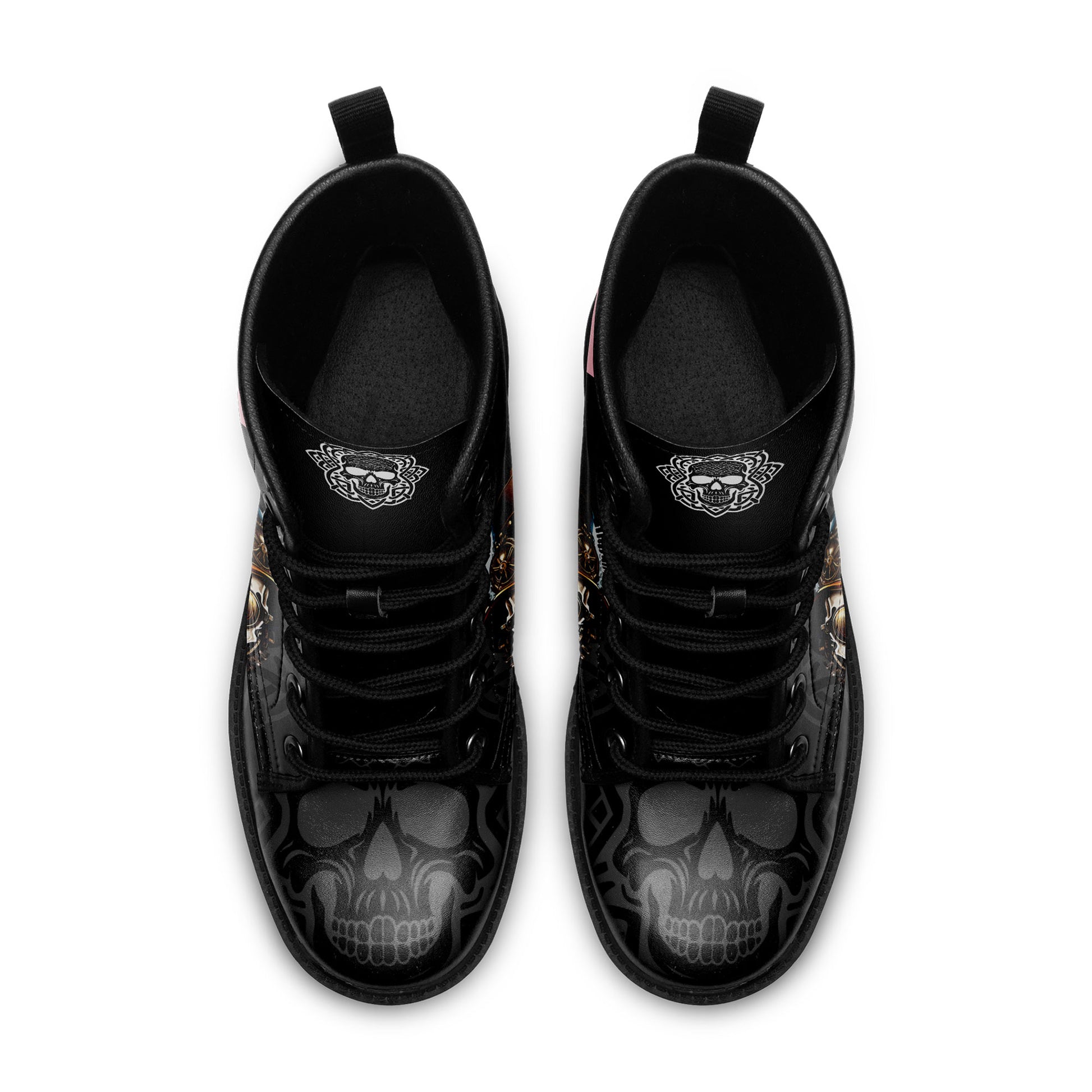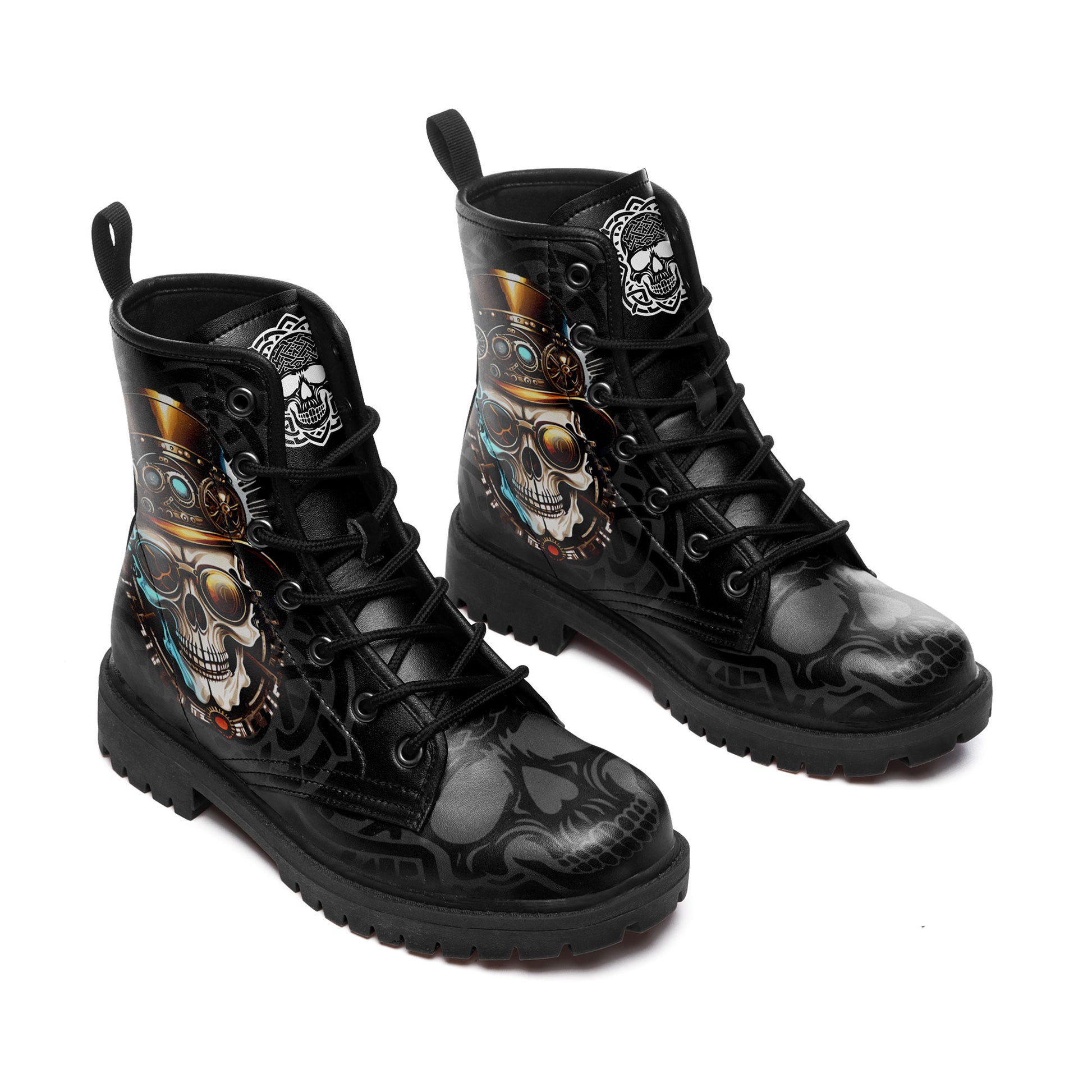 Steampunk Skull & Goggles Combat Boots - Industrial Gear Top Hat Footwear BOOTS-24025002-7
