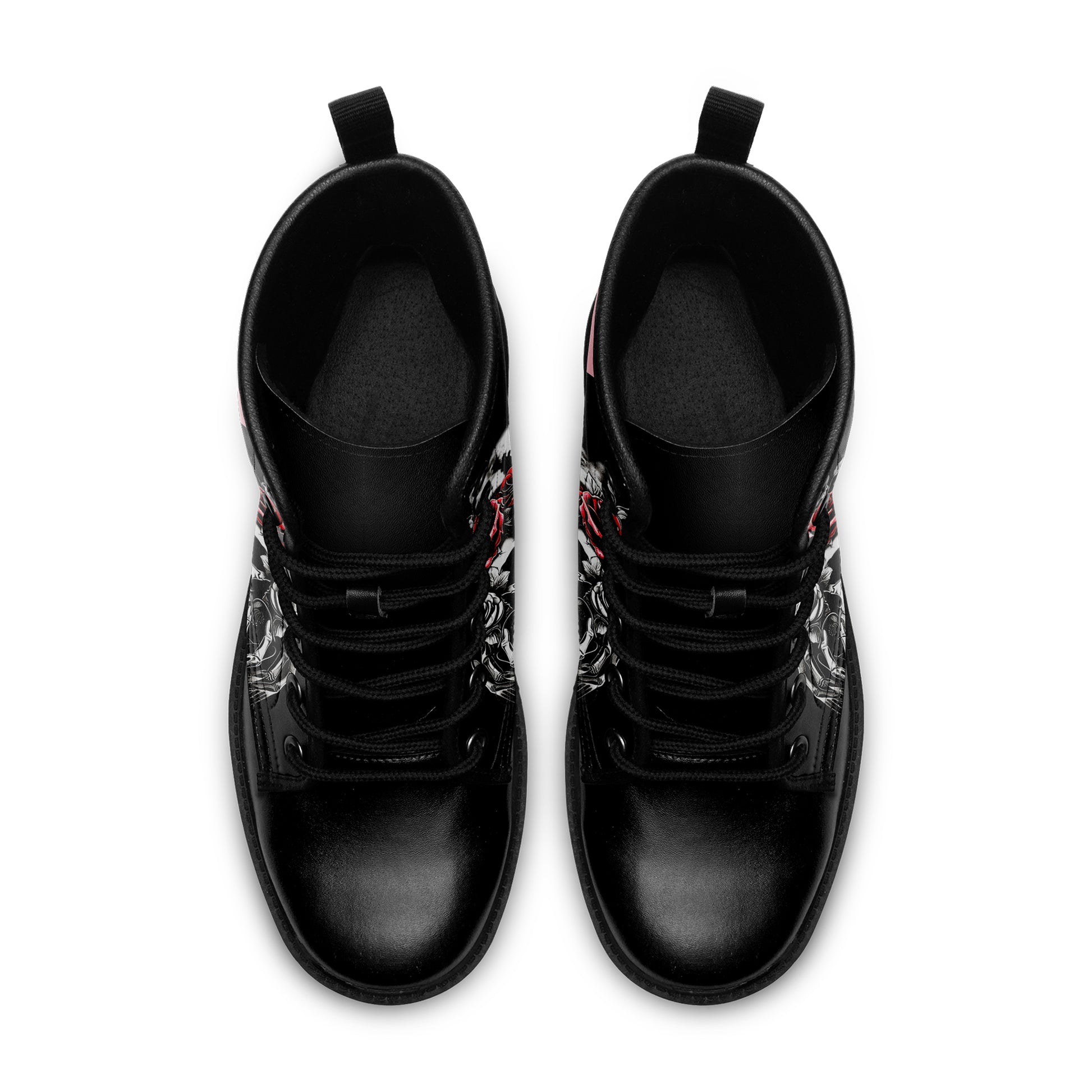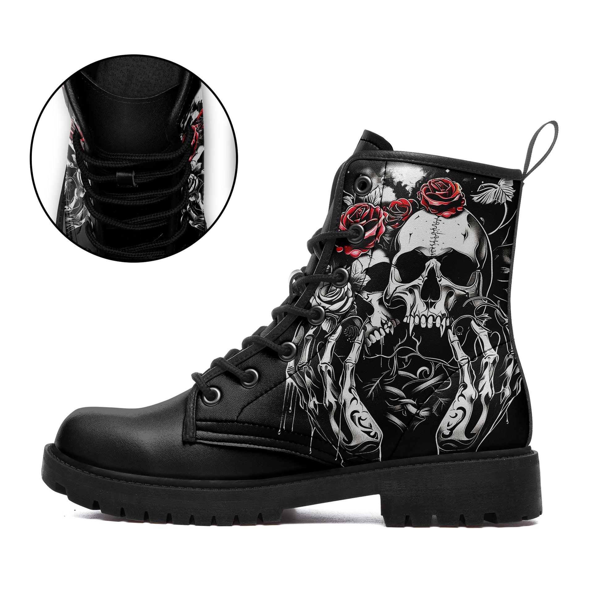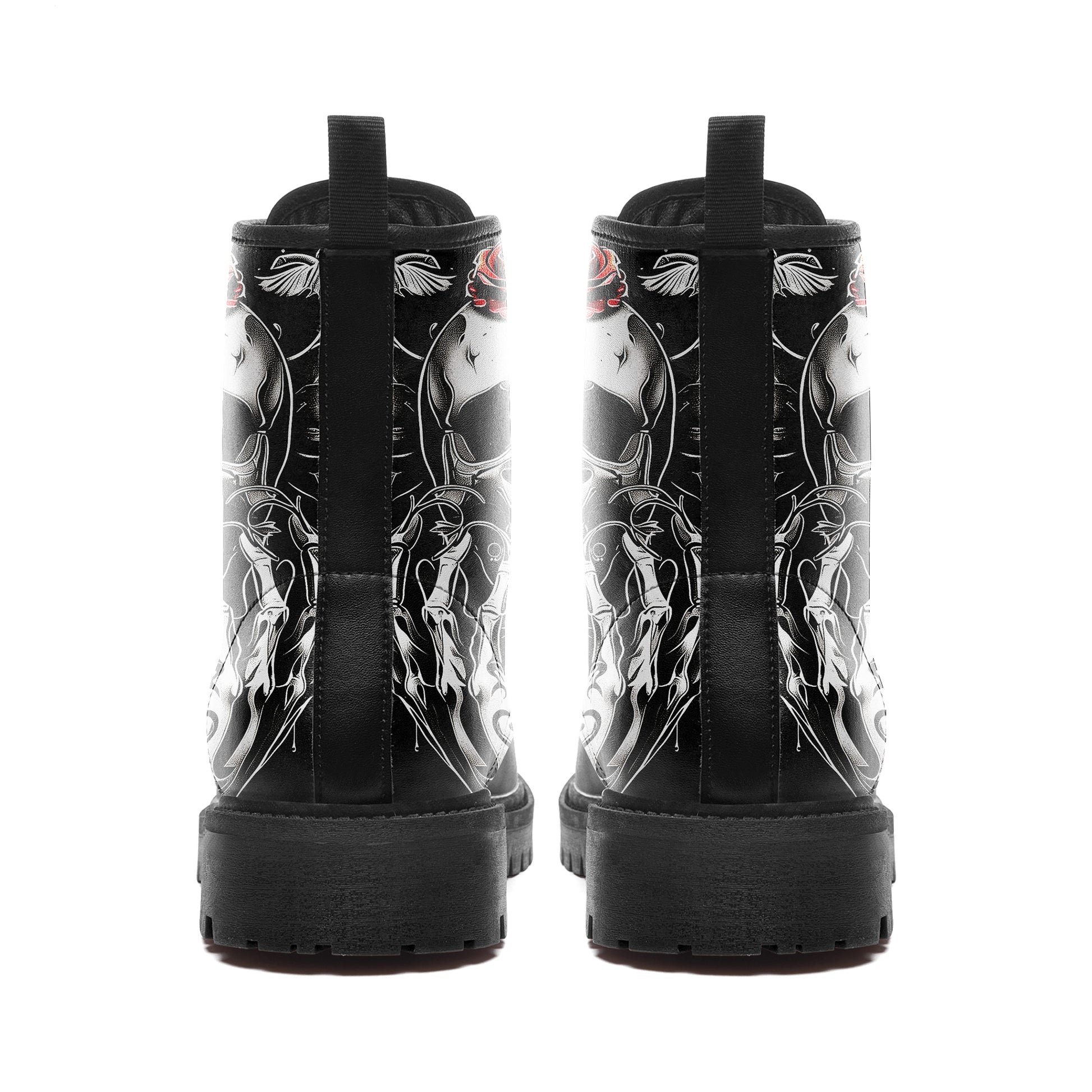 Twin Skulls & Red Roses Tattoo Combat Boots - Skeleton Hand Art Shoes BOOTS-24023001-4