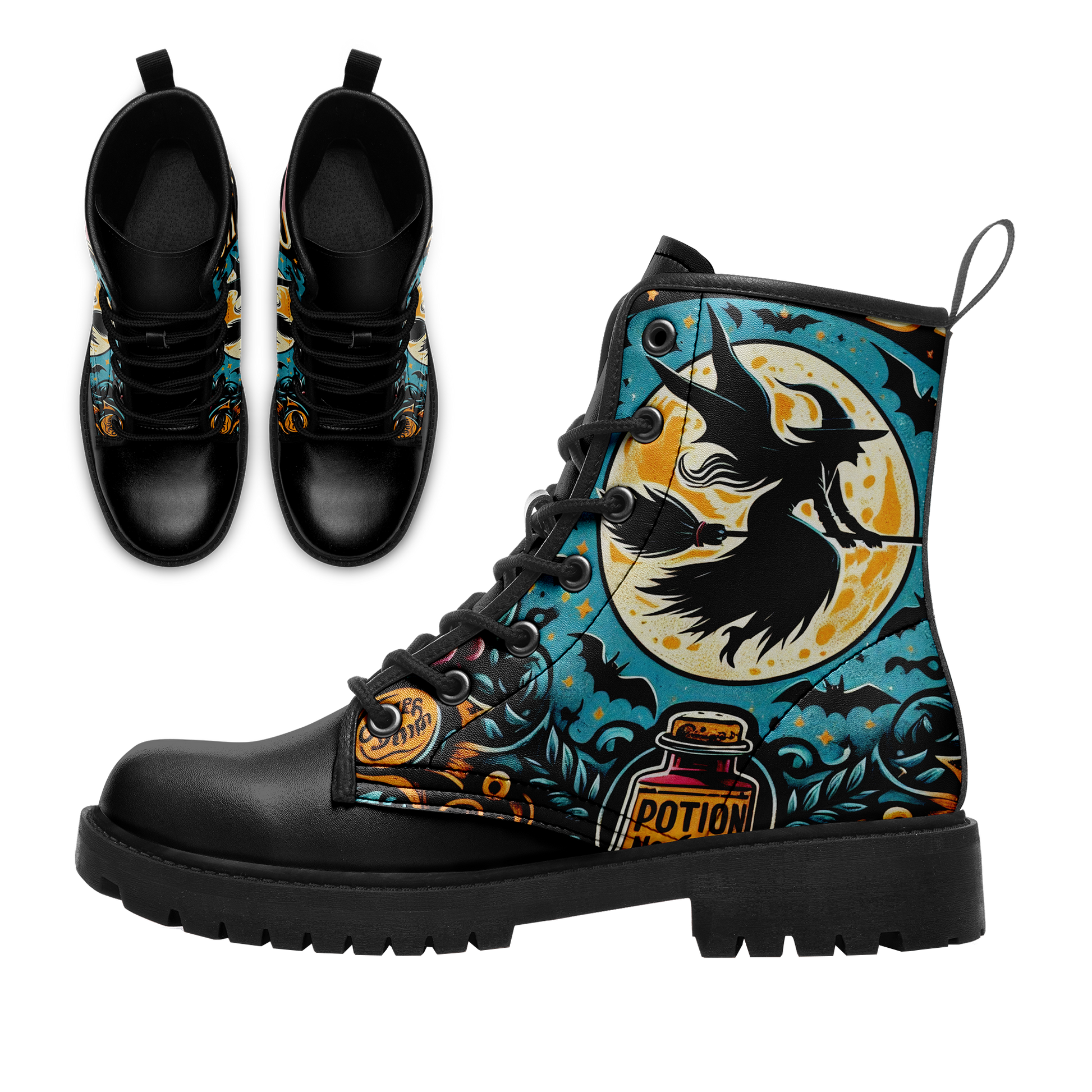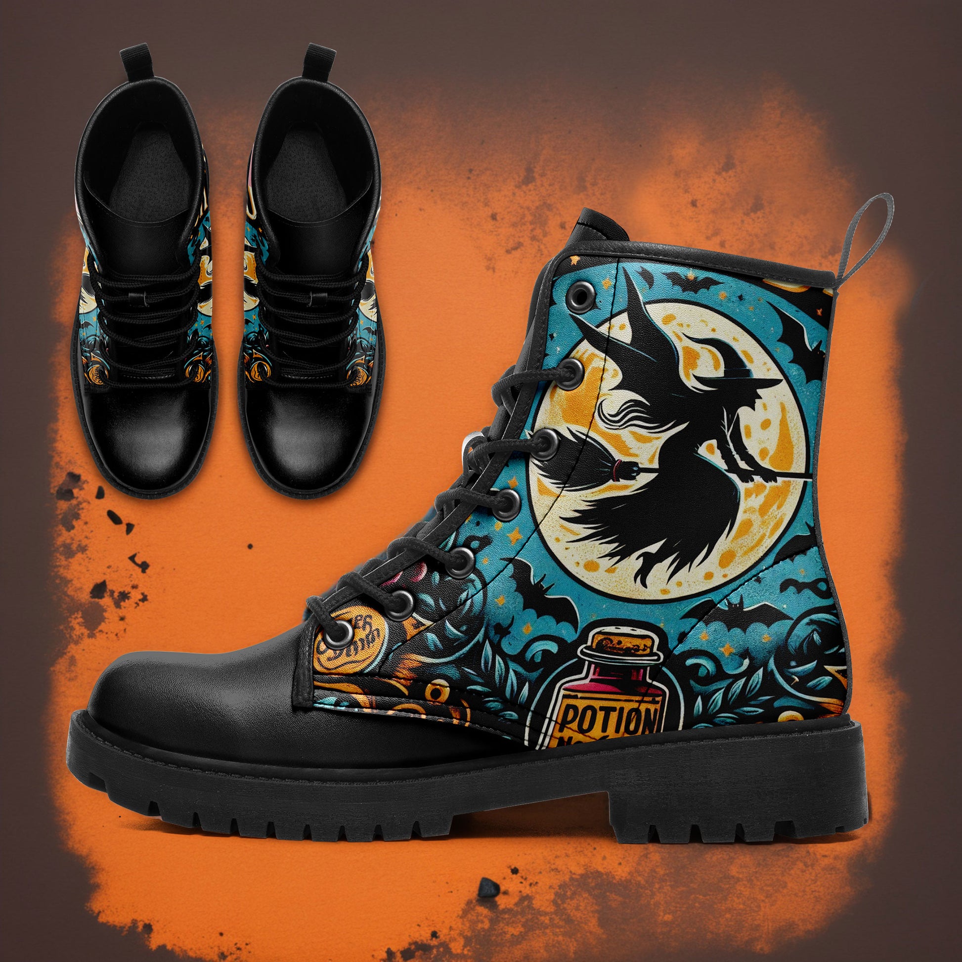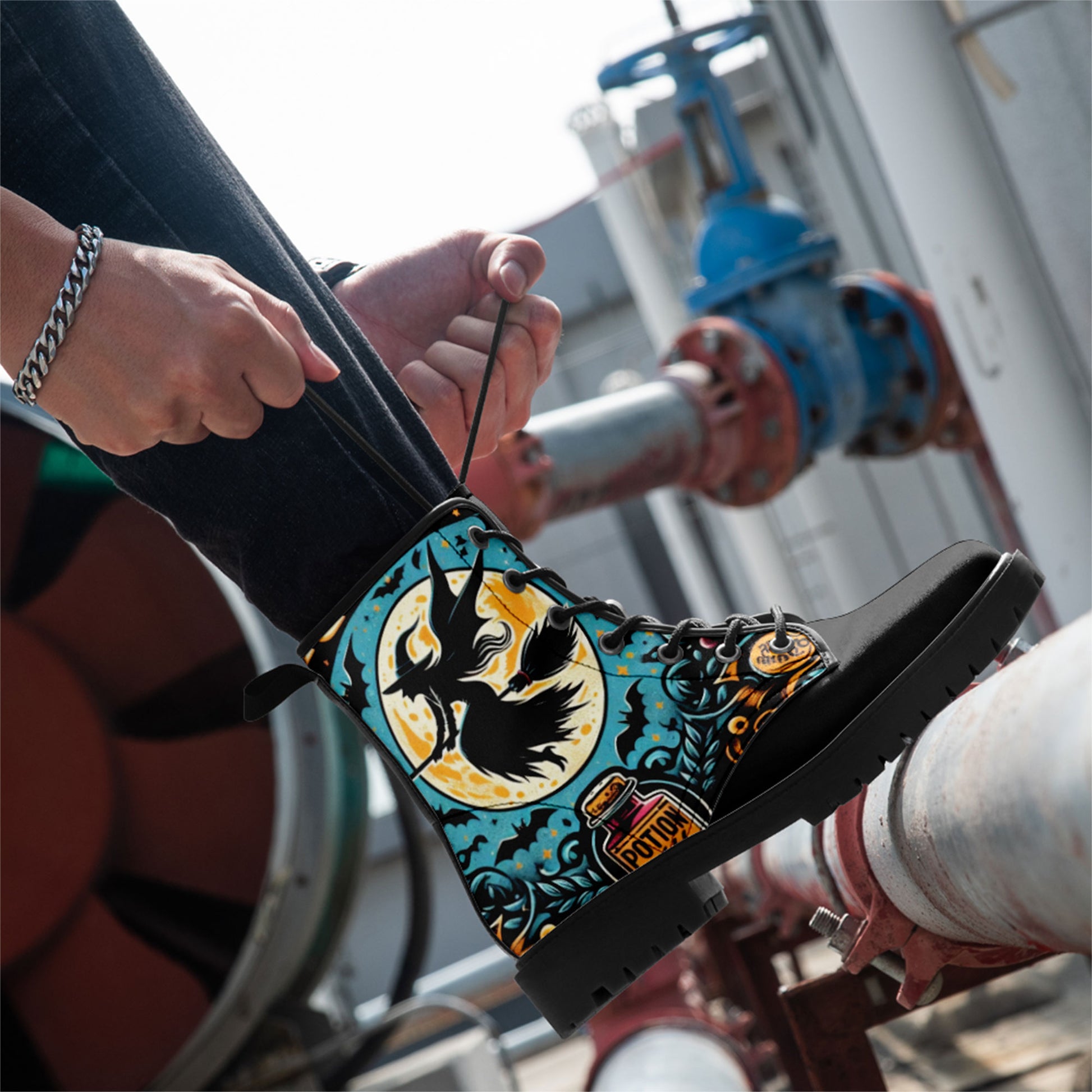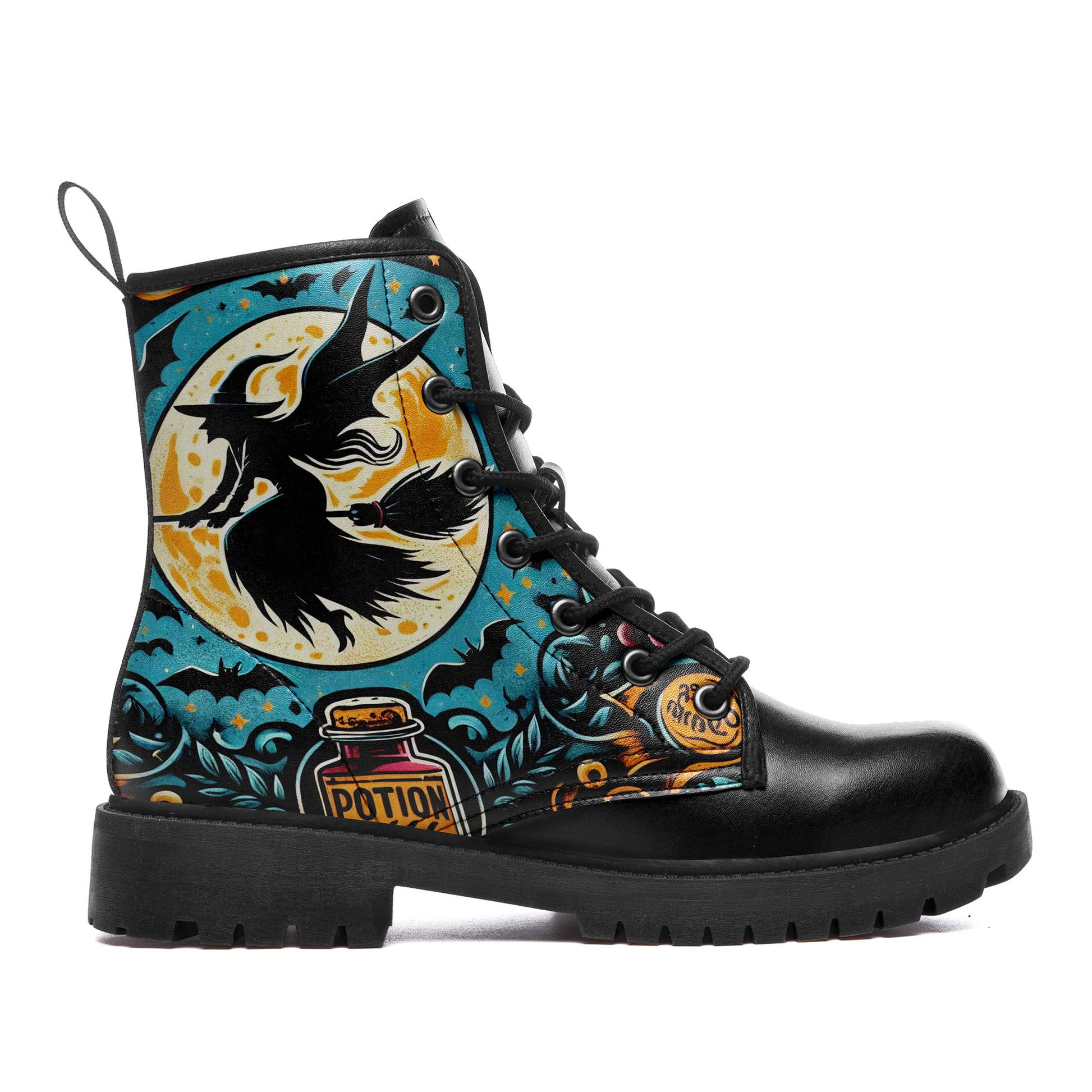 Step into a world of sorcery and spells with these **Witch & Potion Magic Combat Boots**. Perfect for the modern witch or fantasy lover, this design moves beyond traditional Halloween colors to offer something truly enchanting.