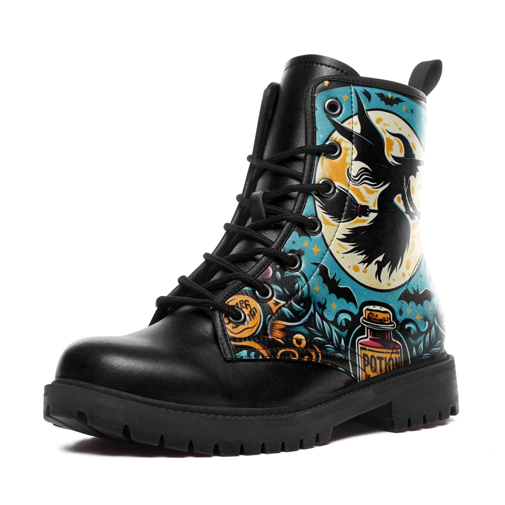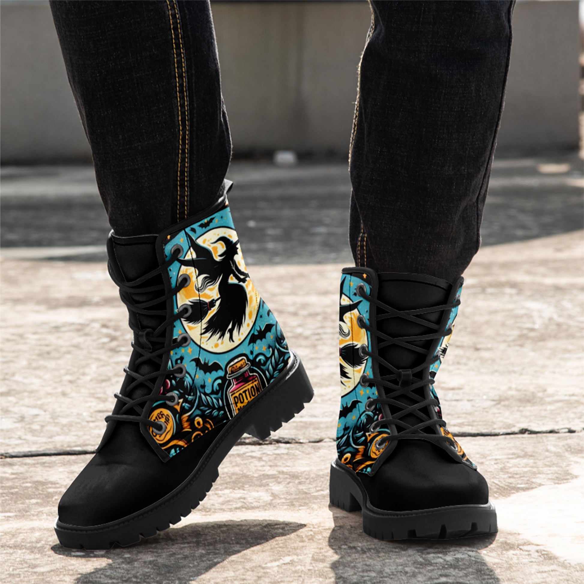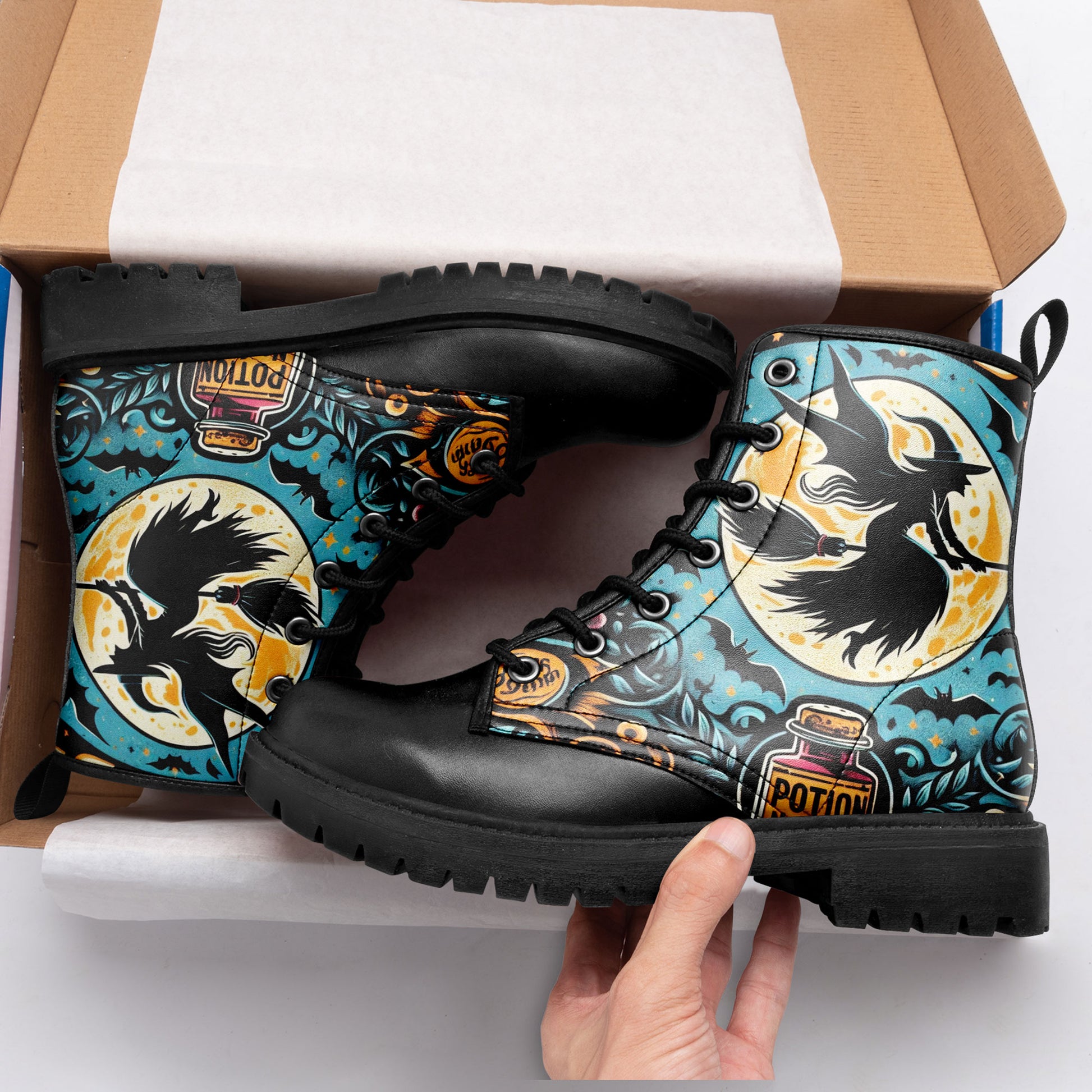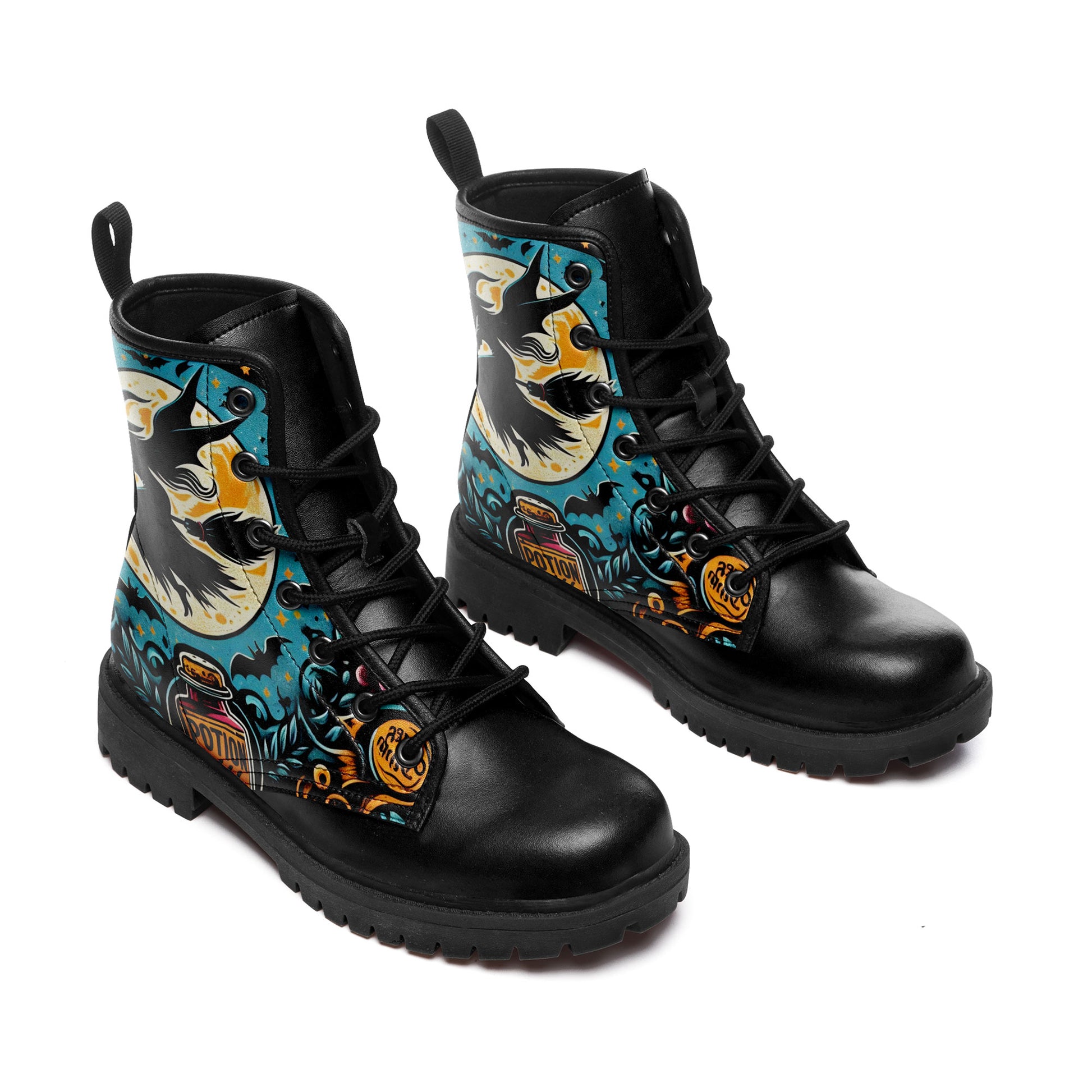 Step into a world of sorcery and spells with these **Witch & Potion Magic Combat Boots**. Perfect for the modern witch or fantasy lover, this design moves beyond traditional Halloween colors to offer something truly enchanting.