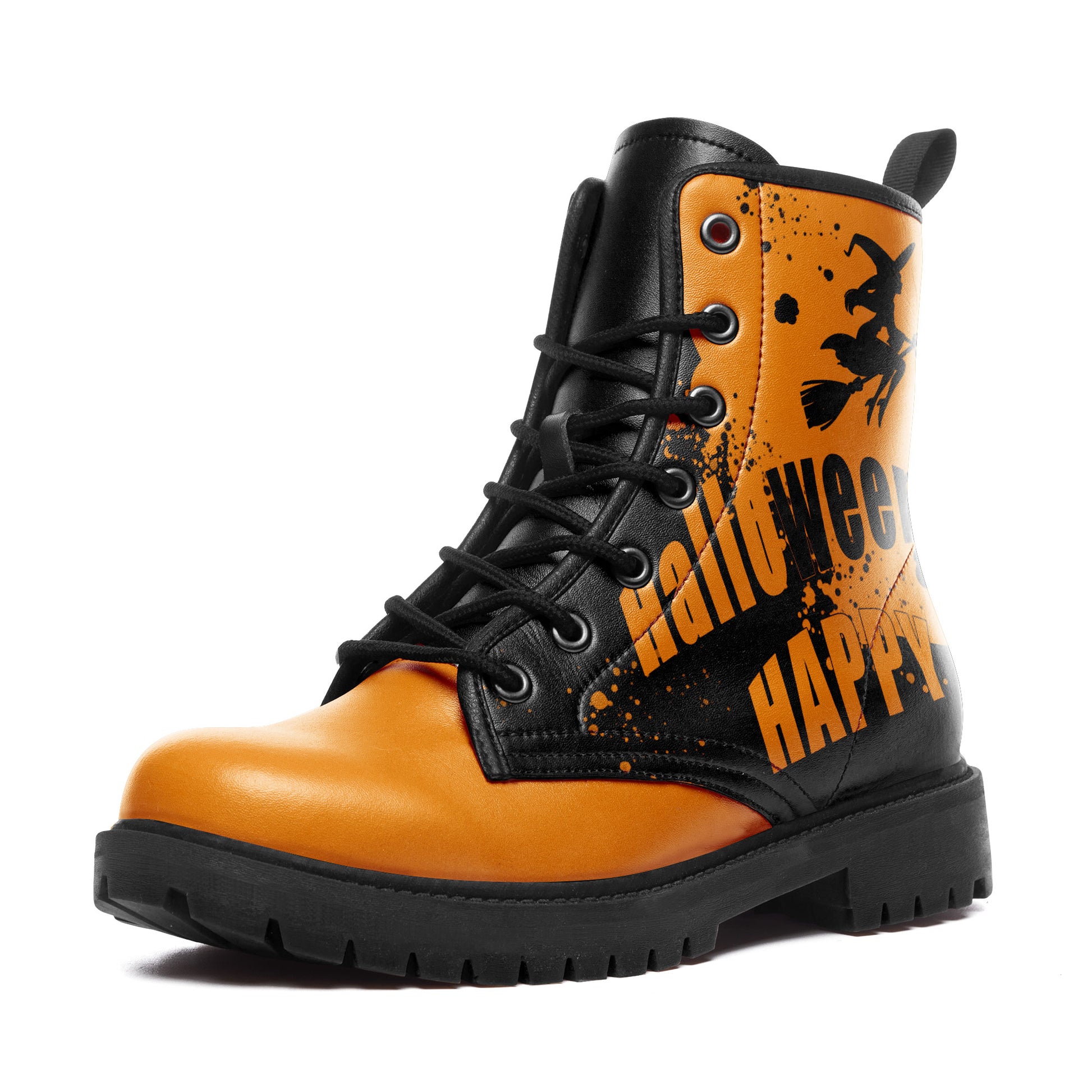 Witchy Vibes "Happy Halloween" Lace-Up Boots - Magic & Spells Festival Shoes BOOTS-24025002-2