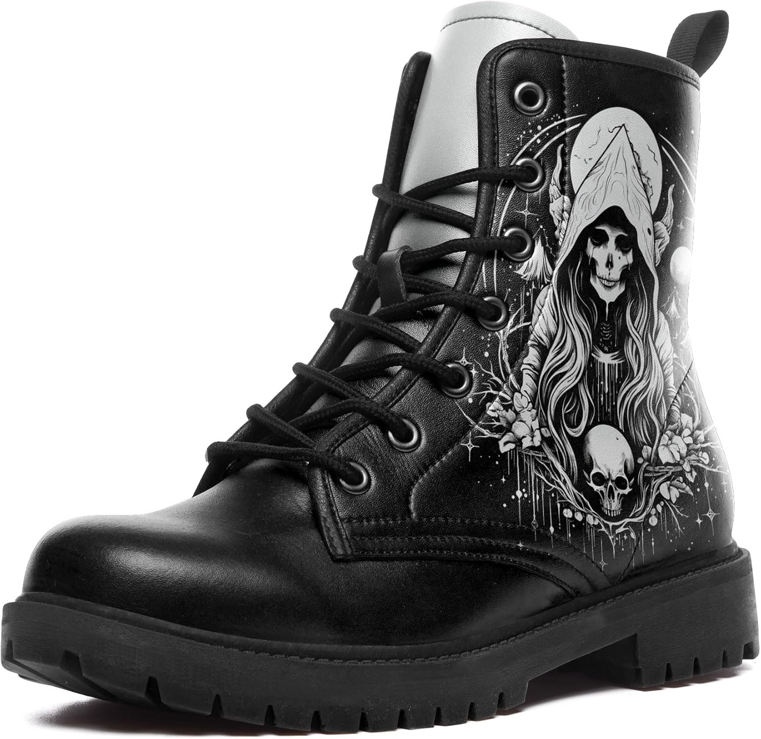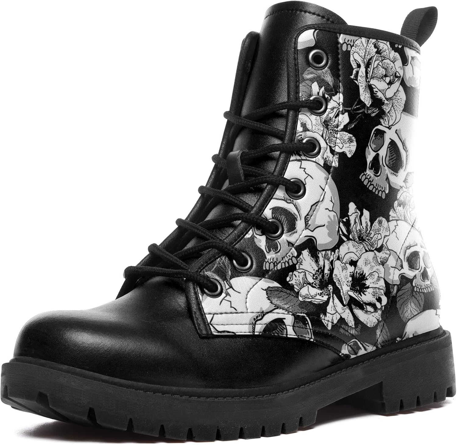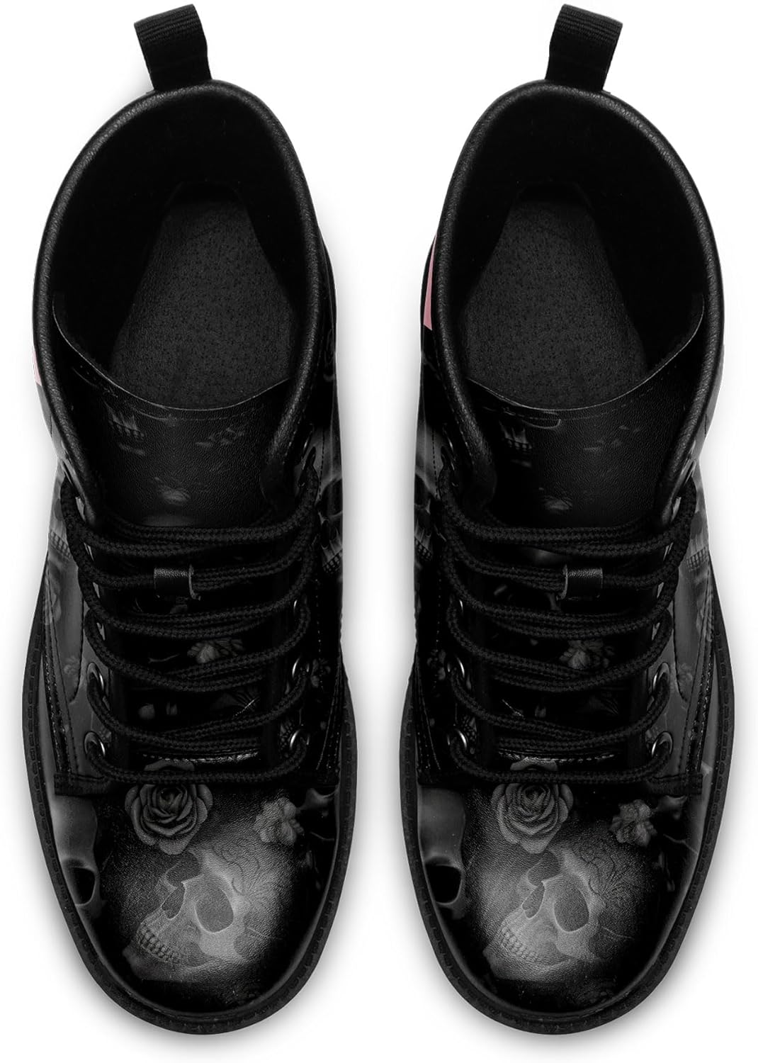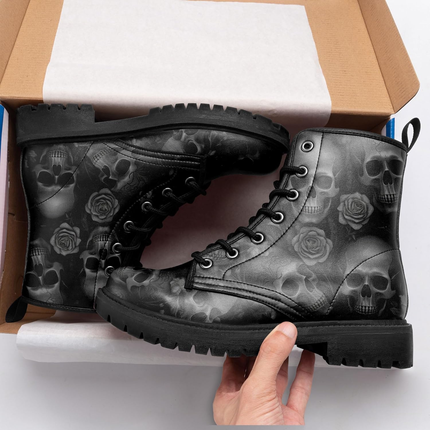 Womens & Mens Gothic Combat Boots | Punk Rock Vegan Leather Ankle Booties Anti-Slip Skull & Roses Black Platform Work Boots