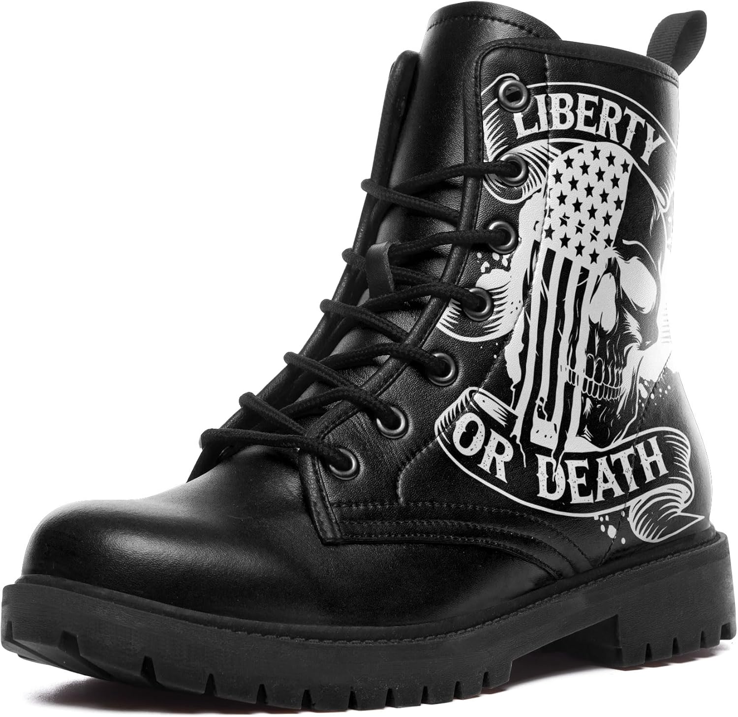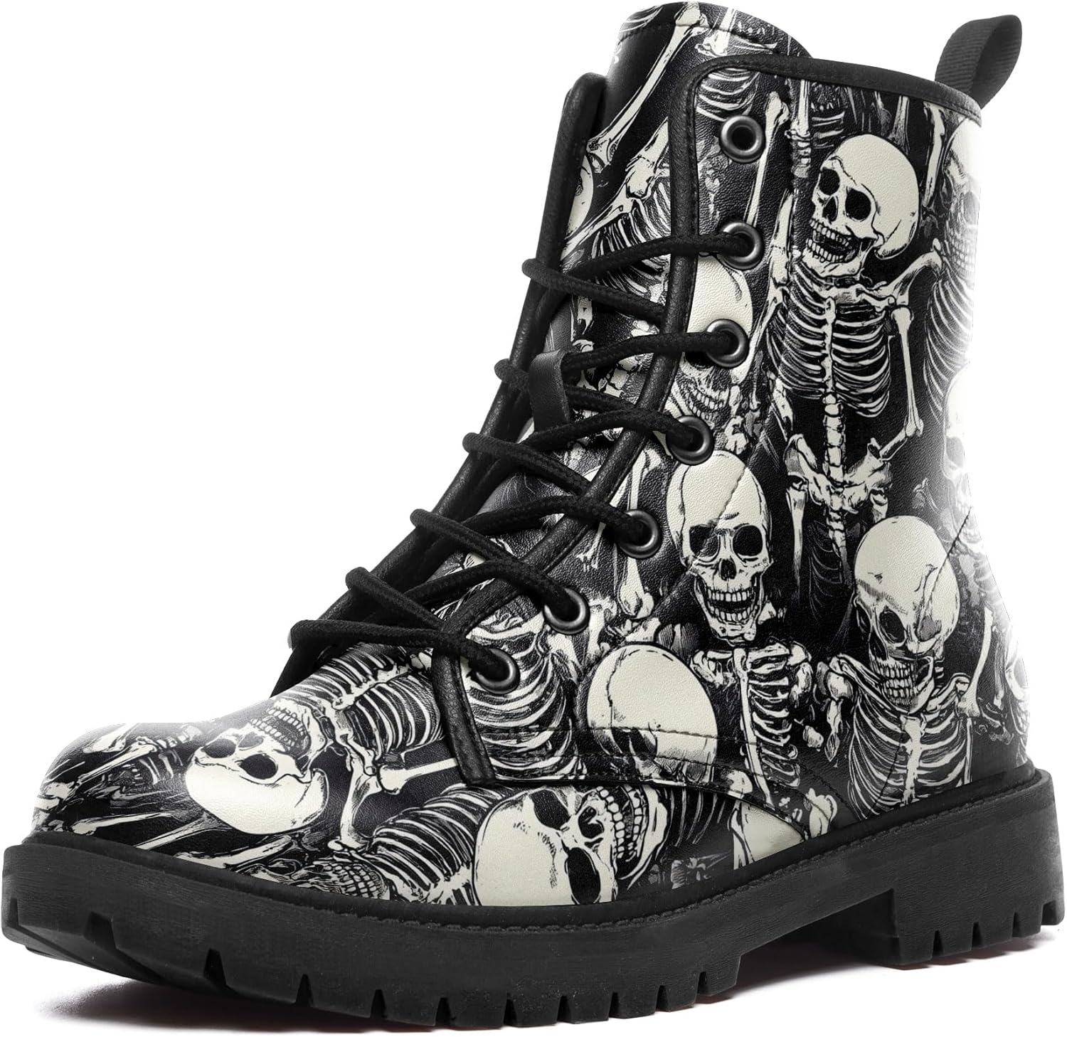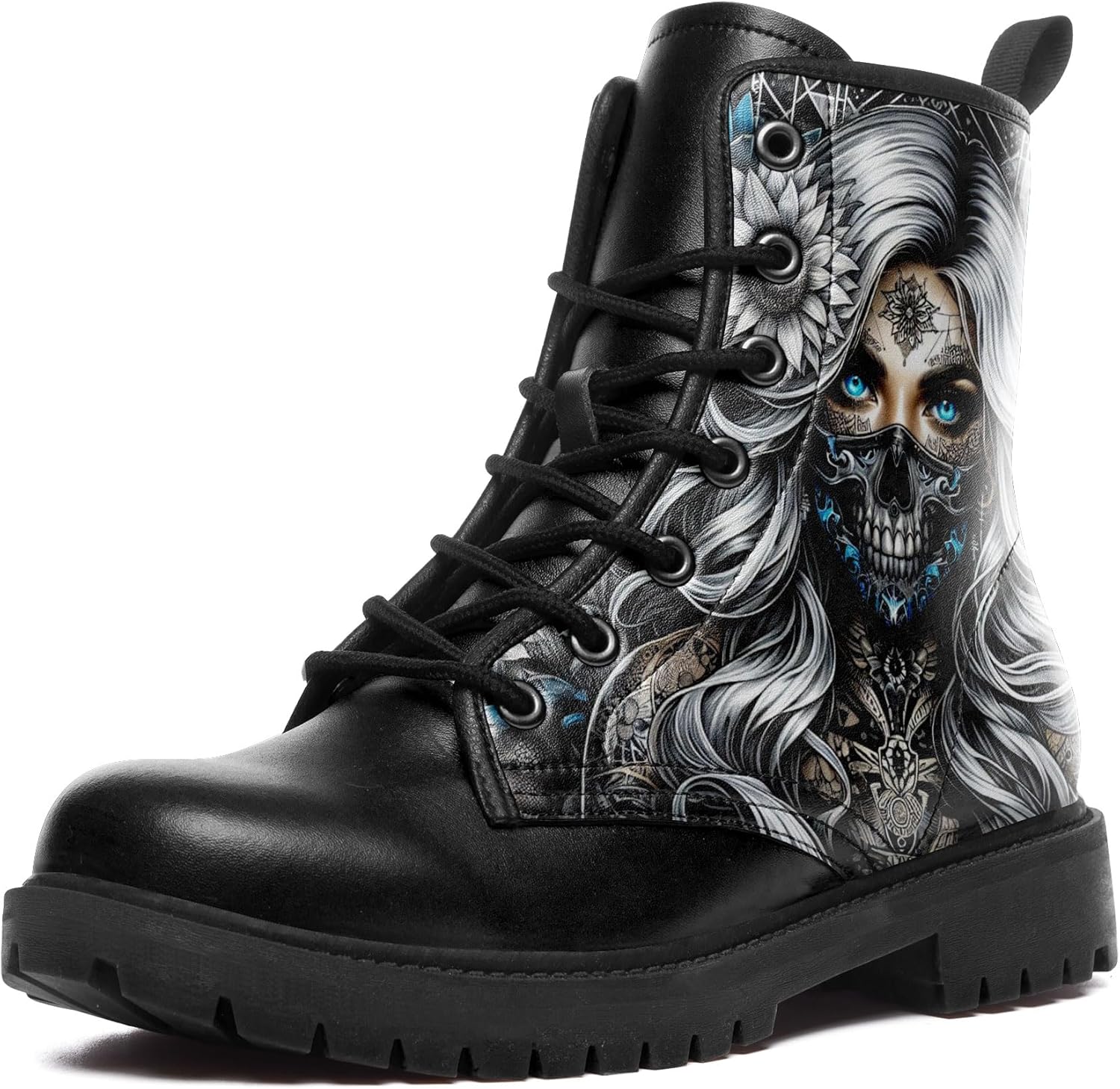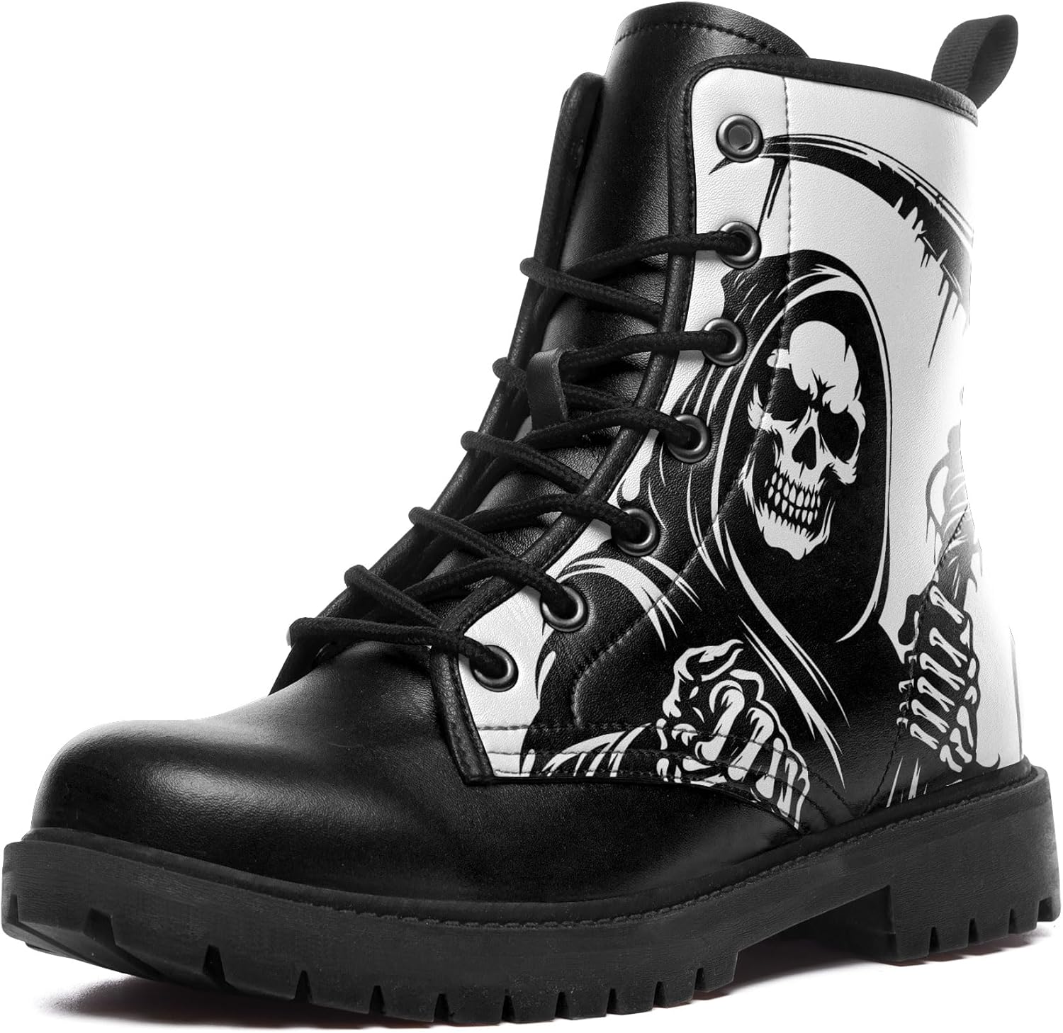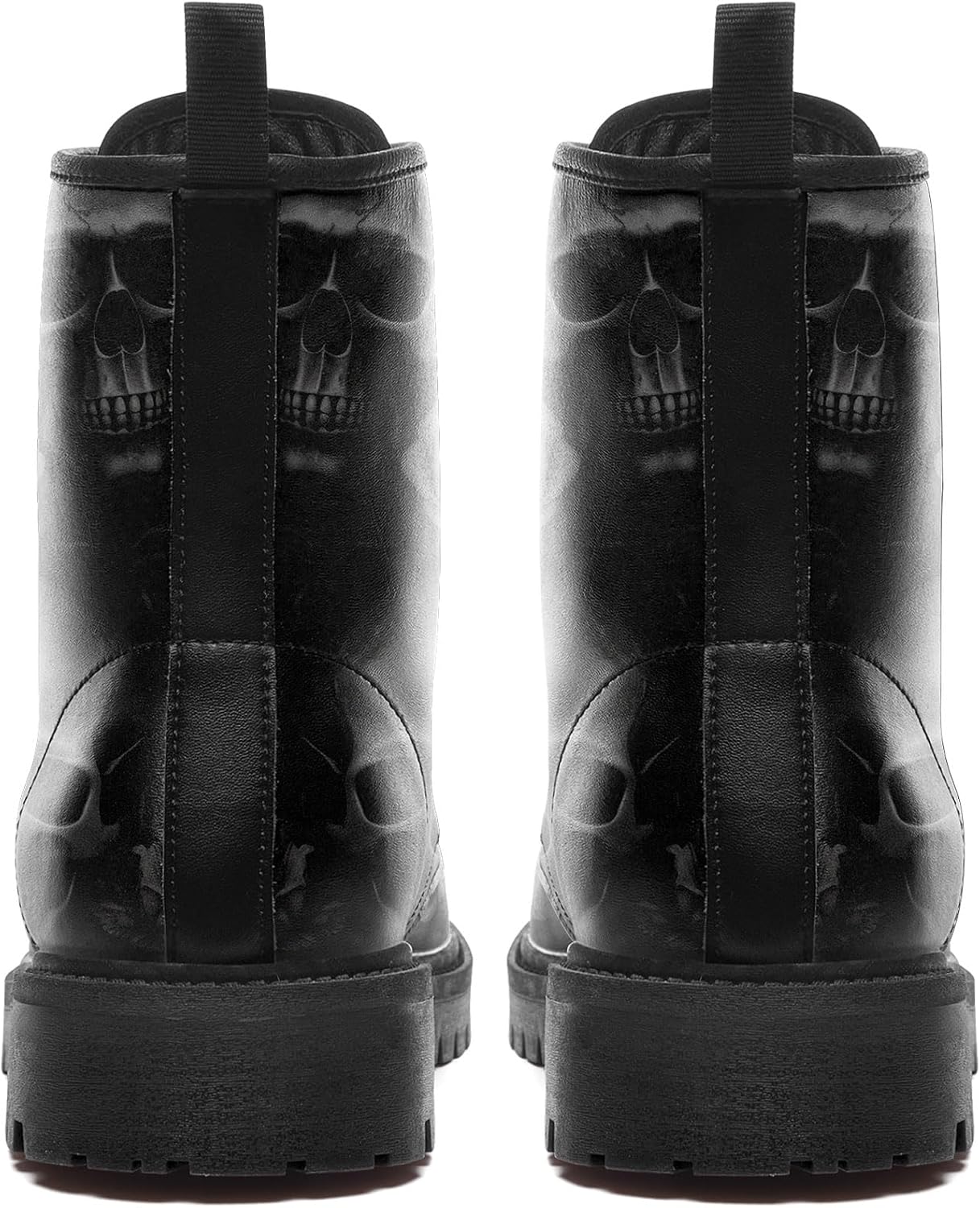 Womens & Mens Gothic Combat Boots | Punk Rock Vegan Leather Ankle Booties Anti-Slip Skull & Roses Black Platform Work Boots