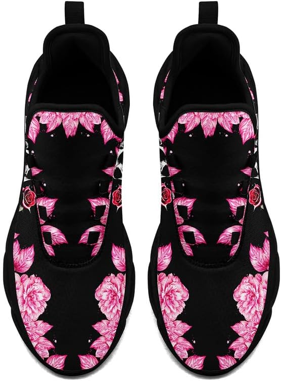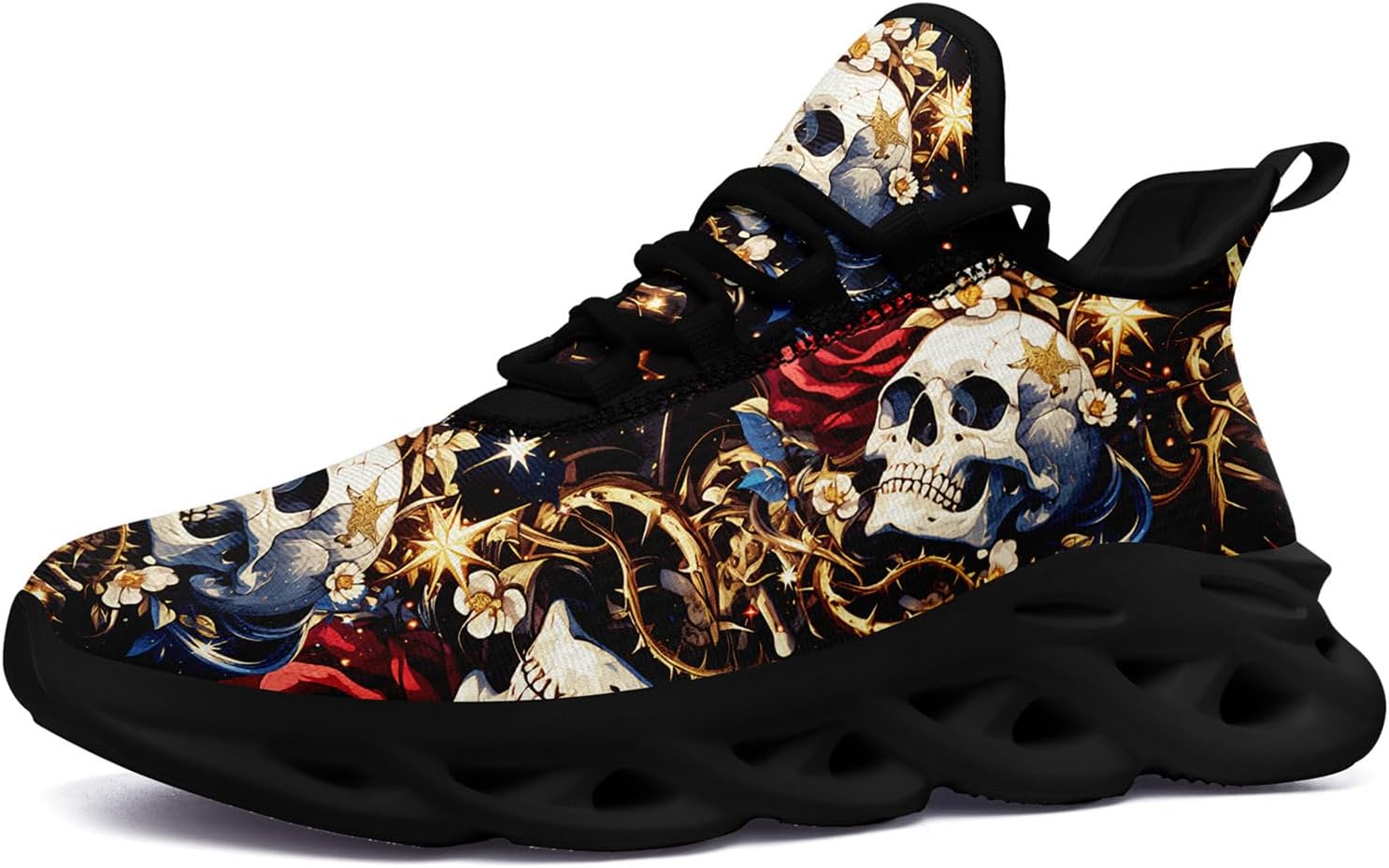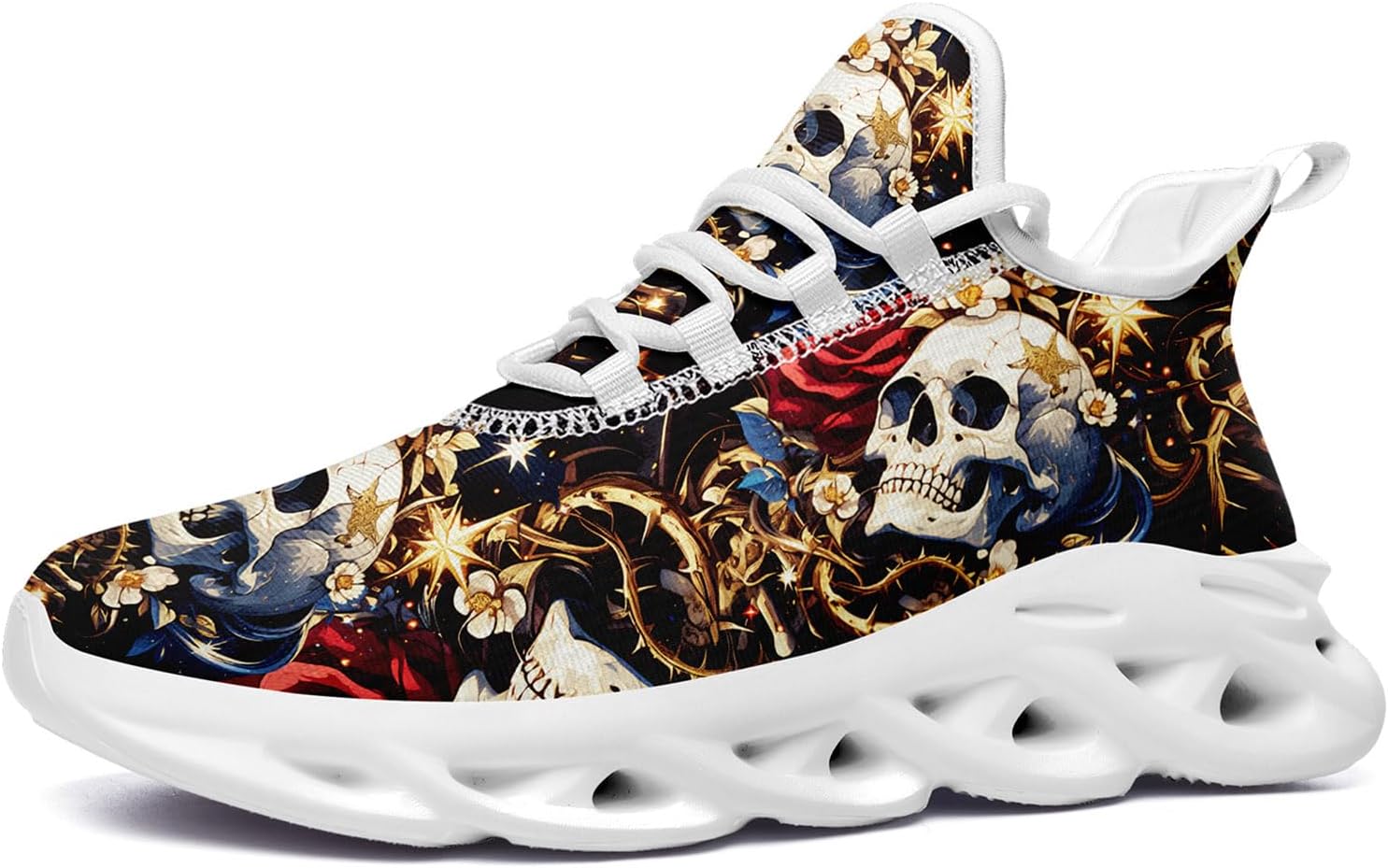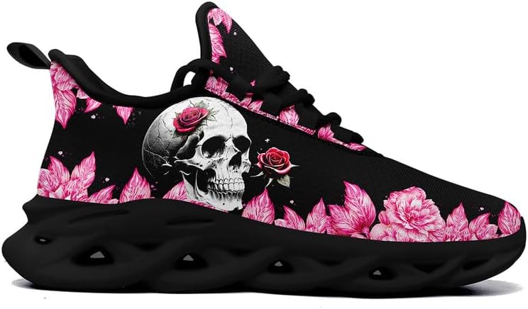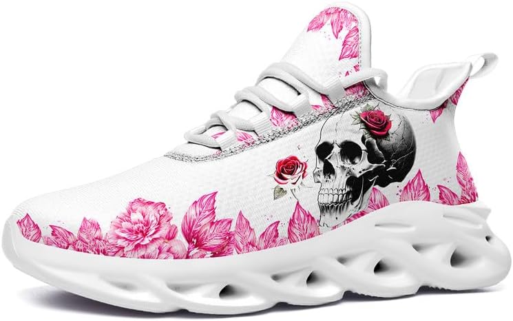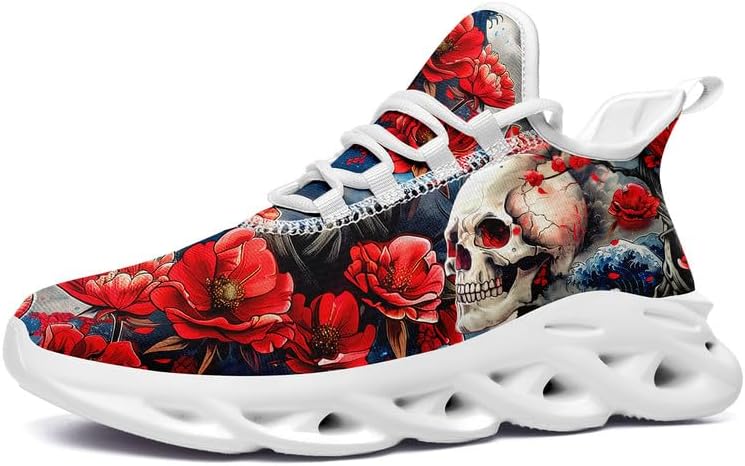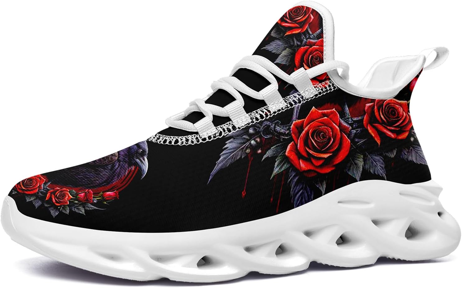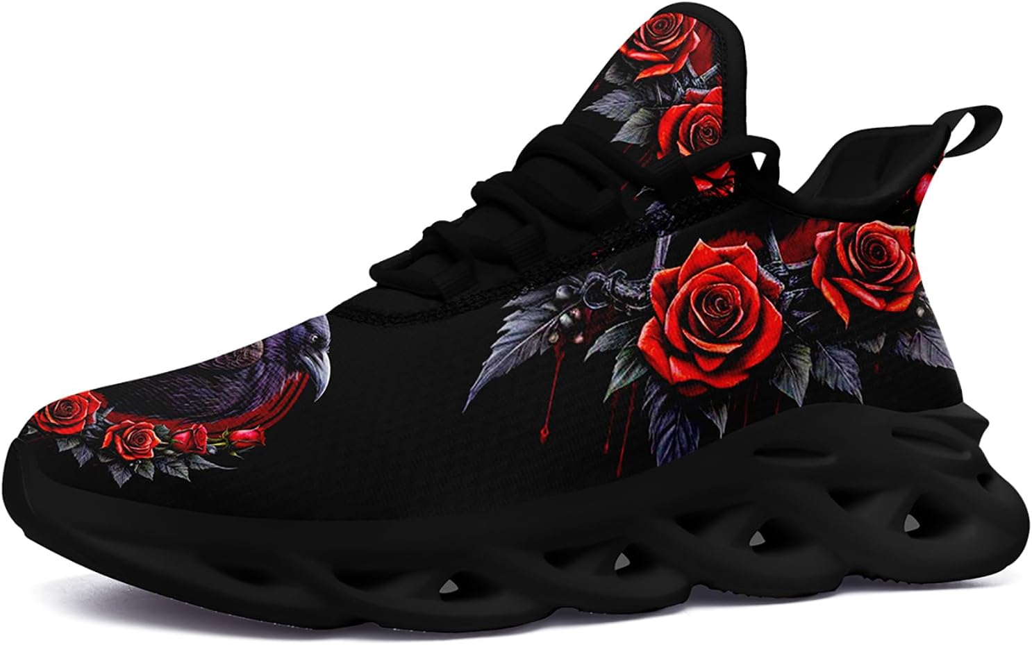 Women's Skull Running Shoes | Skull-Witch & Red Roses Fashion Sneakers