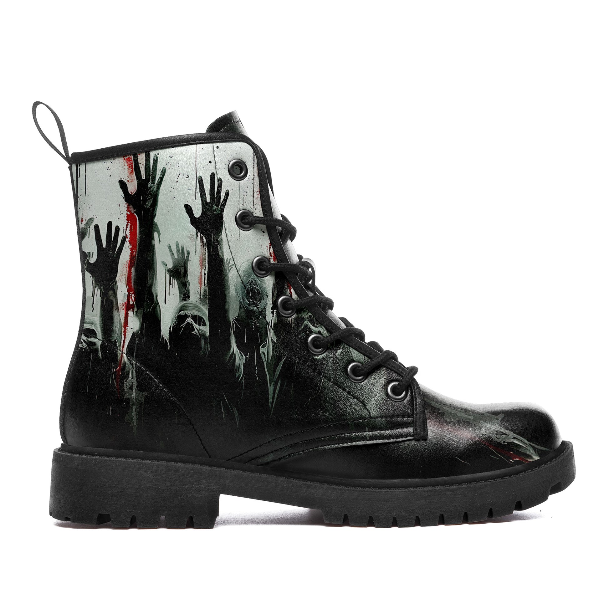 Zombie Apocalypse Rising Hands Combat Boots - Horror Undead Graphic Shoes BOOTS-24025002-5